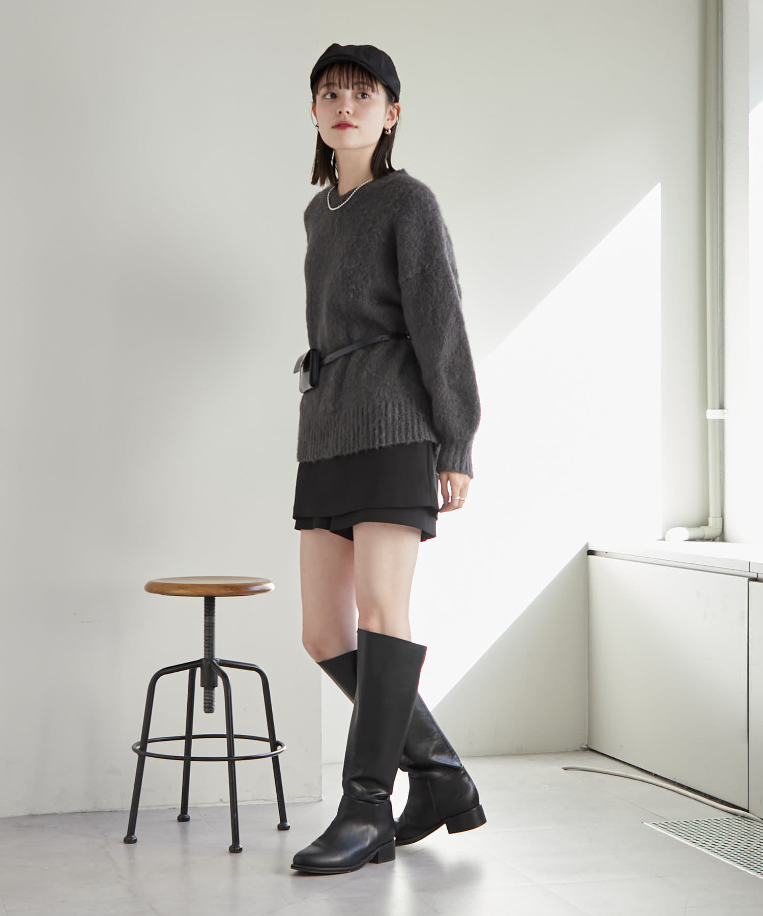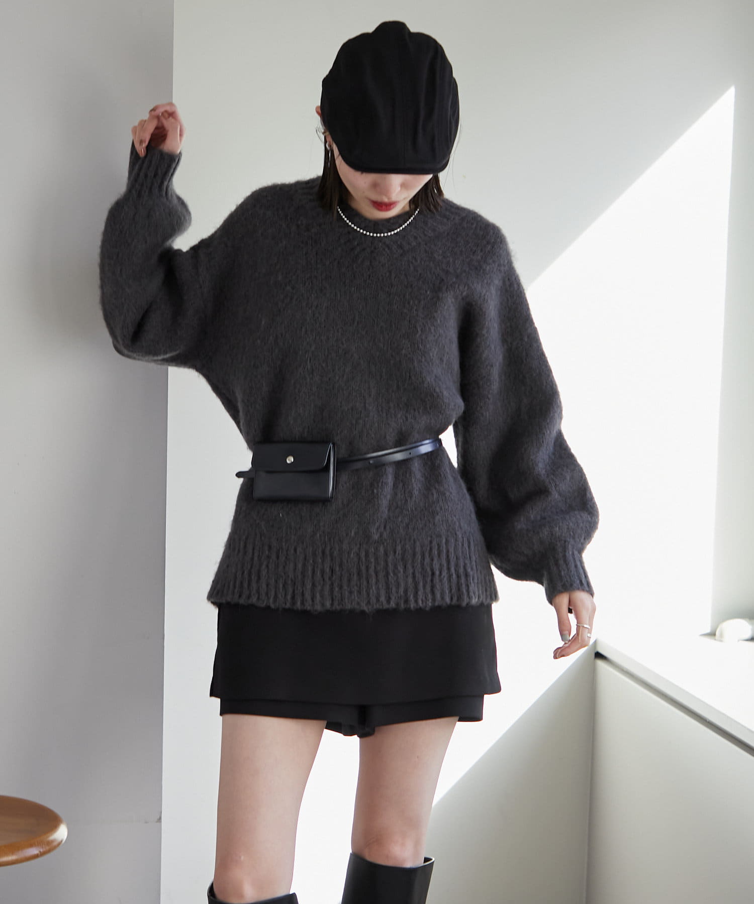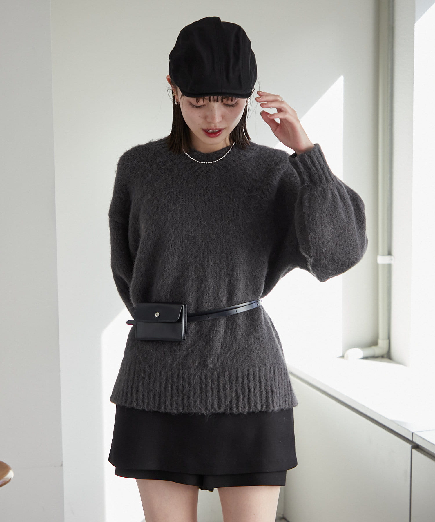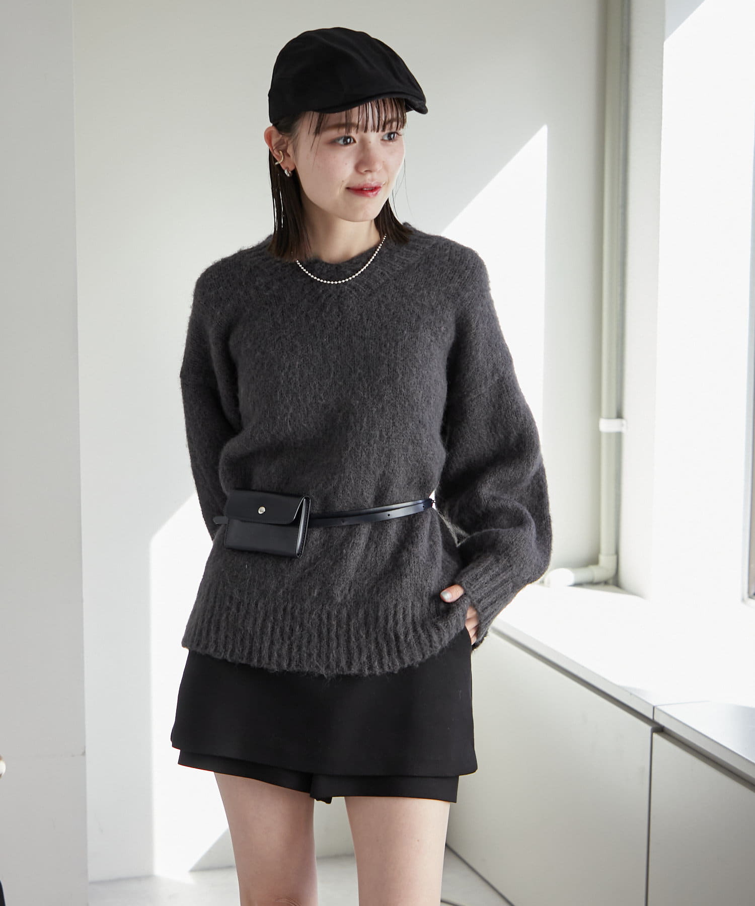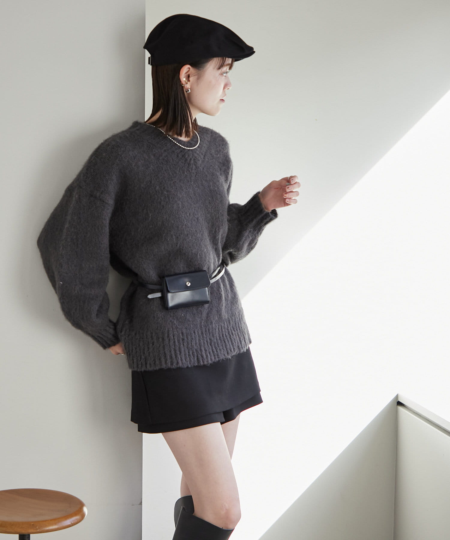 mystic(ミスティック) モヘアライクベルトポーチ付きニット