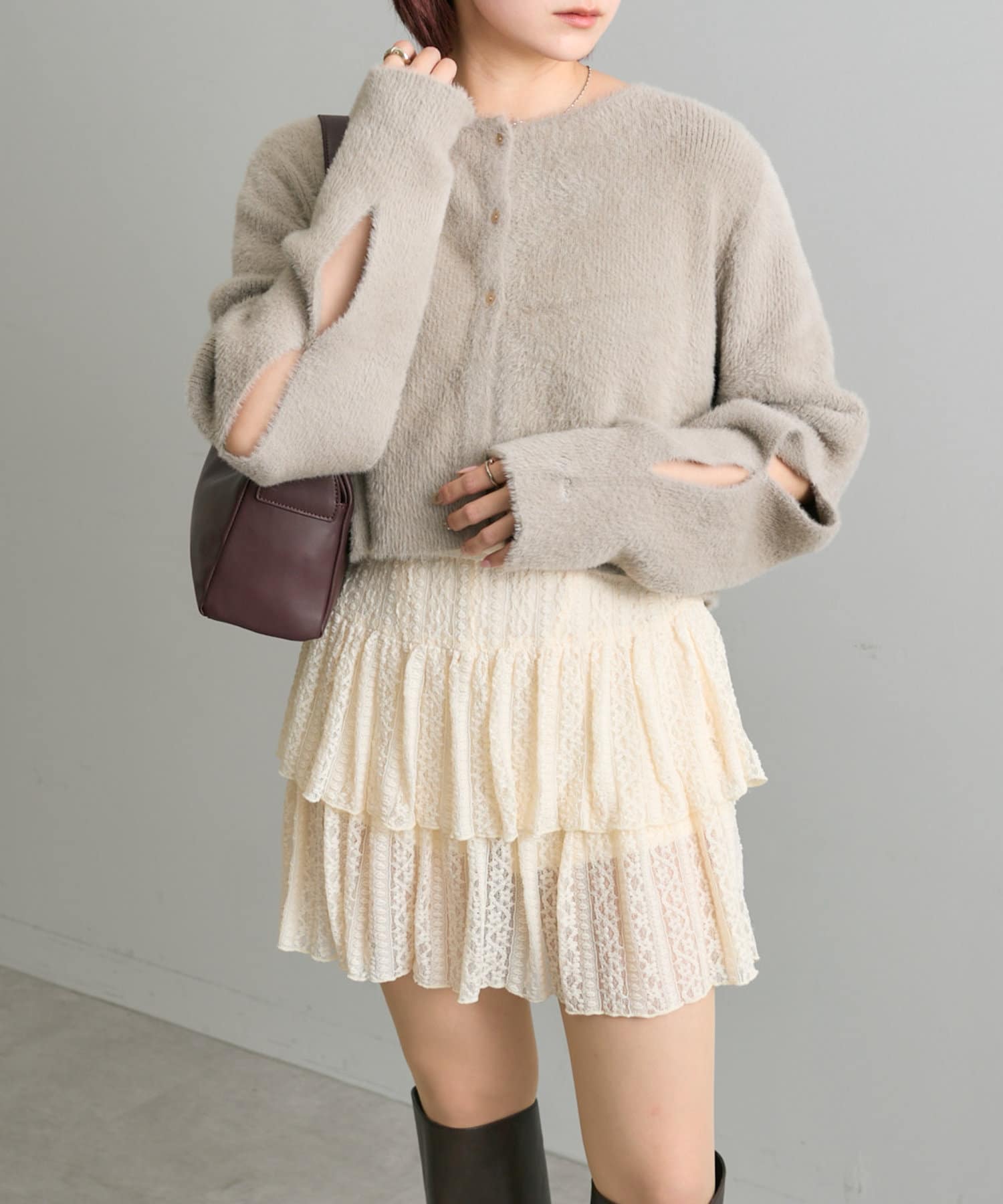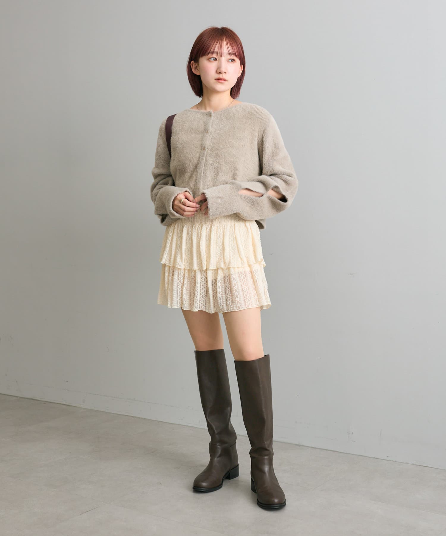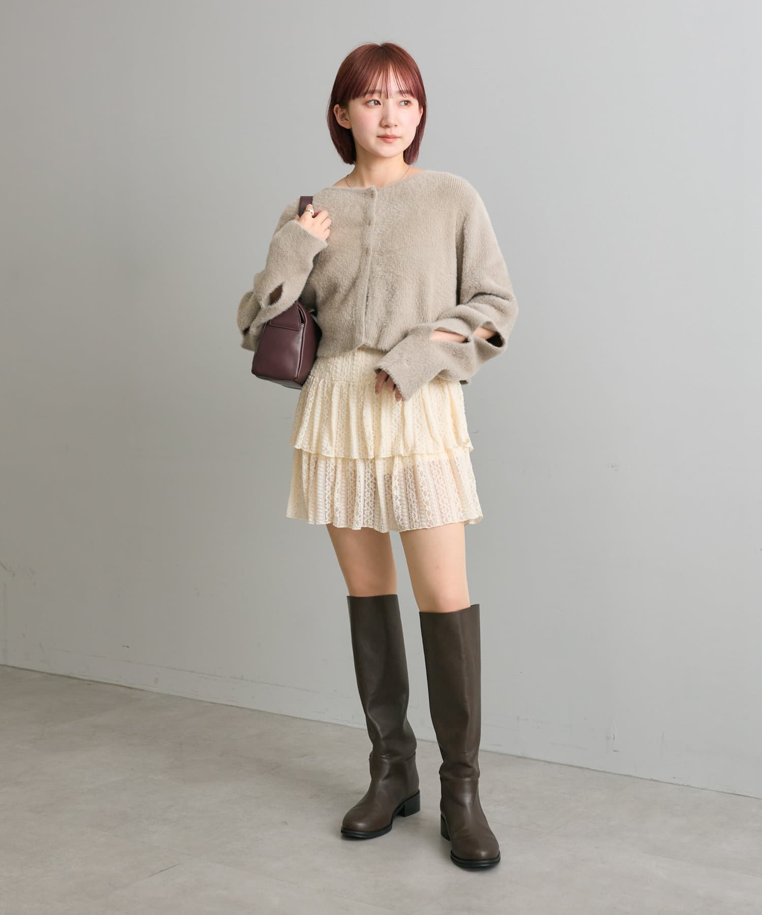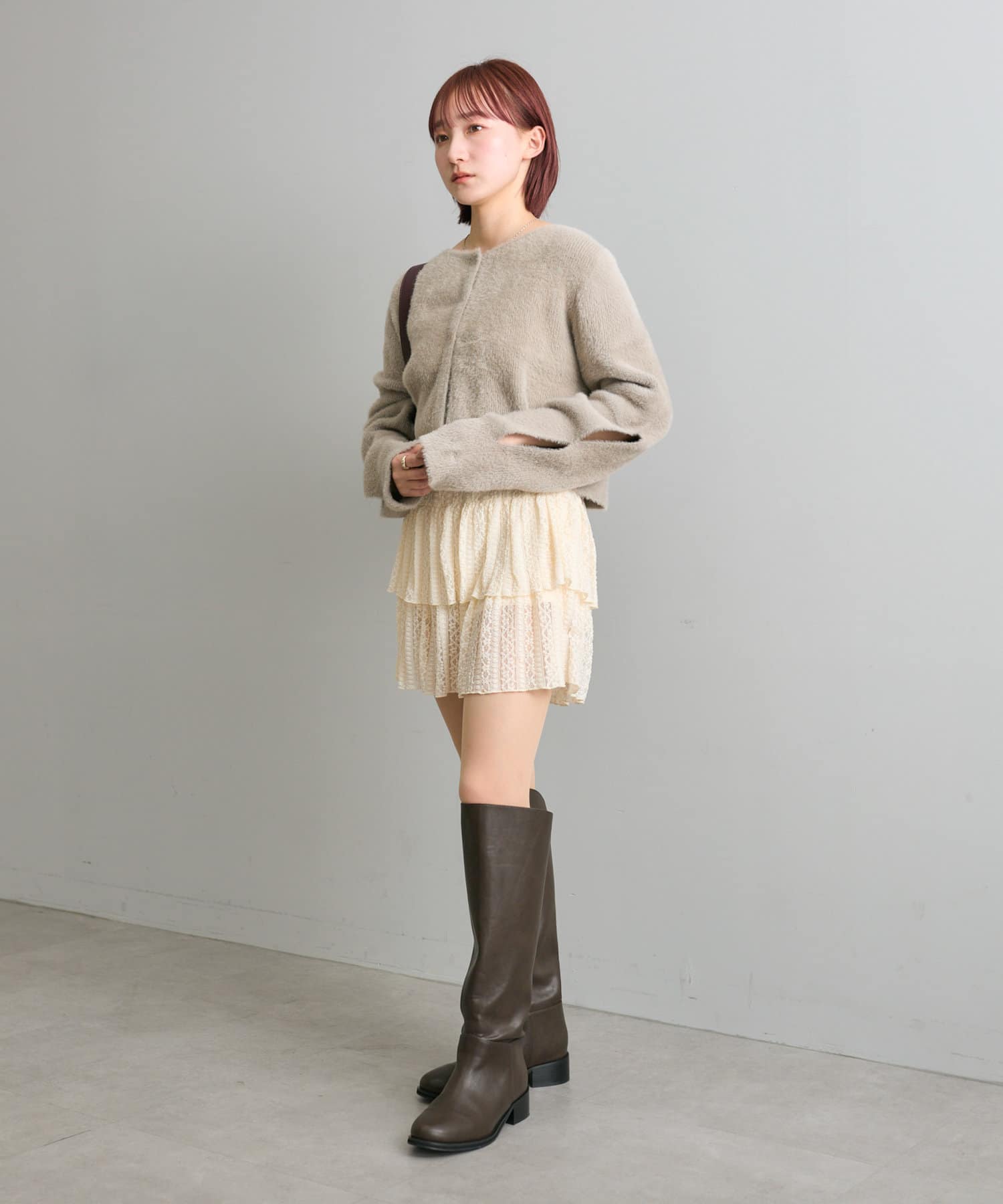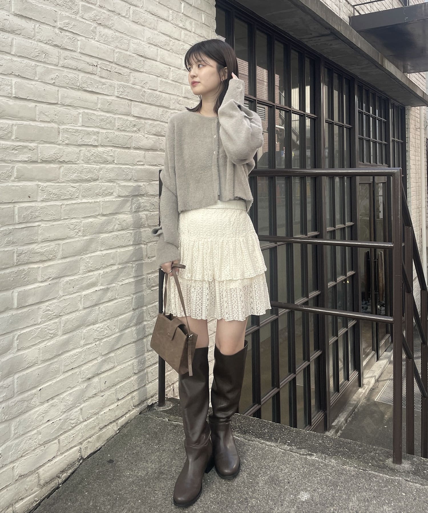 ・ミニ丈ボトムスとロングブーツ合わせでトレンドな着こなしに◎