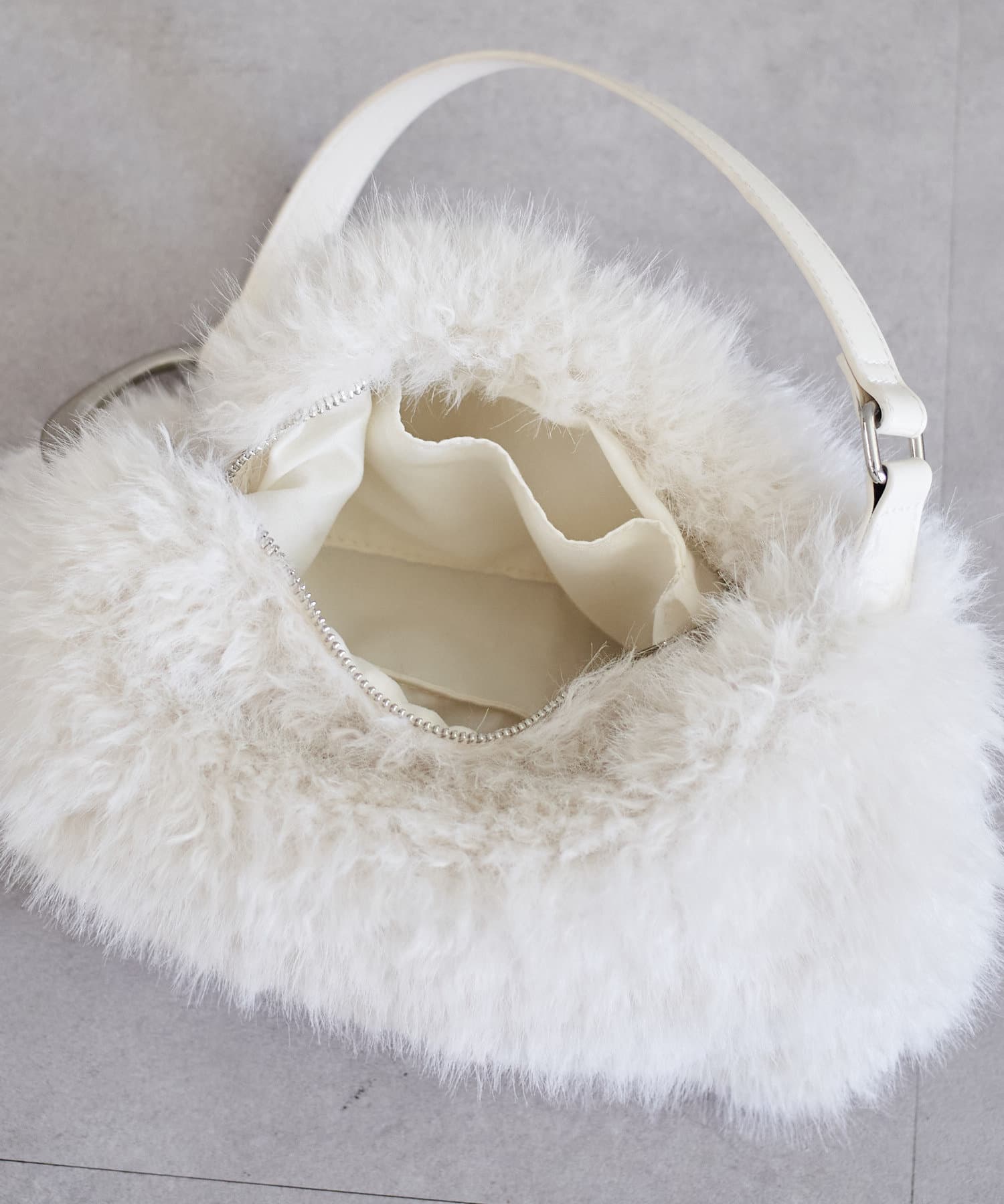 ・触り心地の良いふわふわのファーで一気にシーズンライクな雰囲気になるバッグ。