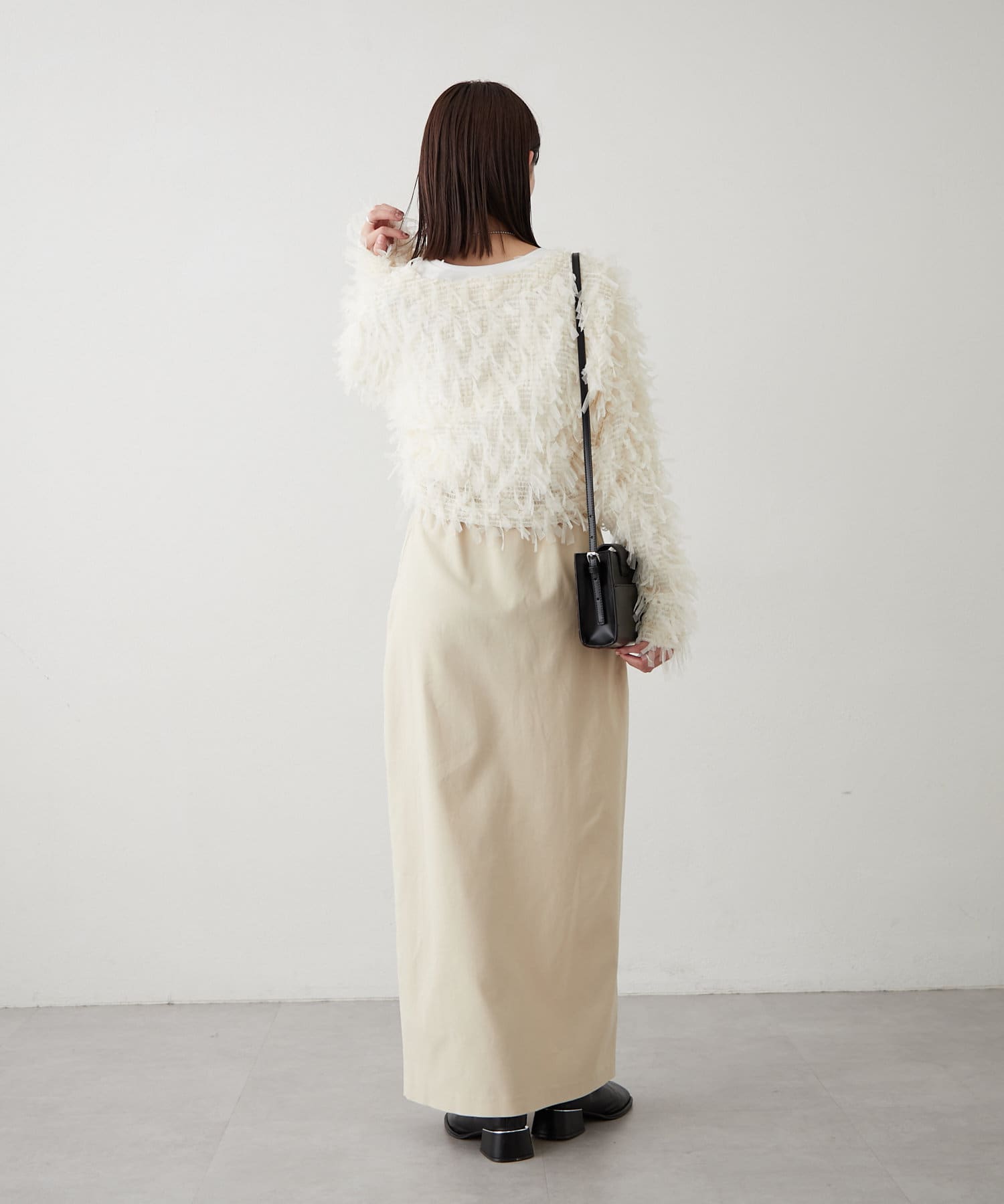 ・スカートとしてだけでなく、ビスチェ風に着てデニムにレイヤードするだけで、こなれ感のあるスタイリングに!