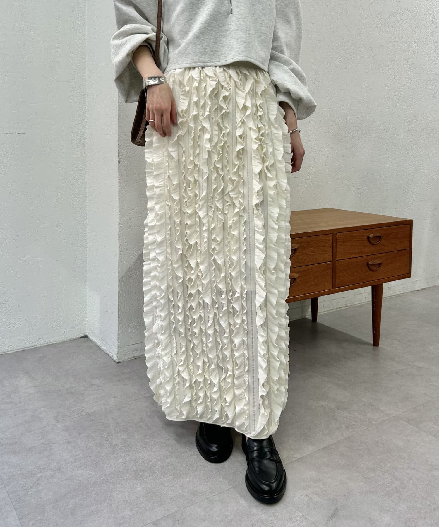 縦ラインのフリルが目を惹く華やかな印象のスカートが登場!