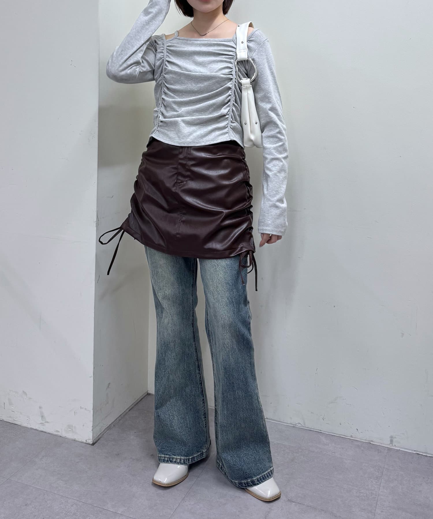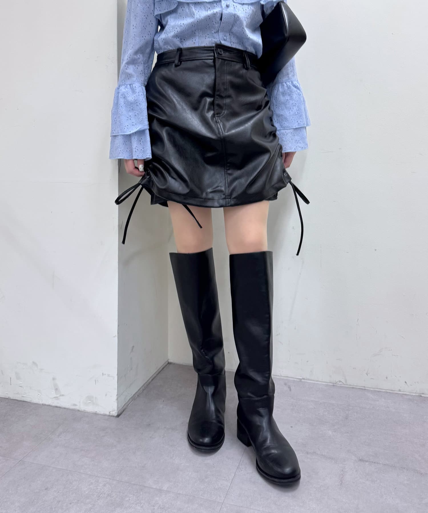 • mystic(ミスティック) [mline]レザーギャザースカート