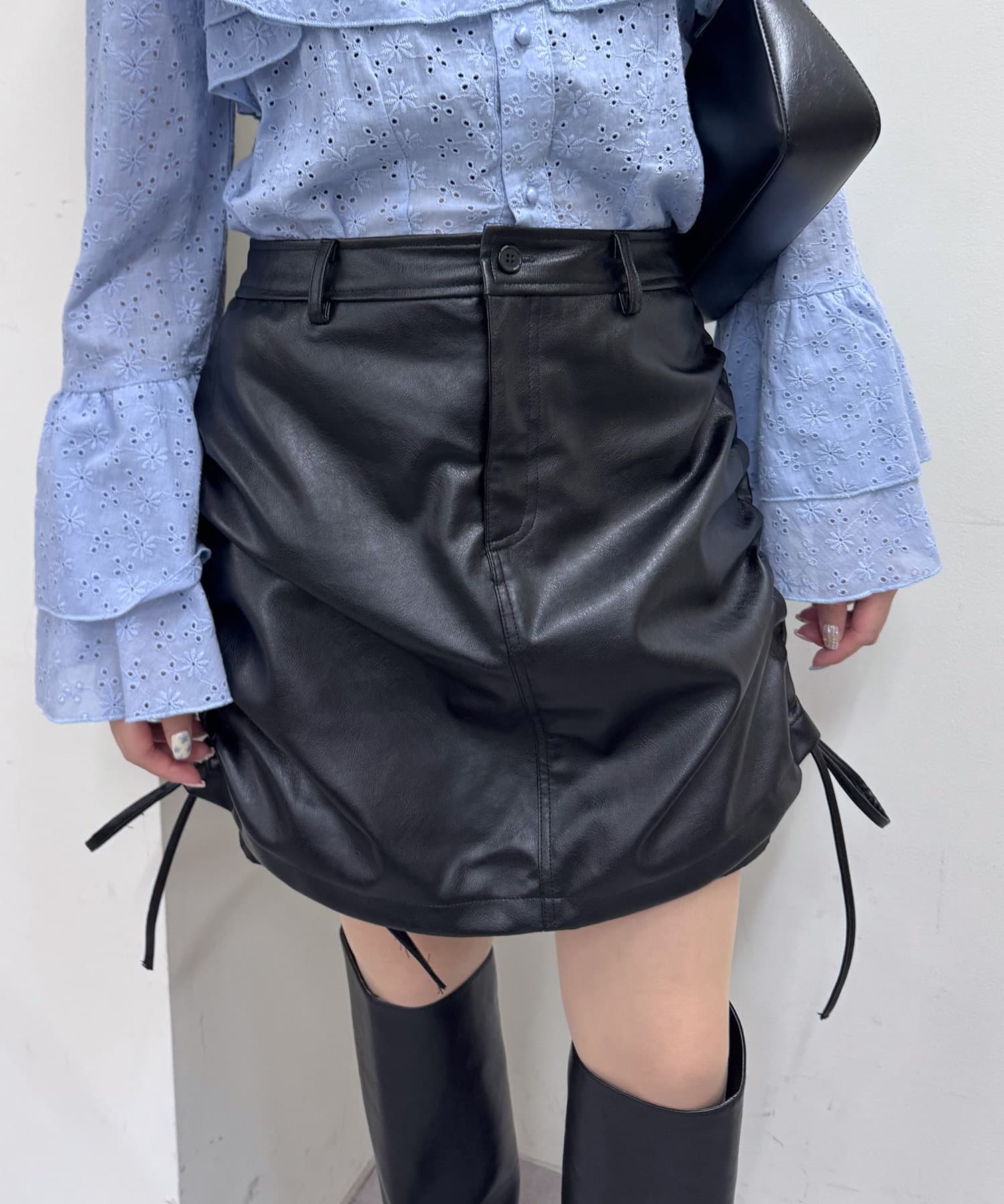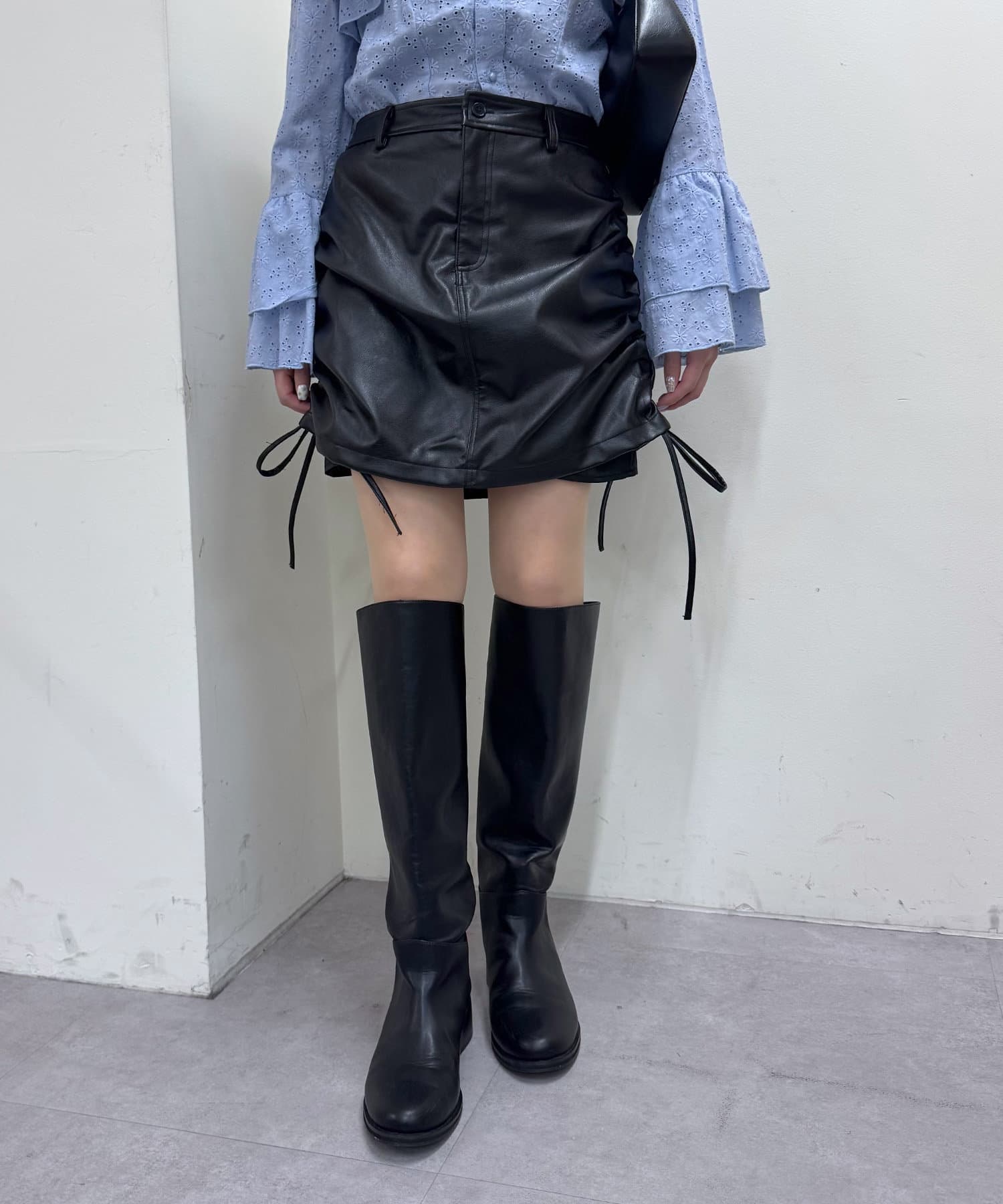 【mystic】レザーギャザースカート