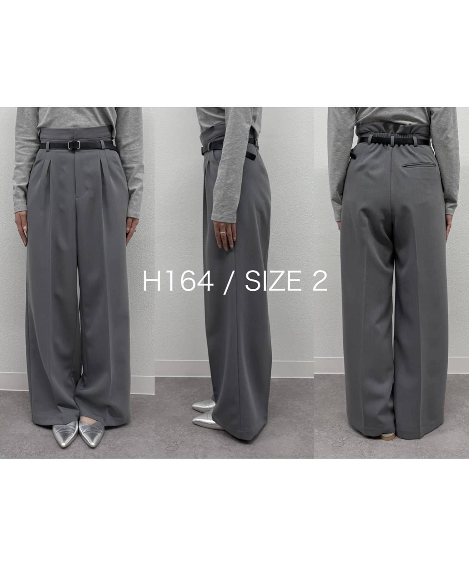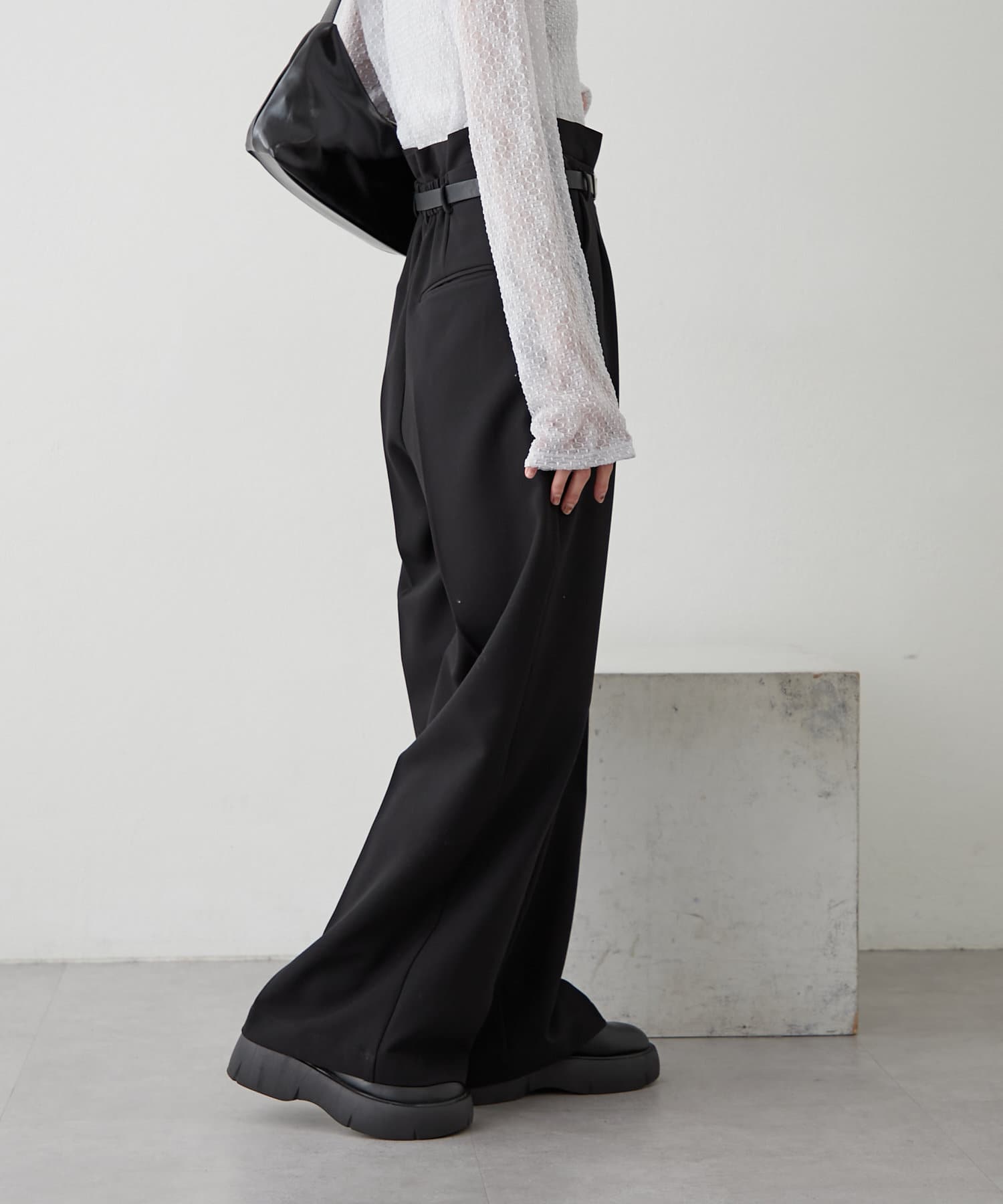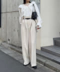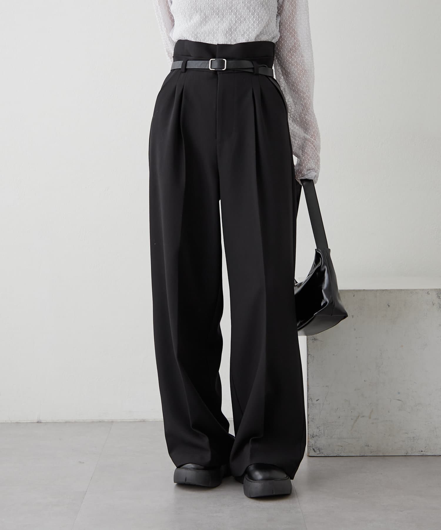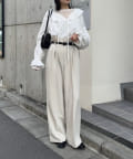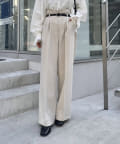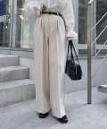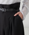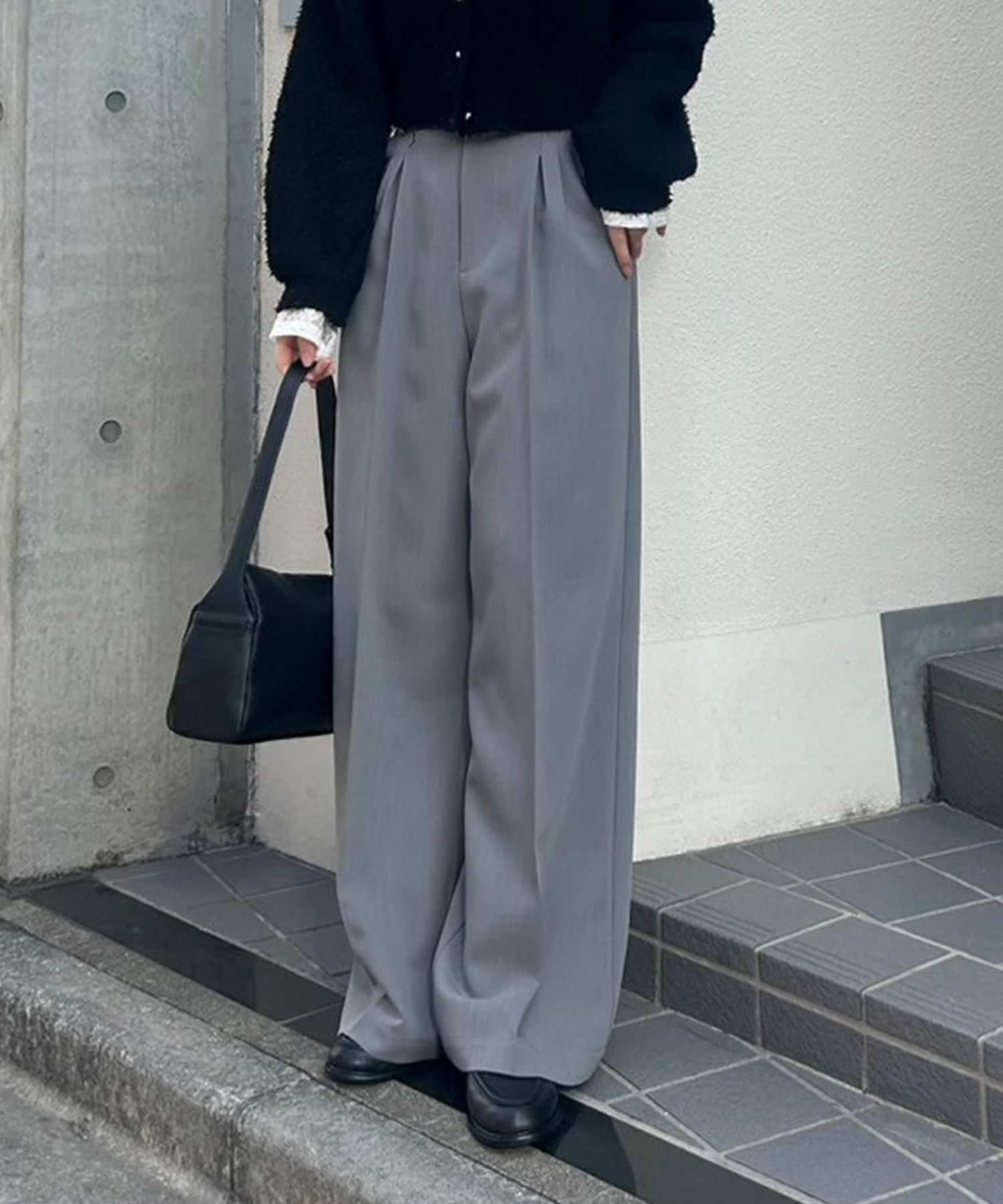 ・タック入りで、ハイウエストのデザインによって美脚見えするスラックス。