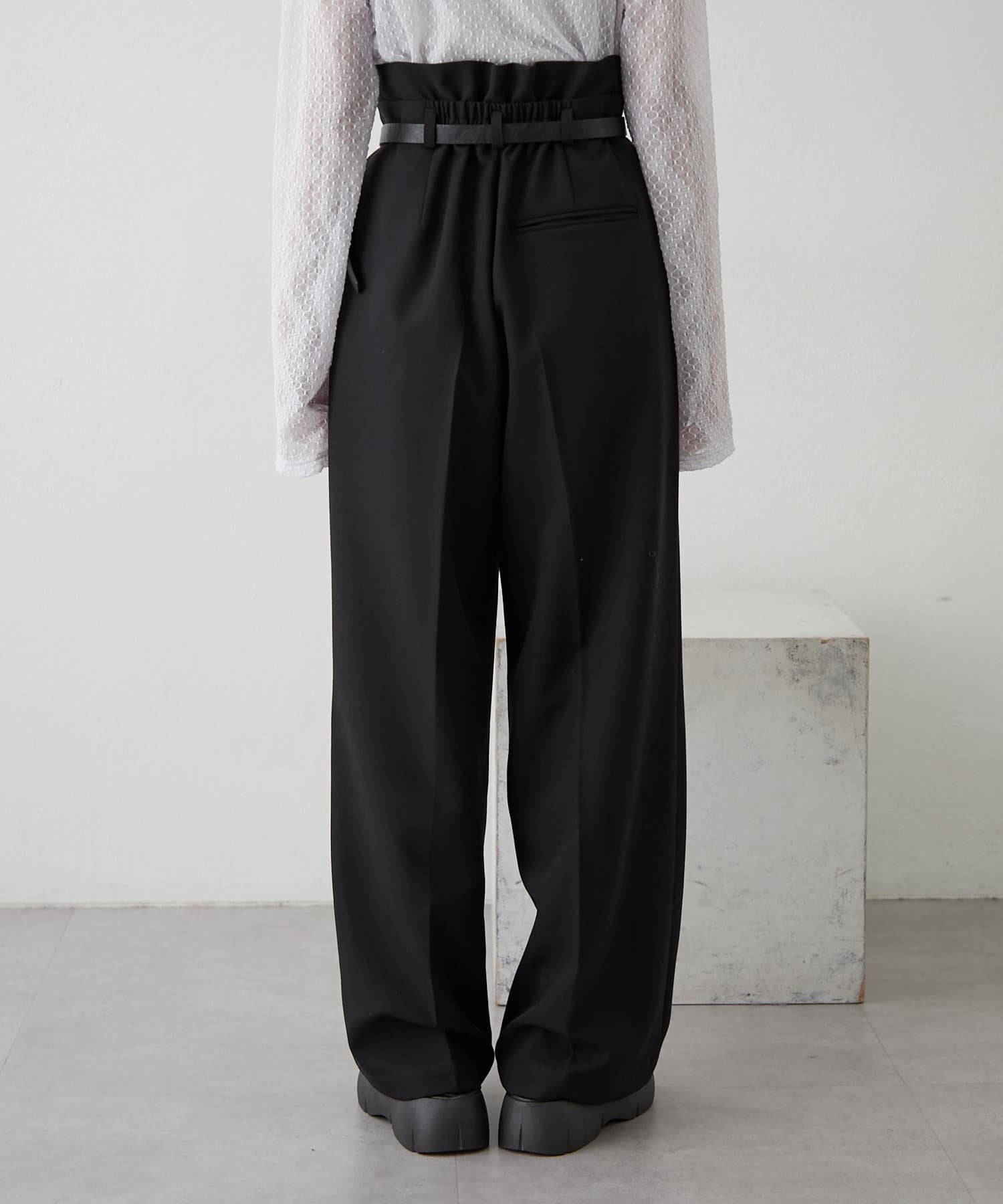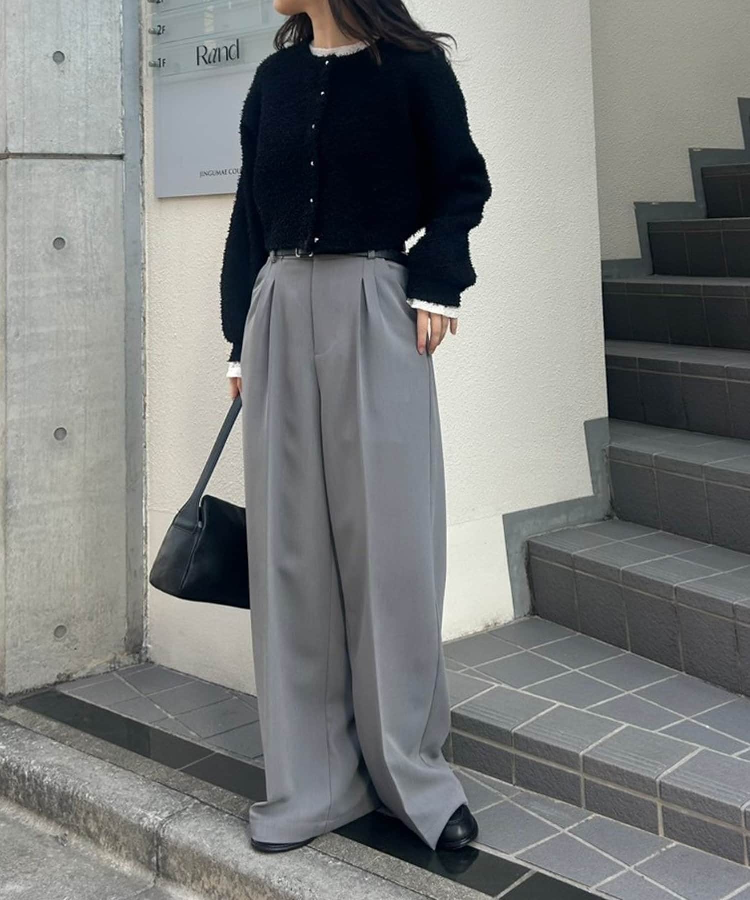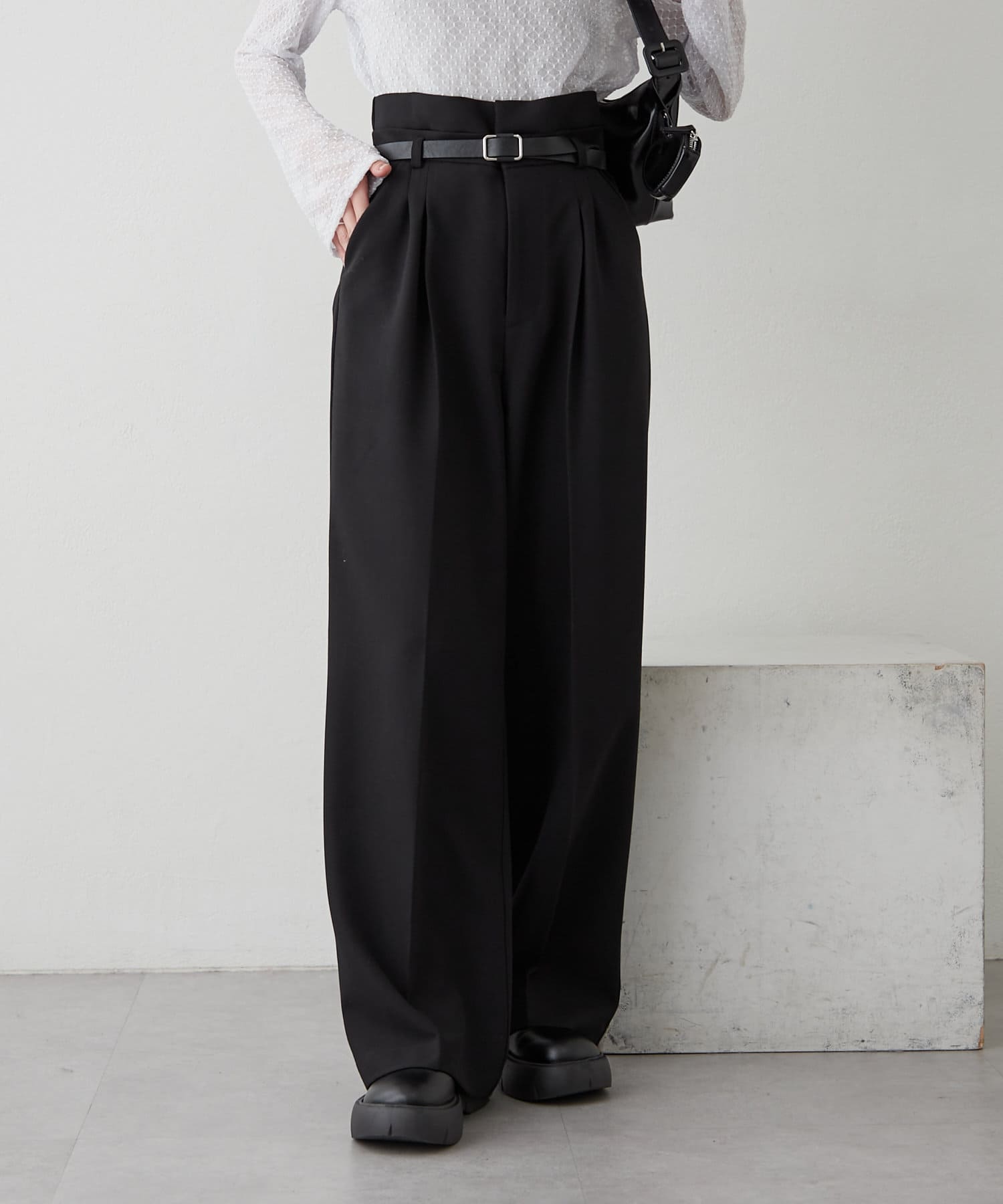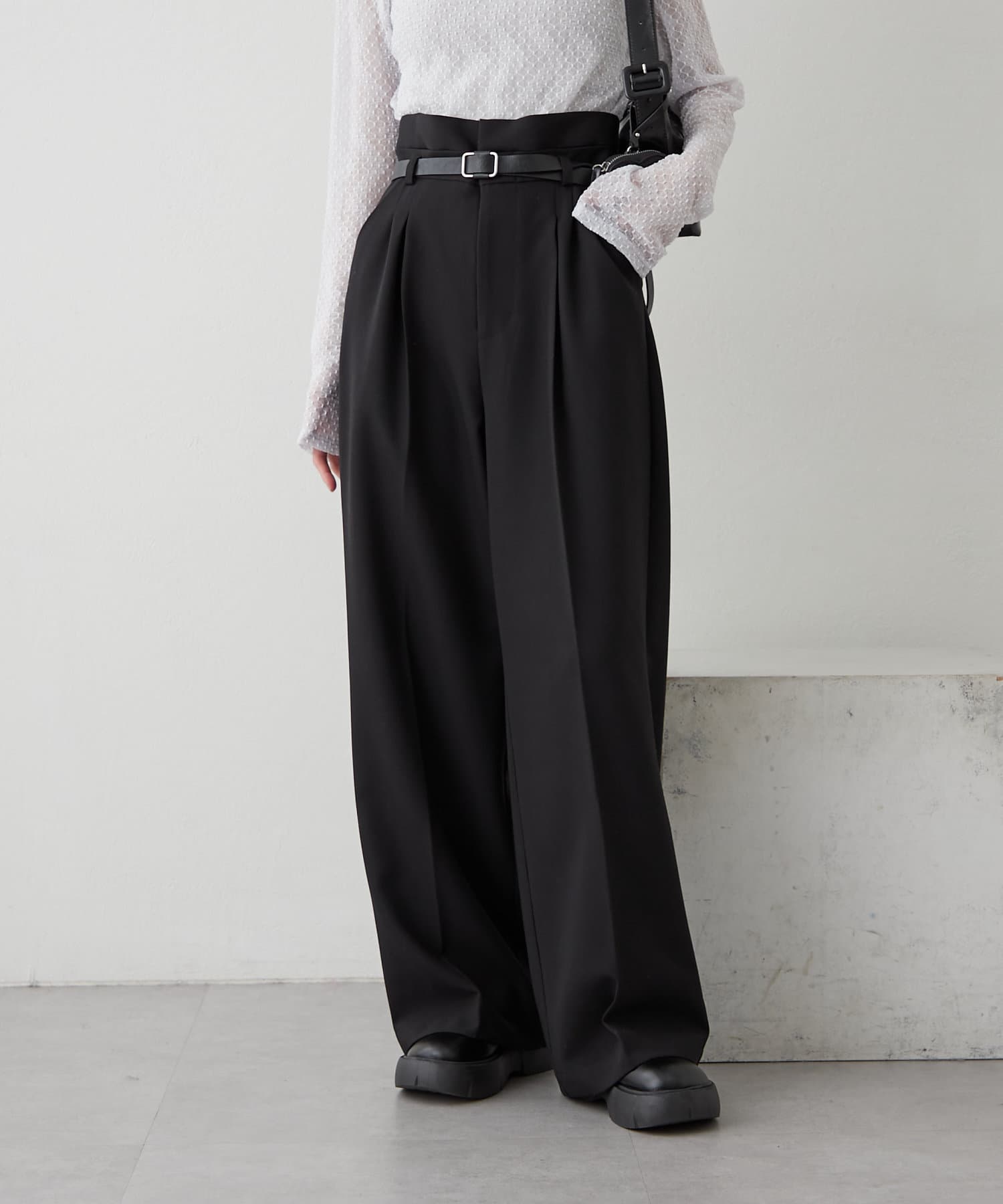 ・タック入りで、ハイウエストのデザインによって美脚見えするスラックス。