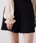 ・裾がややフレアデザインになっていて自然にすっきりと見せてくれるショートパンツ。