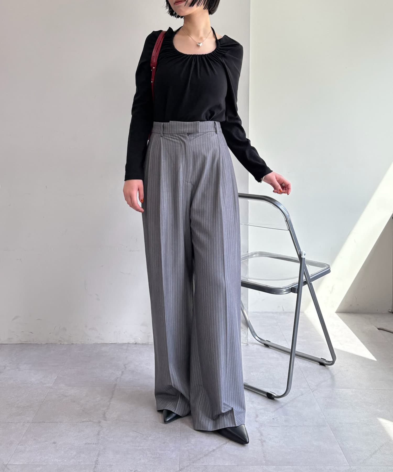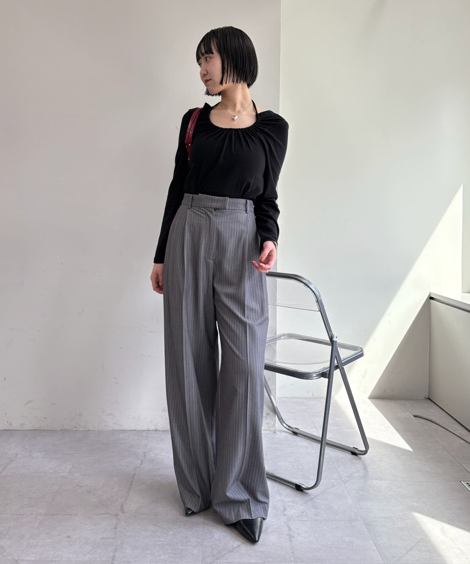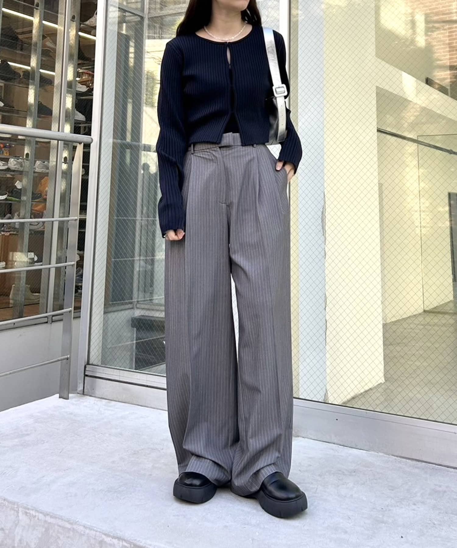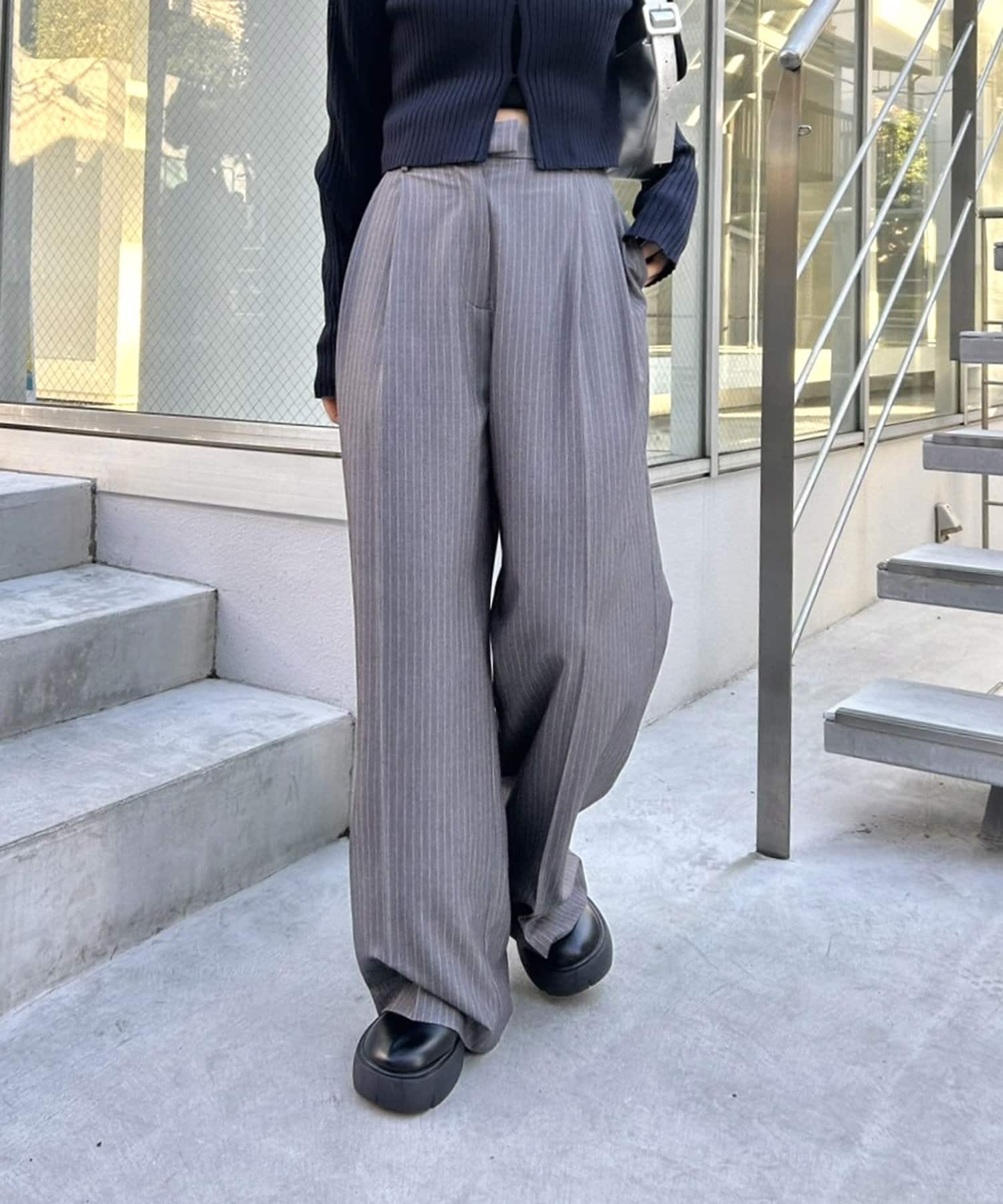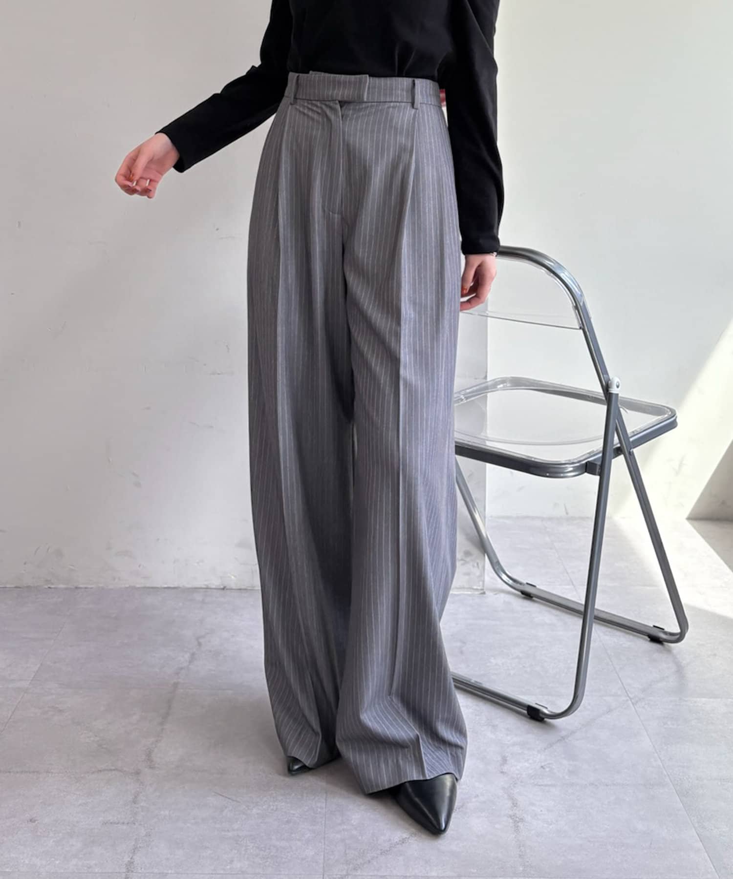 ・ルーズなシルエットで大人綺麗めな印象のストライプパンツ。