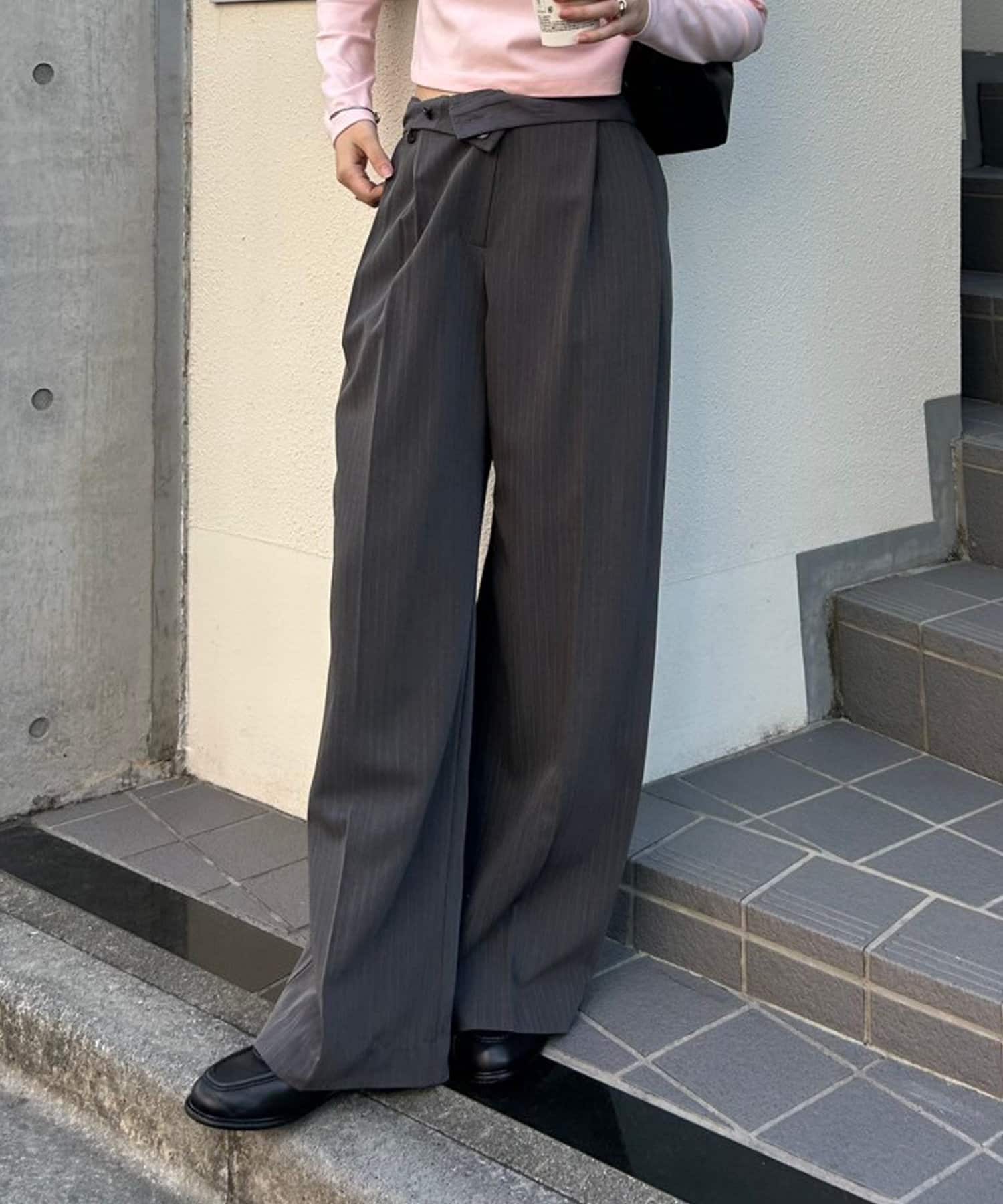 ピンストライプで綺麗見えするスラックスパンツが登場!