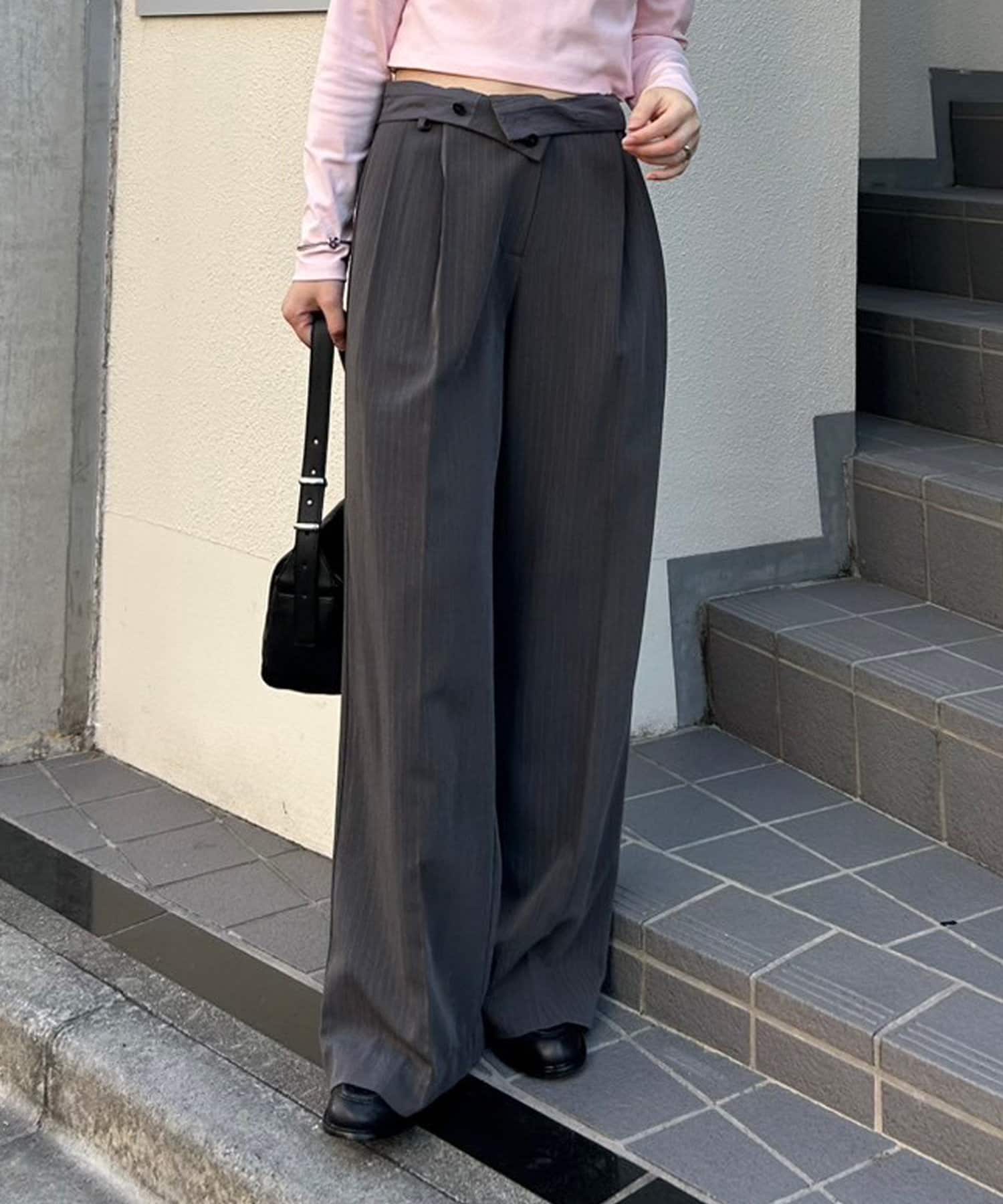 ・ウエスト部分を折り曲げて履くだけでこなれ感のあるスタイリングに◎