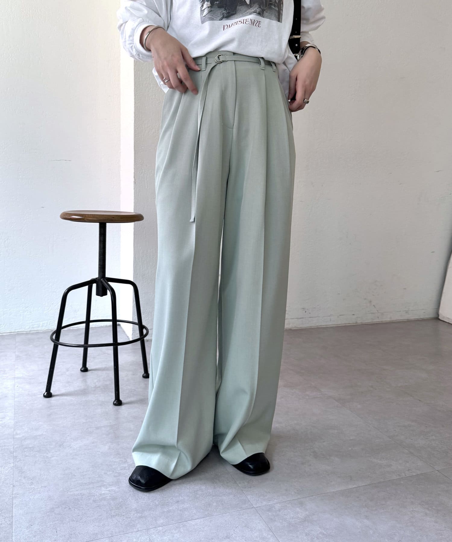 【mystic】ベルト付き2タックパンツ
