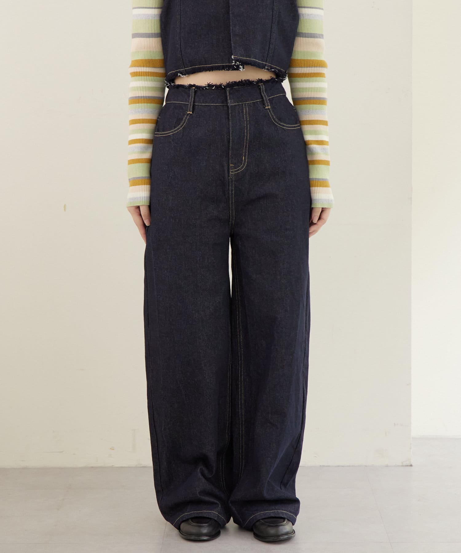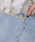 デニムのウエスト部分が切りっぱなしなのが可愛い!
