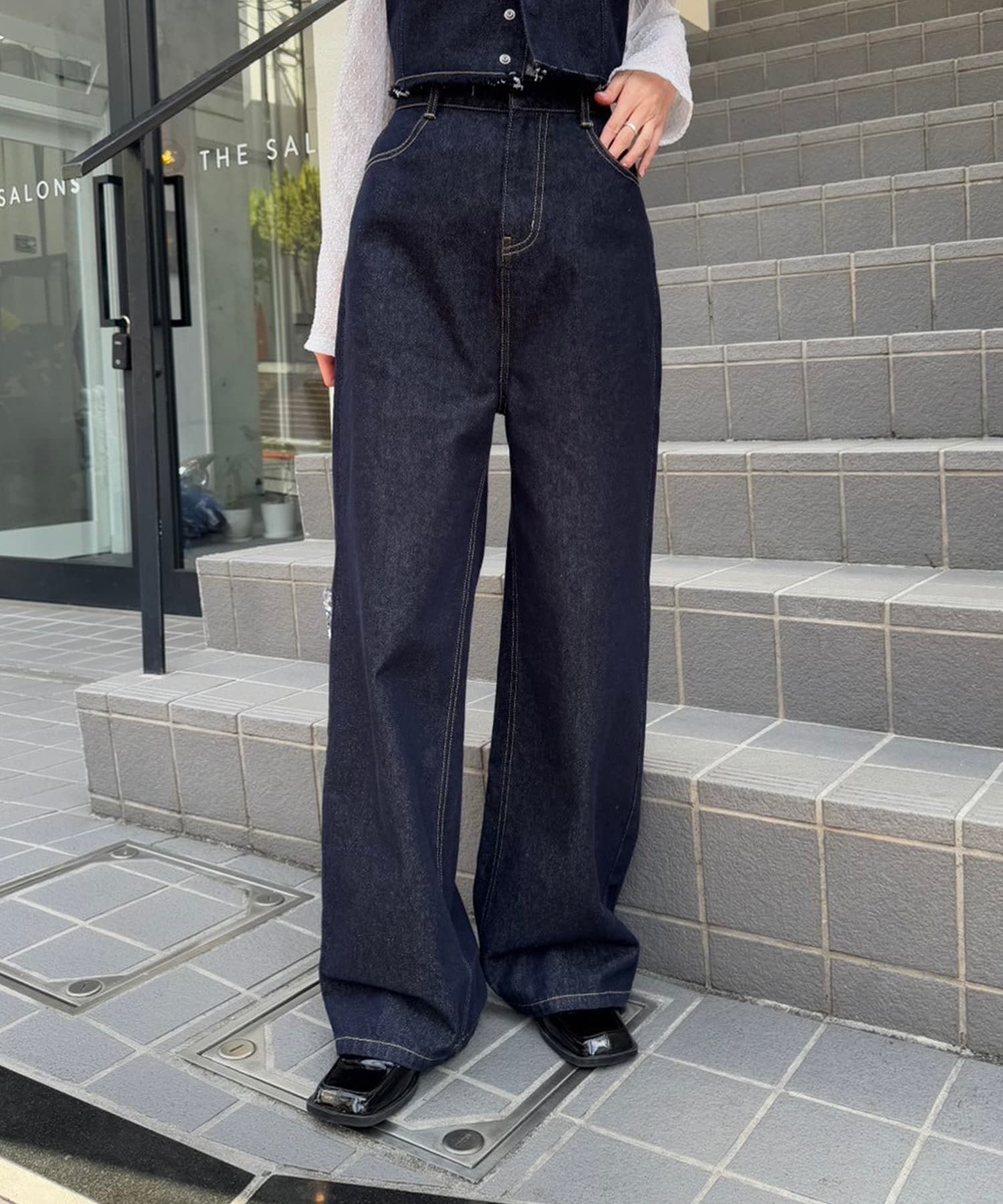 ・絶妙な色味と美シルエットでカジュアルになり過ぎず、綺麗めな印象で着られるデニムSETアイテム。