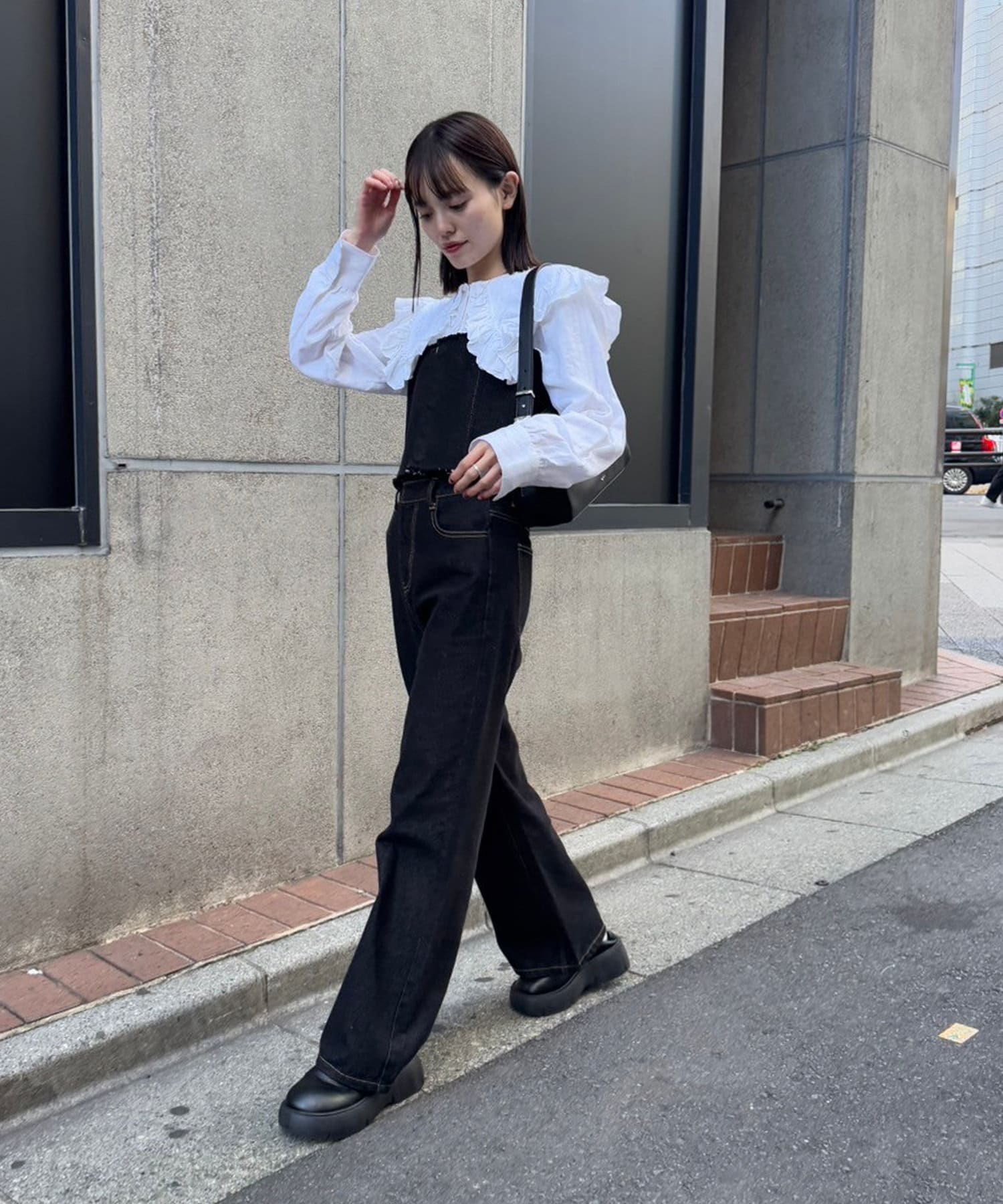 また、ボタンの開け具合を調節して抜け感を出すのがおすすめです!