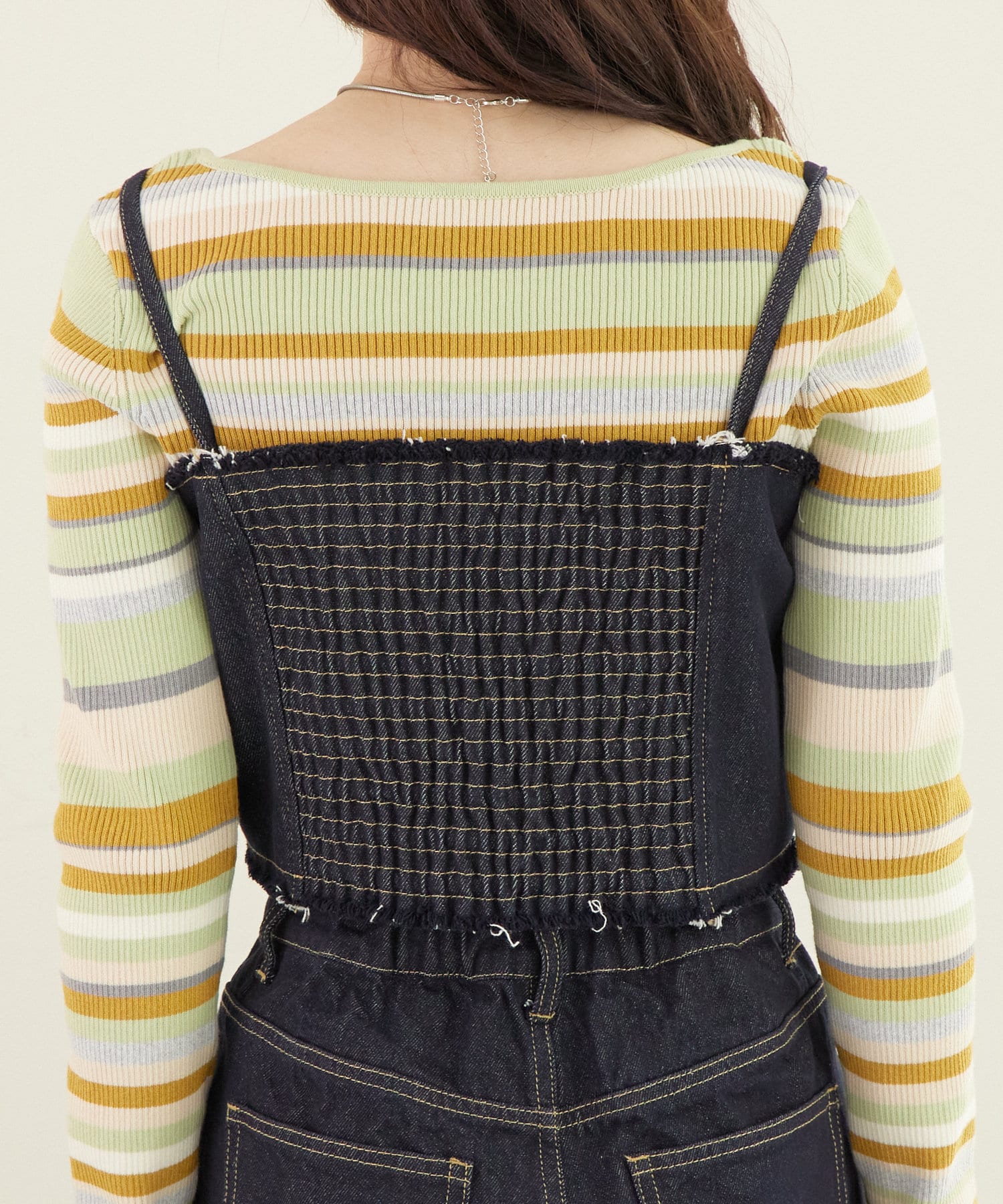 ・ビスチェとデニムパンツ、それぞれ別のアイテムと合わせても様々な着回しを楽しめます!