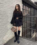・ミニ丈ボトムスとロングブーツ合わせでトレンドな着こなしに◎