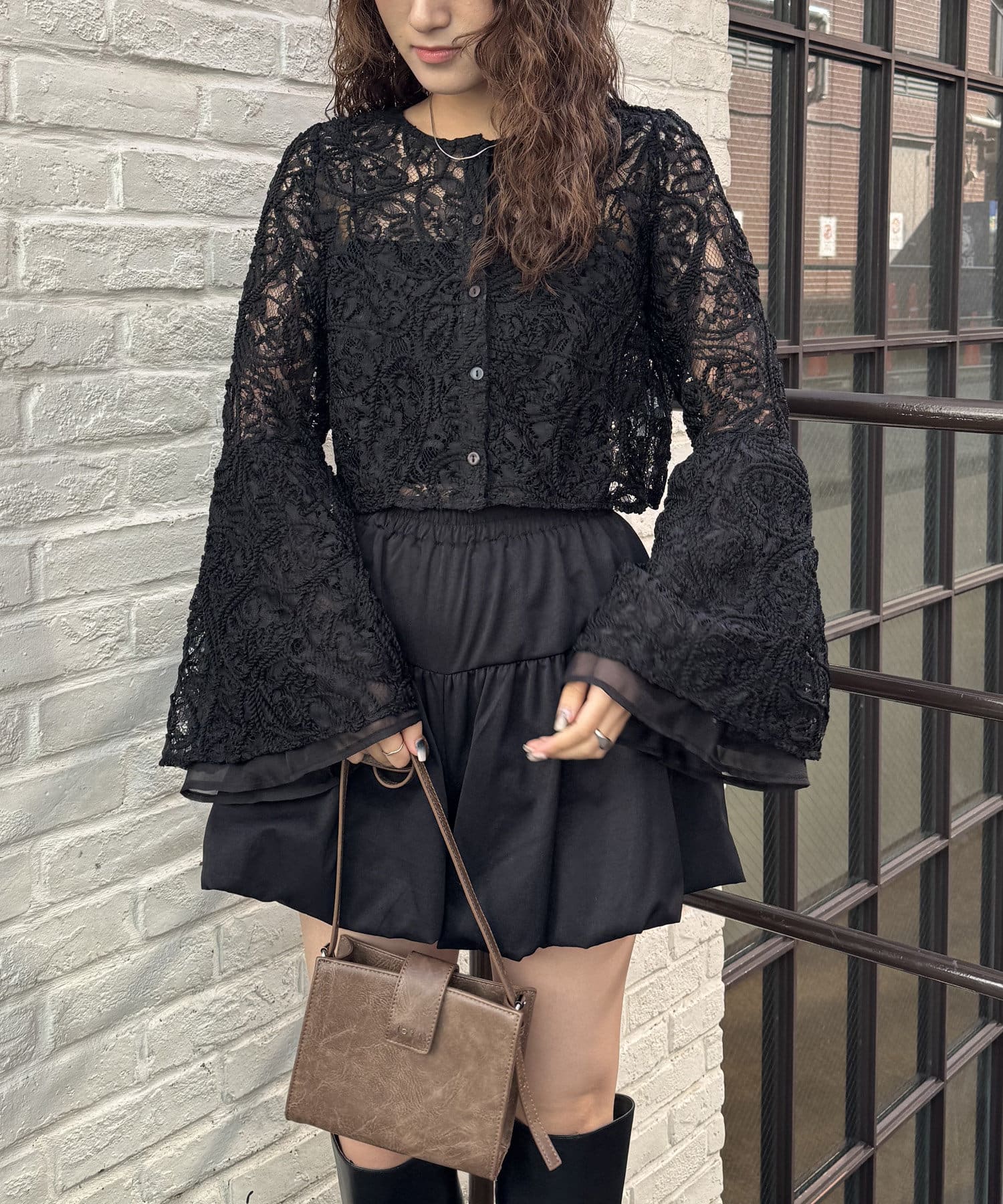 ・透け感のあるアイテムなのでインナー合わせで雰囲気を変えて着ていただけます◎
