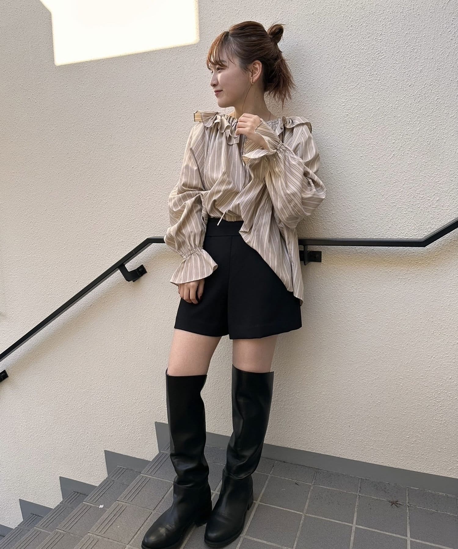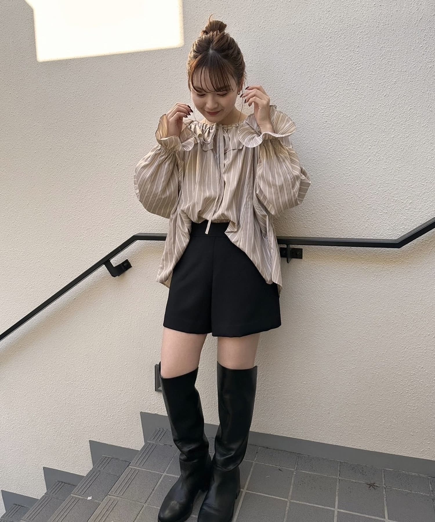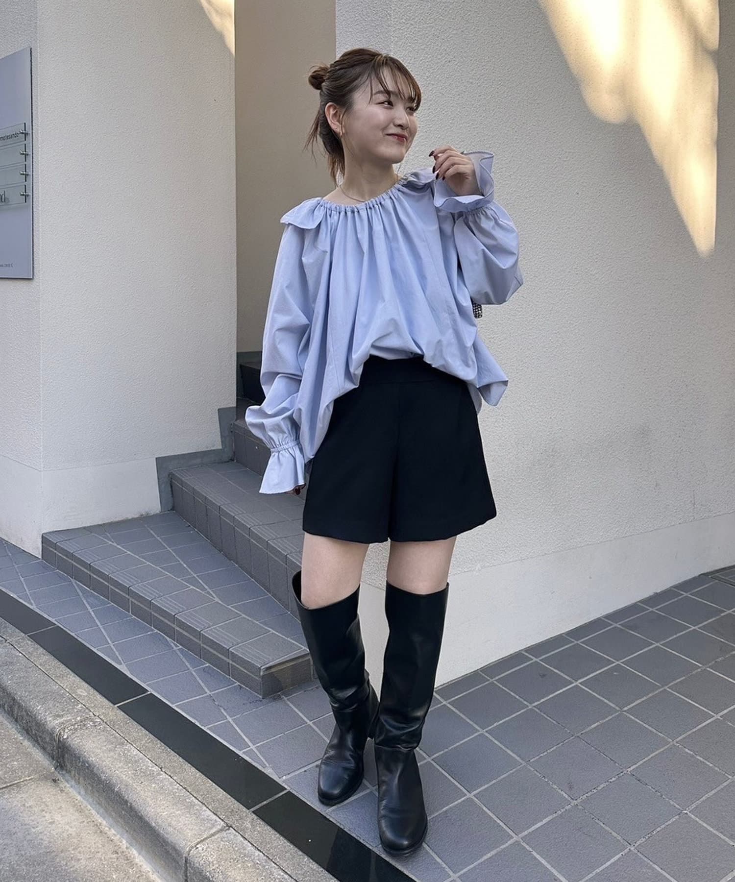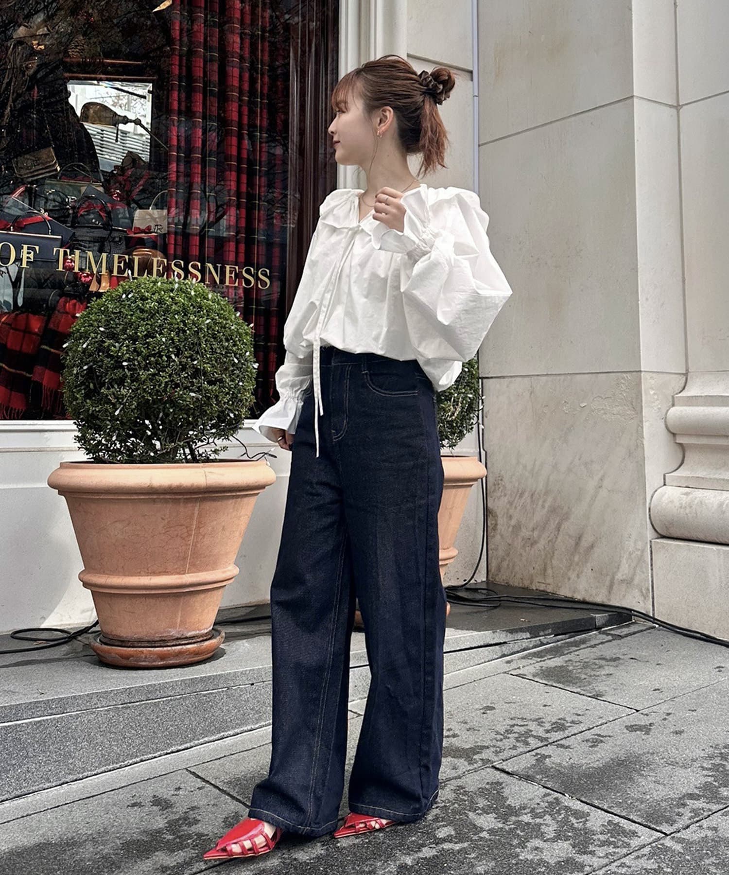・ボリューム感のあるトップスなので、コンパクトなボトム合わせがおすすめ◎