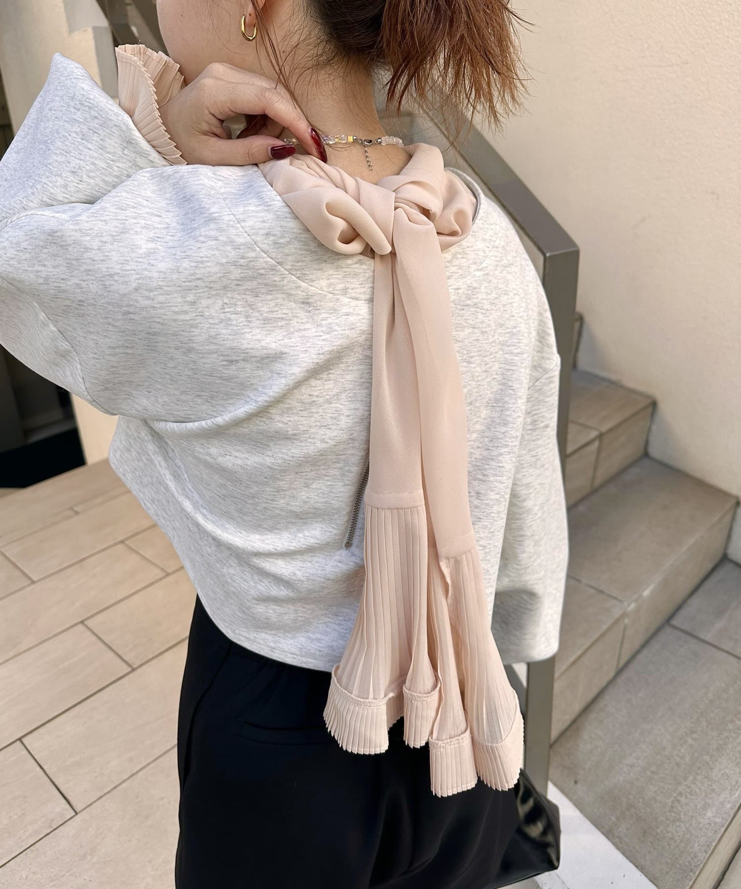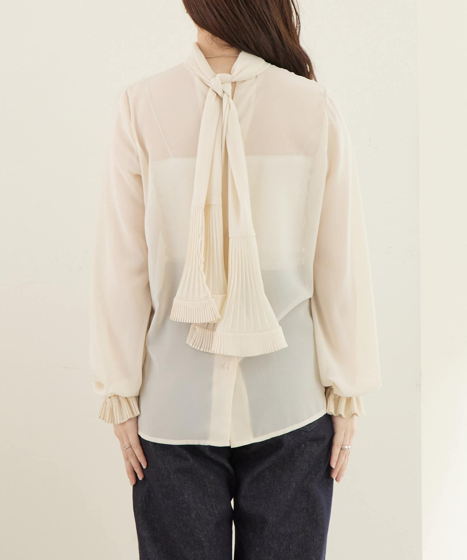 ・袖口とボウタイのプリーツがより女性らしい印象のアイテムです!