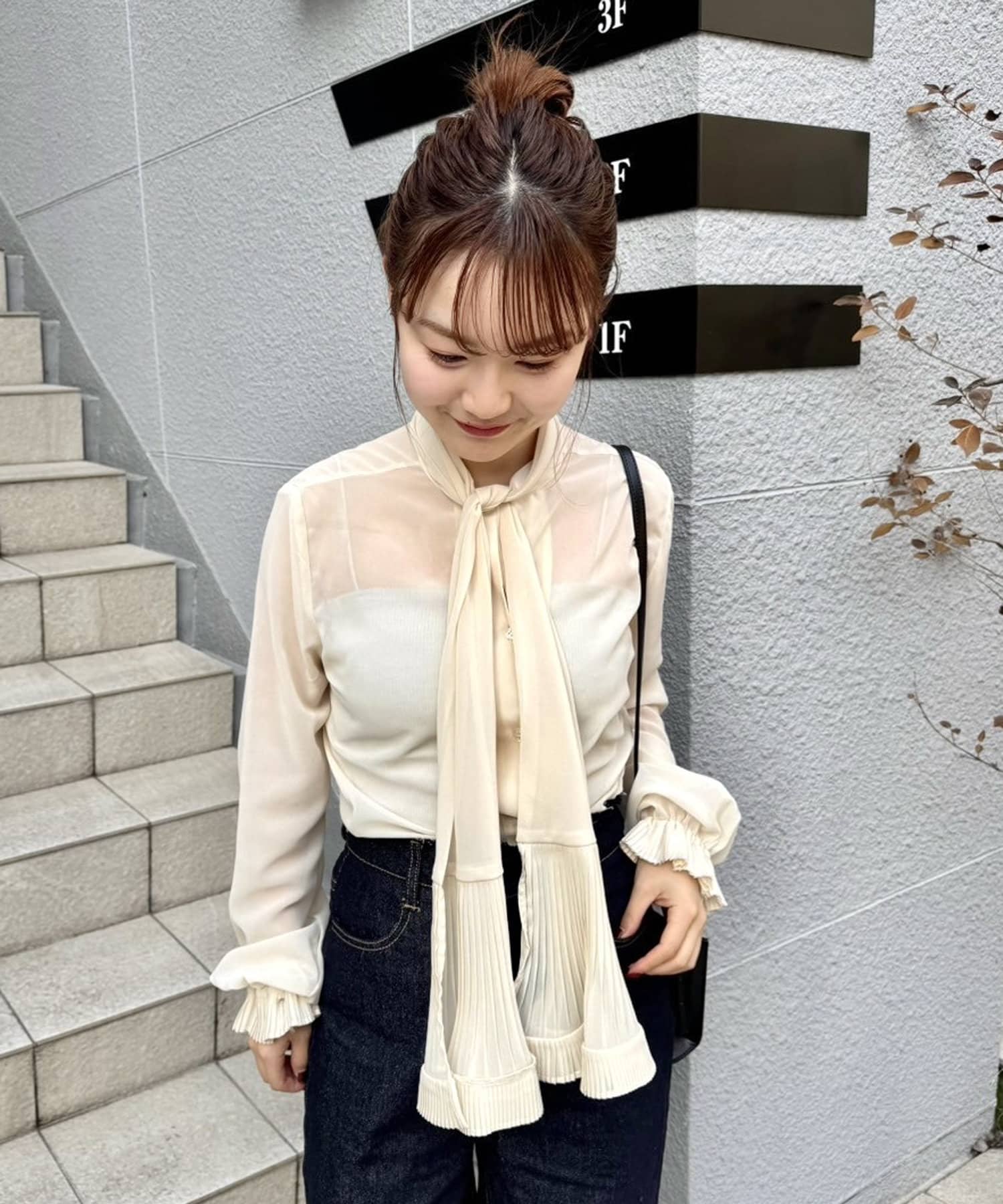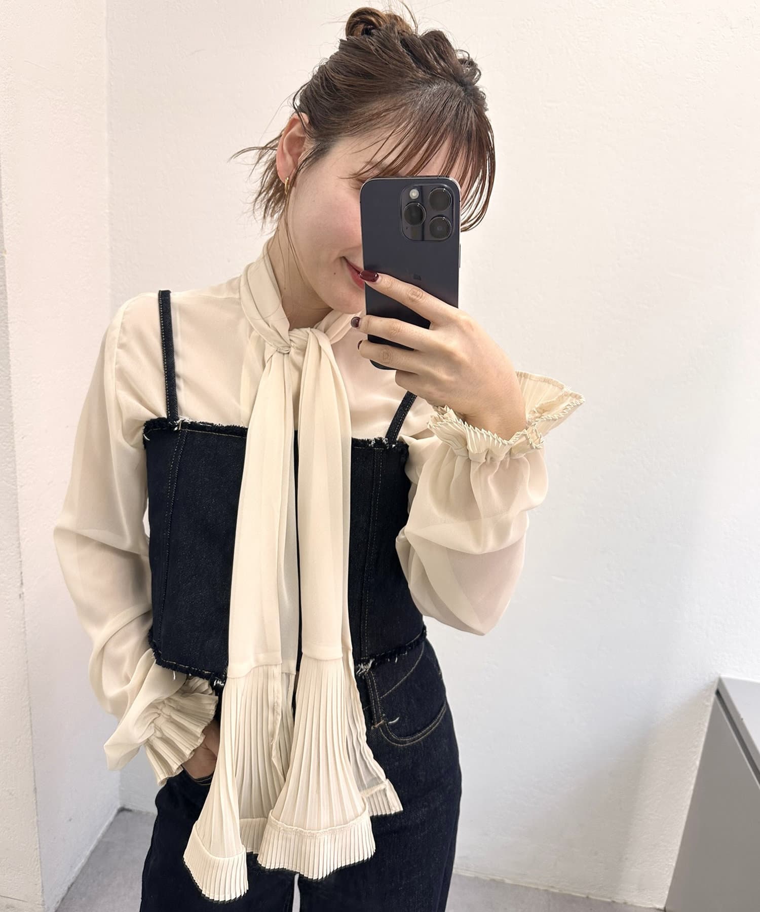 【mystic】プリーツボウタイブラウス