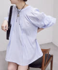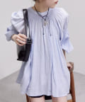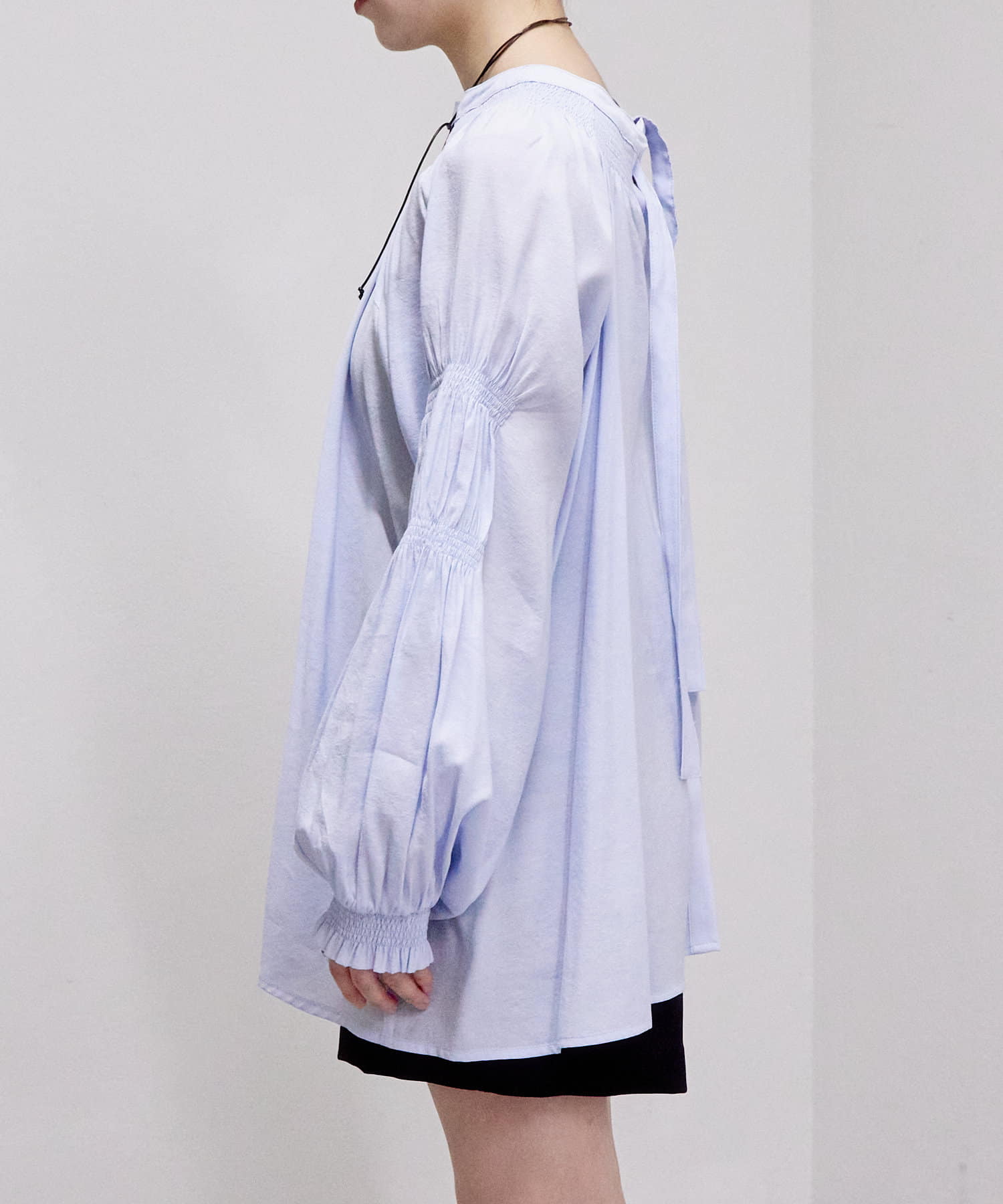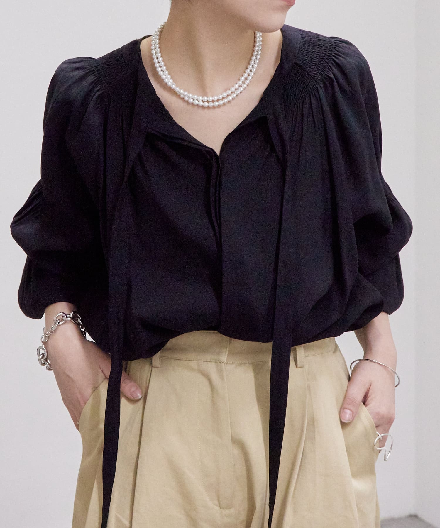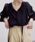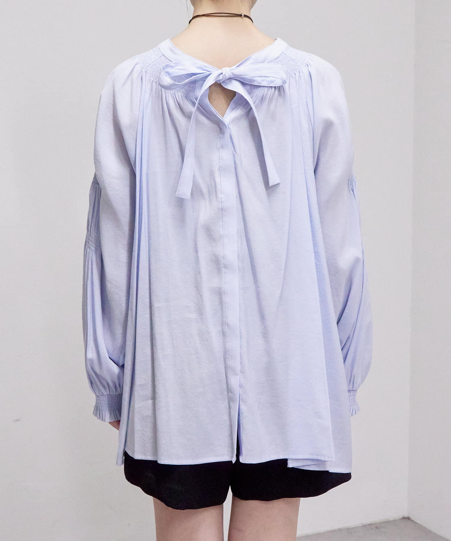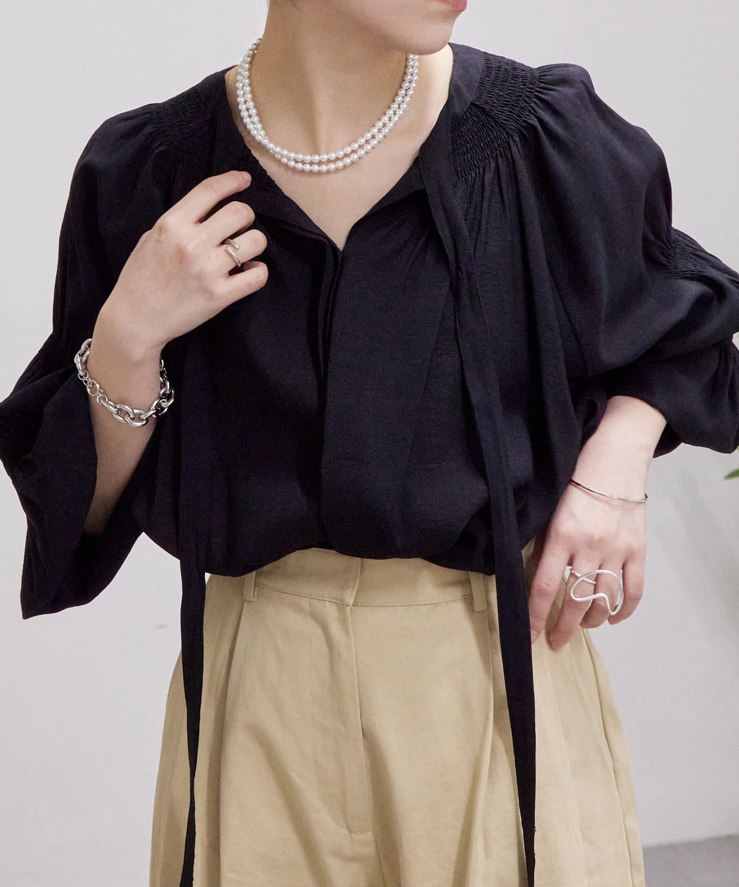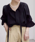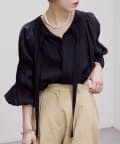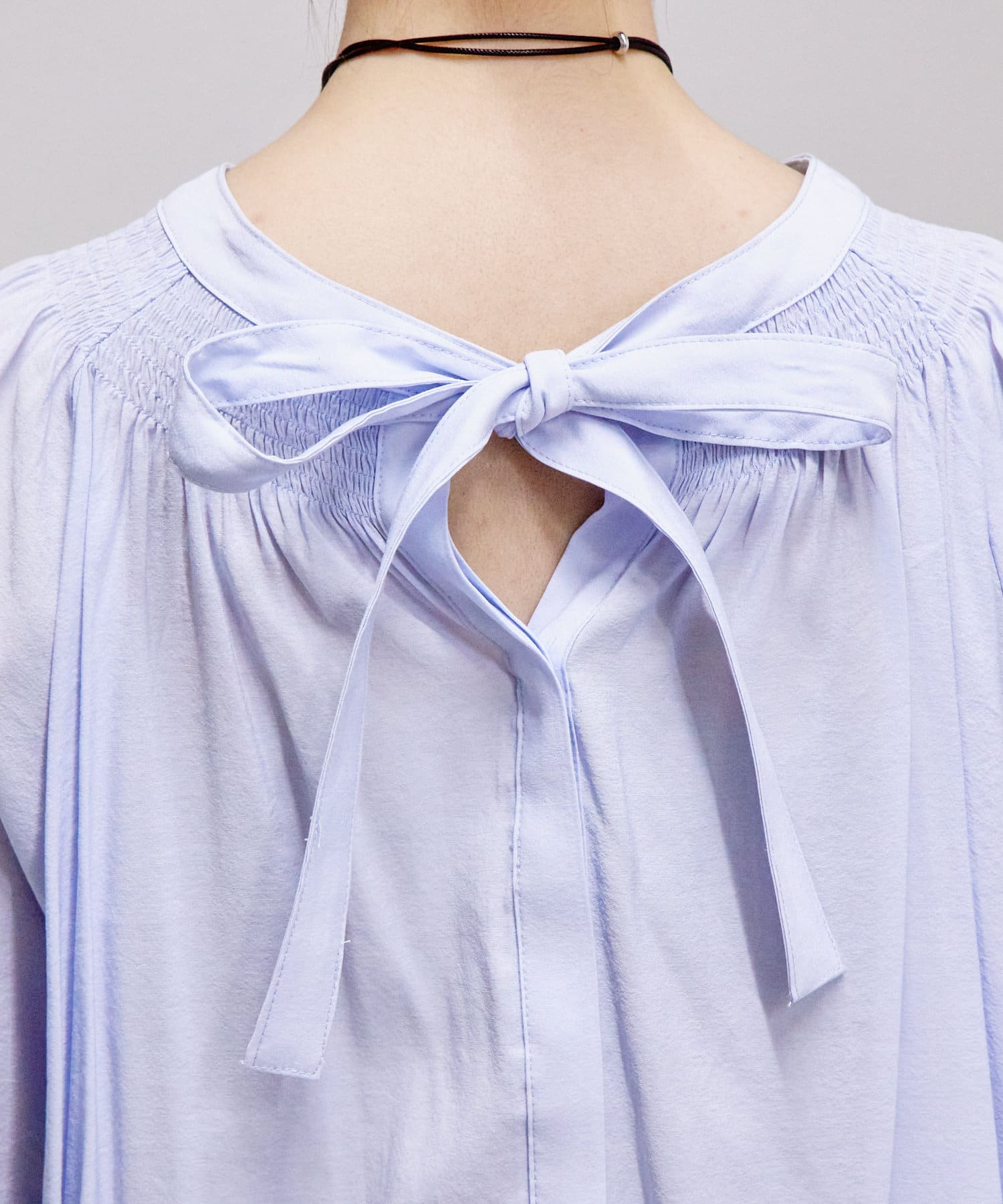 ・ふわっと柔らかな生地感で後ろのリボンが目を惹くブラウス。