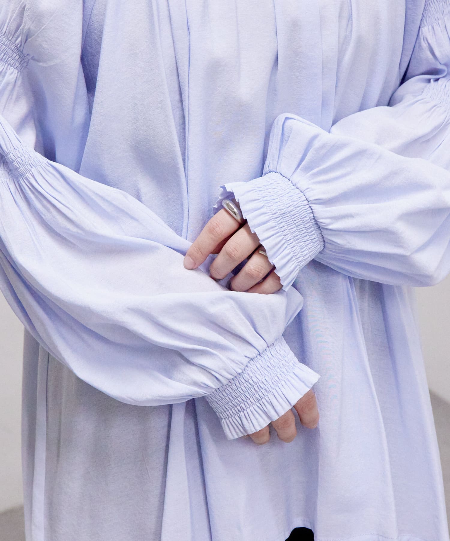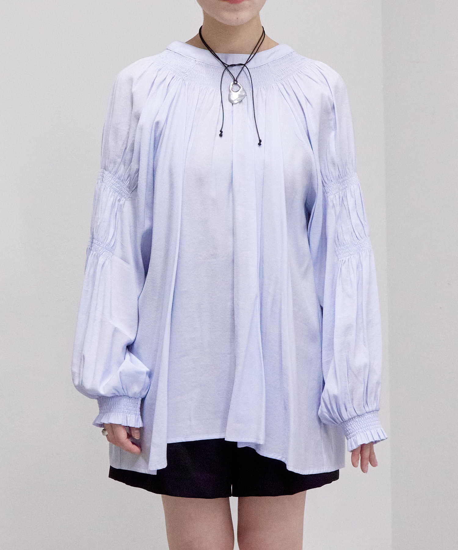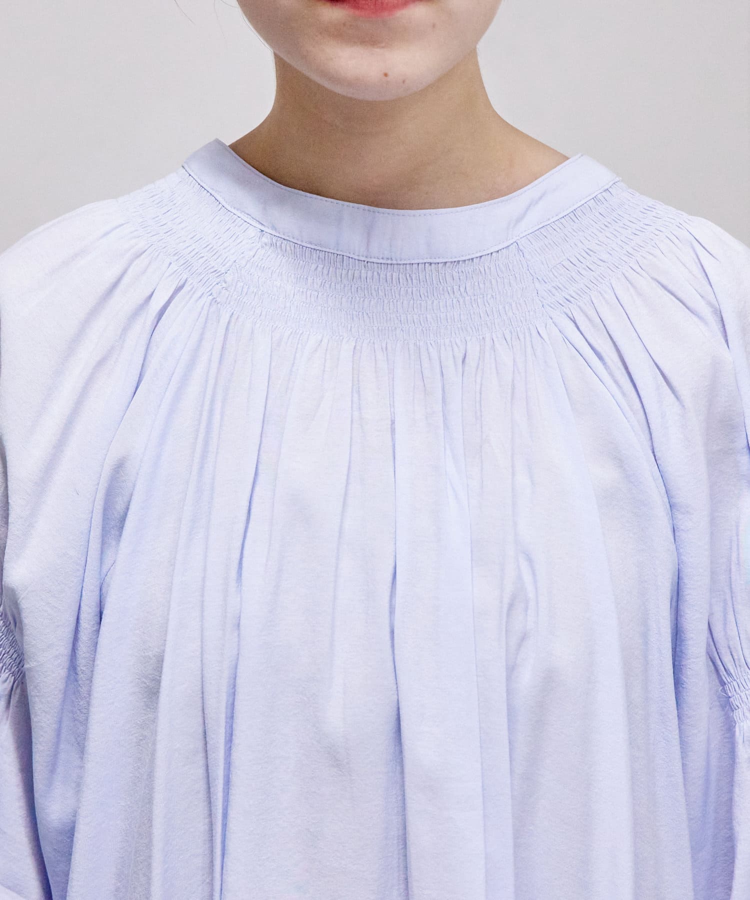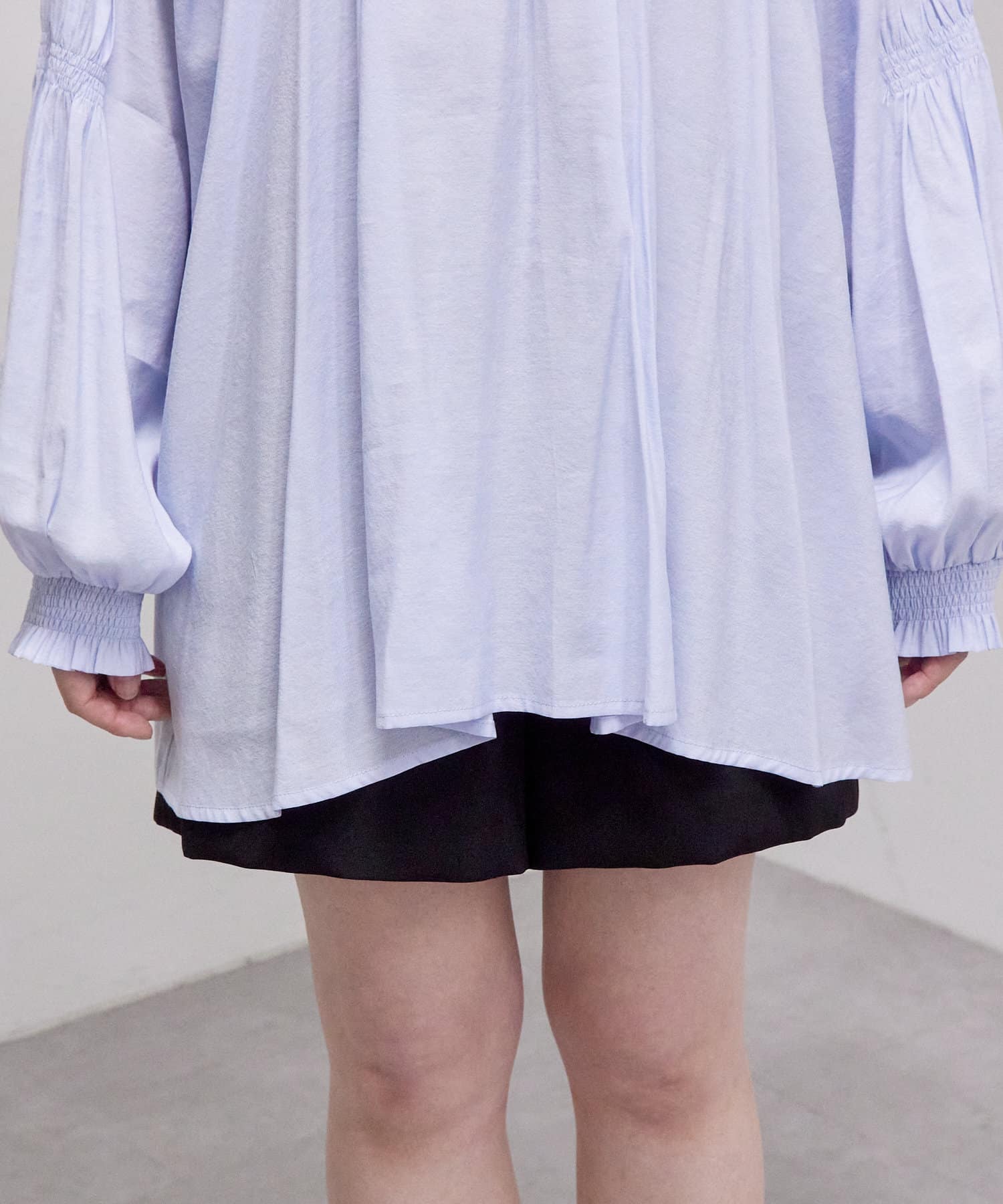 ・ギャザーが施された落ち感あるシルエットで細見え◎