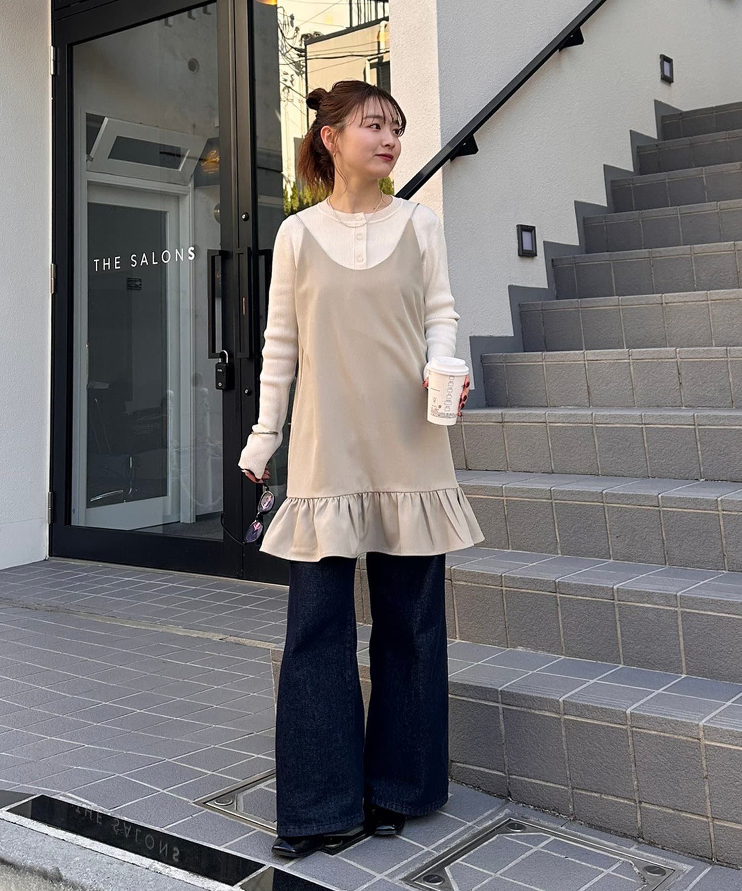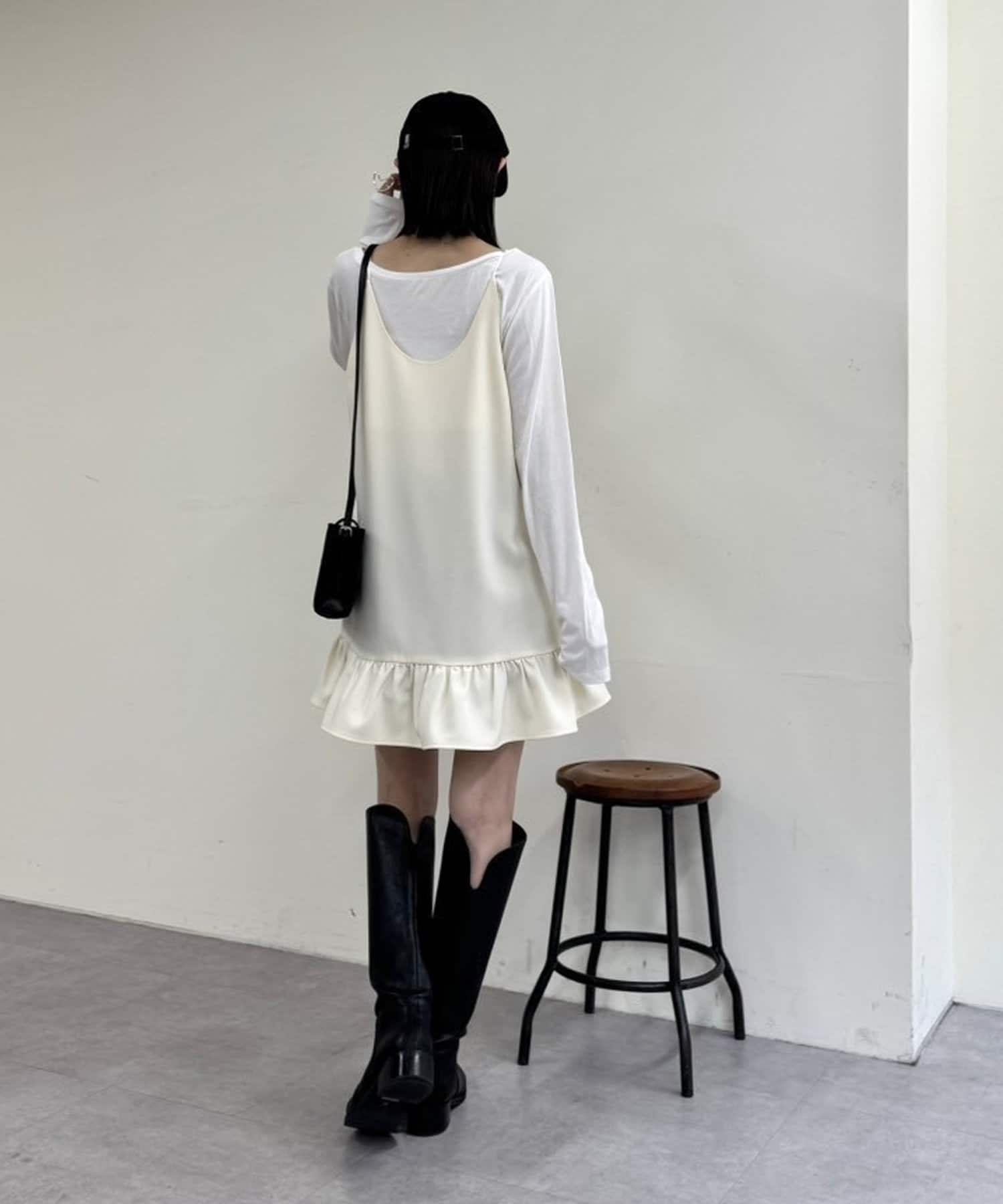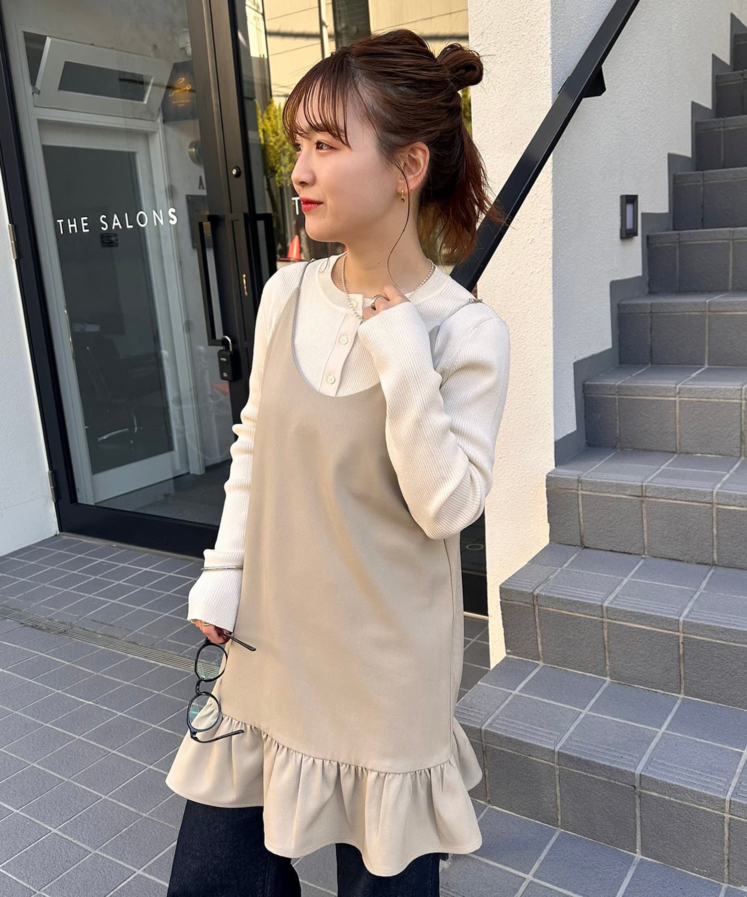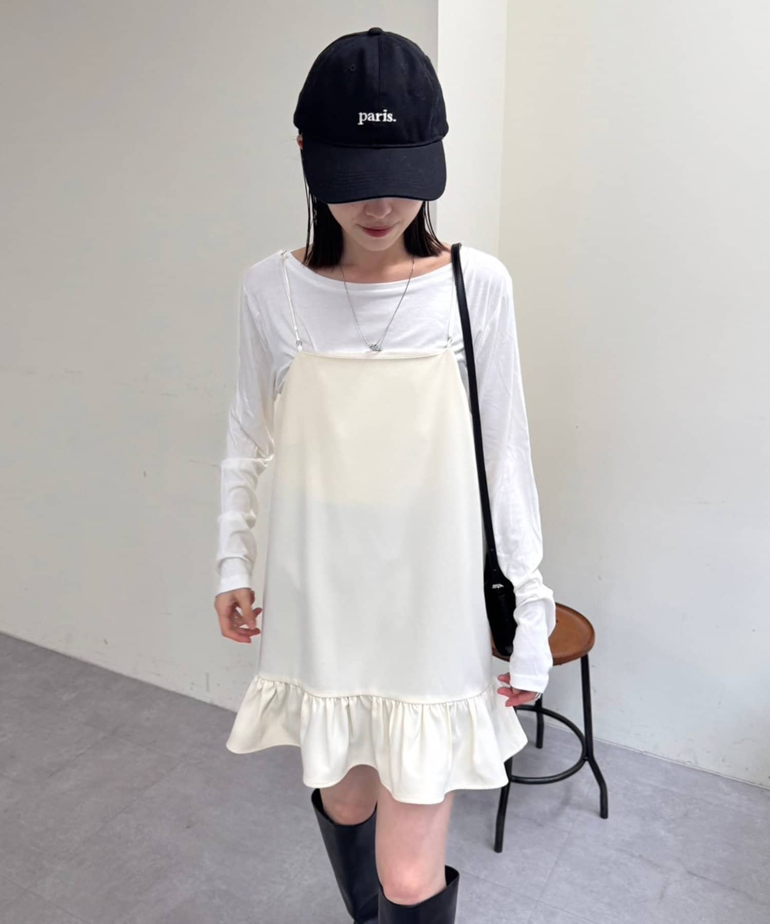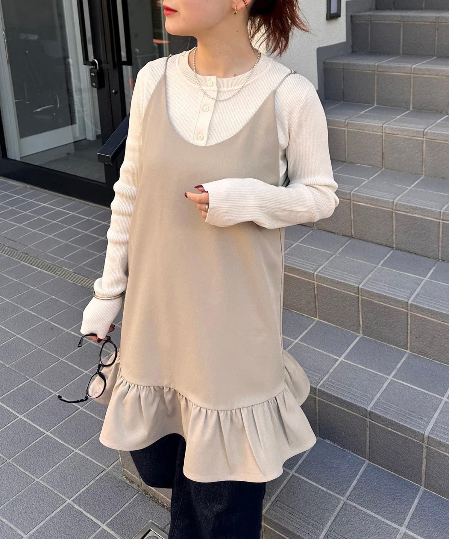 レイヤードスタイルに◎裾のフリルが可愛いキャミチュニックが登場!