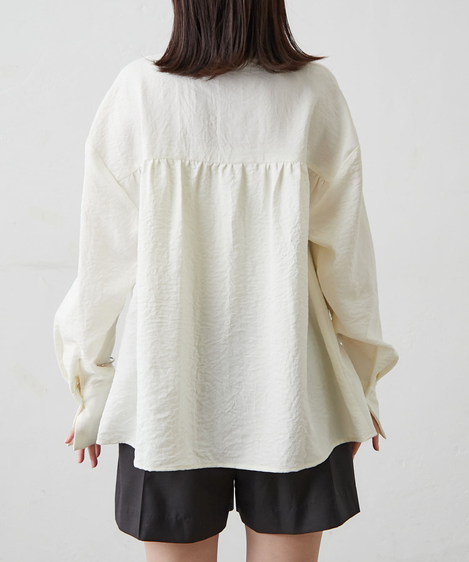 ・一枚着ではもちろん、ニットやスウェットのインナーで合わせることで雰囲気を変えて着ていただけます◎