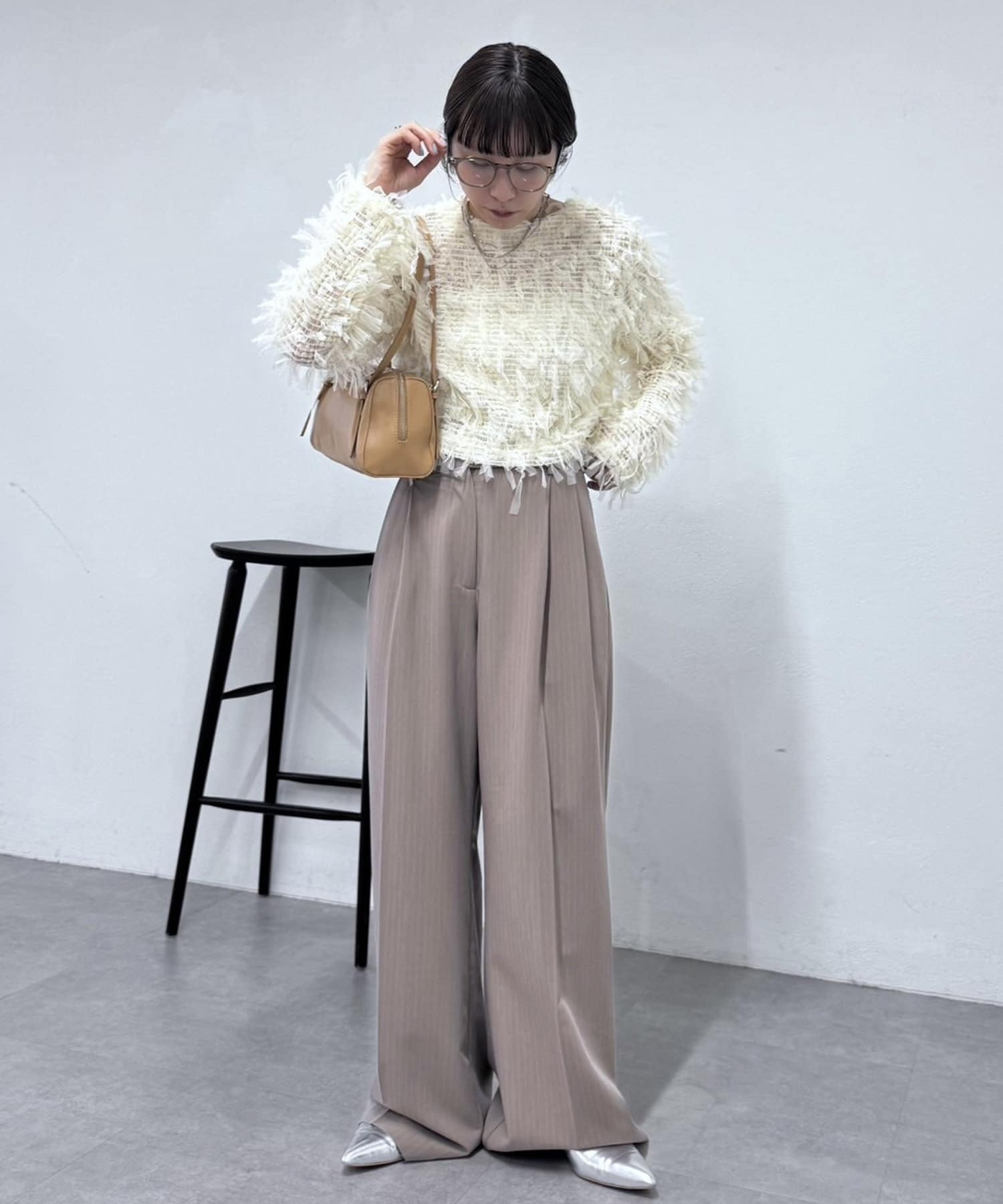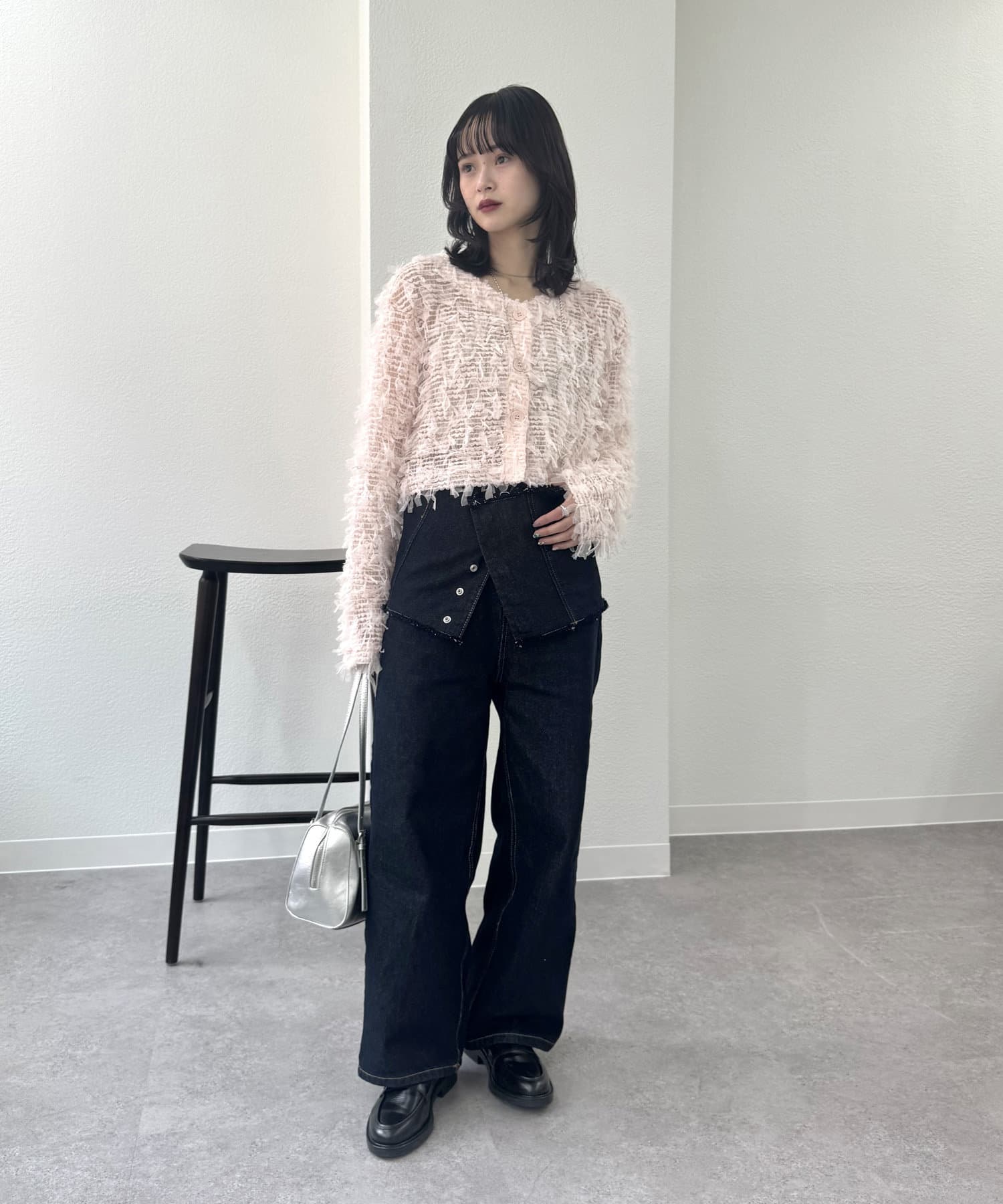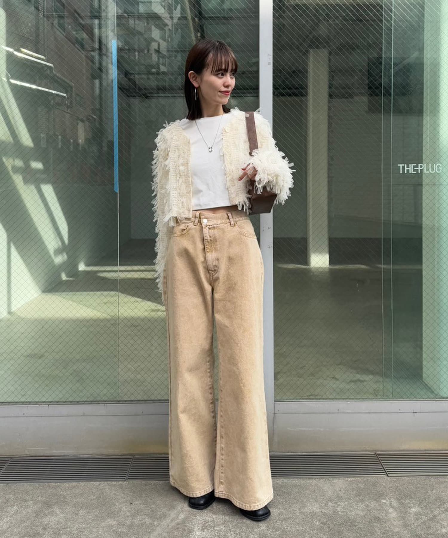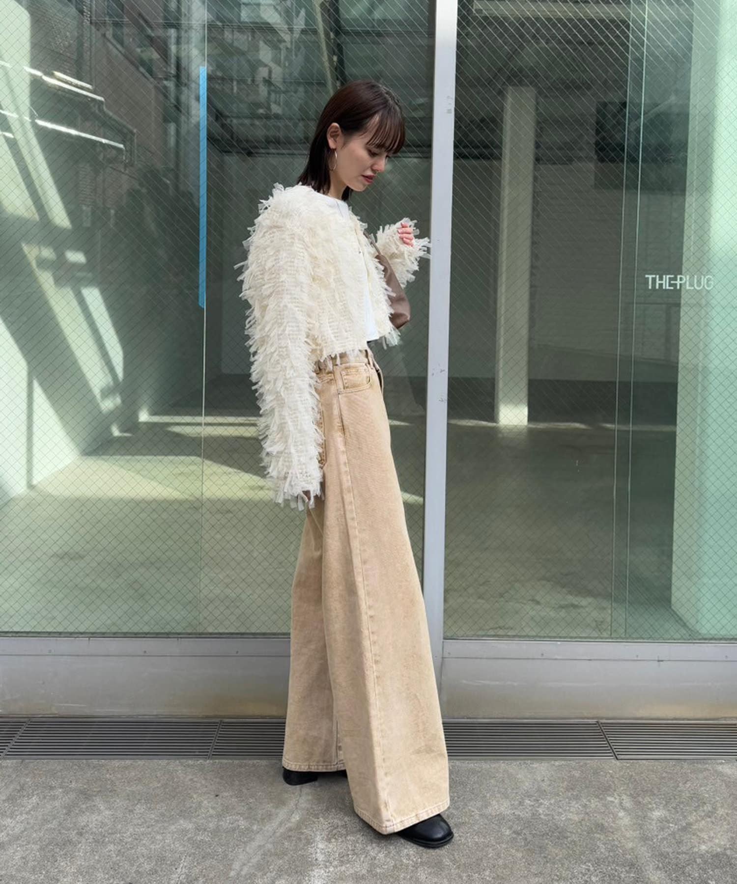 ・表面感のあるアイテムなので、シンプルなボトムス合わせがおすすめ!