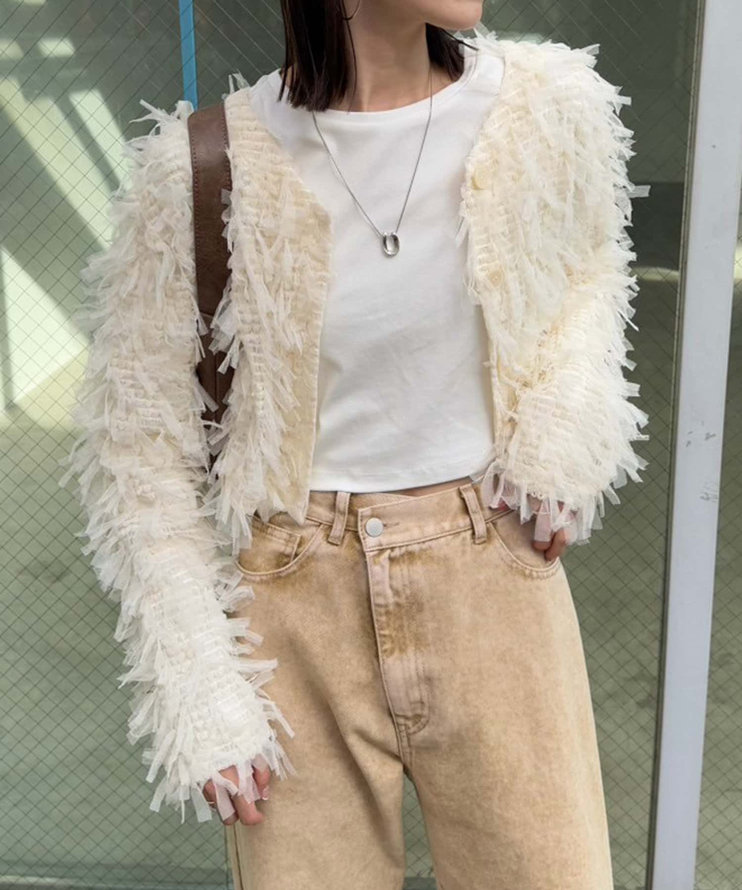 スタイルアップ◎チュールが目を惹く主役カーディガンが登場!