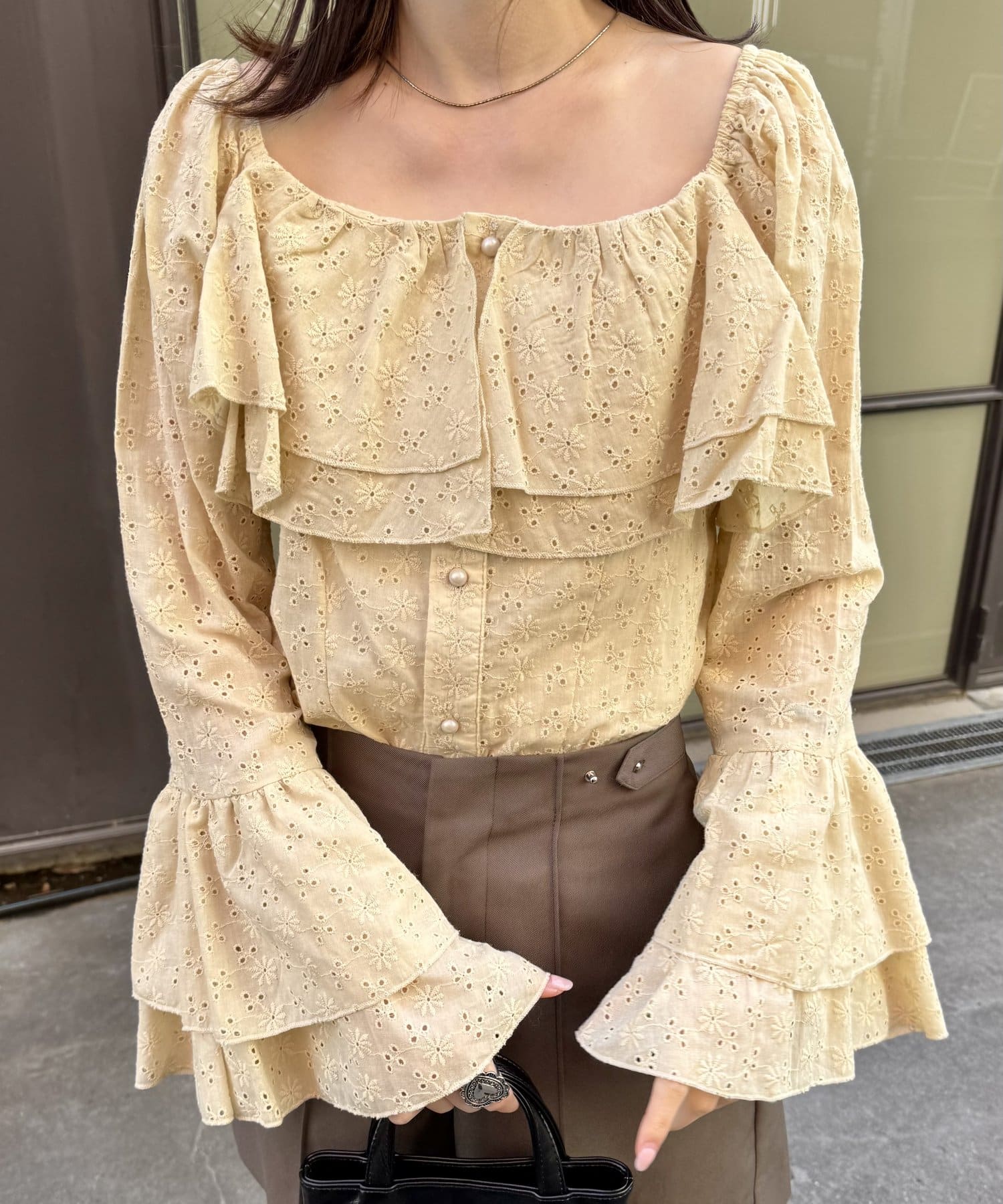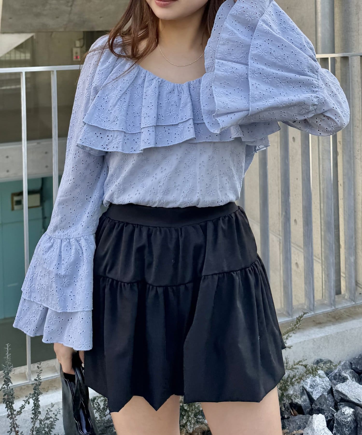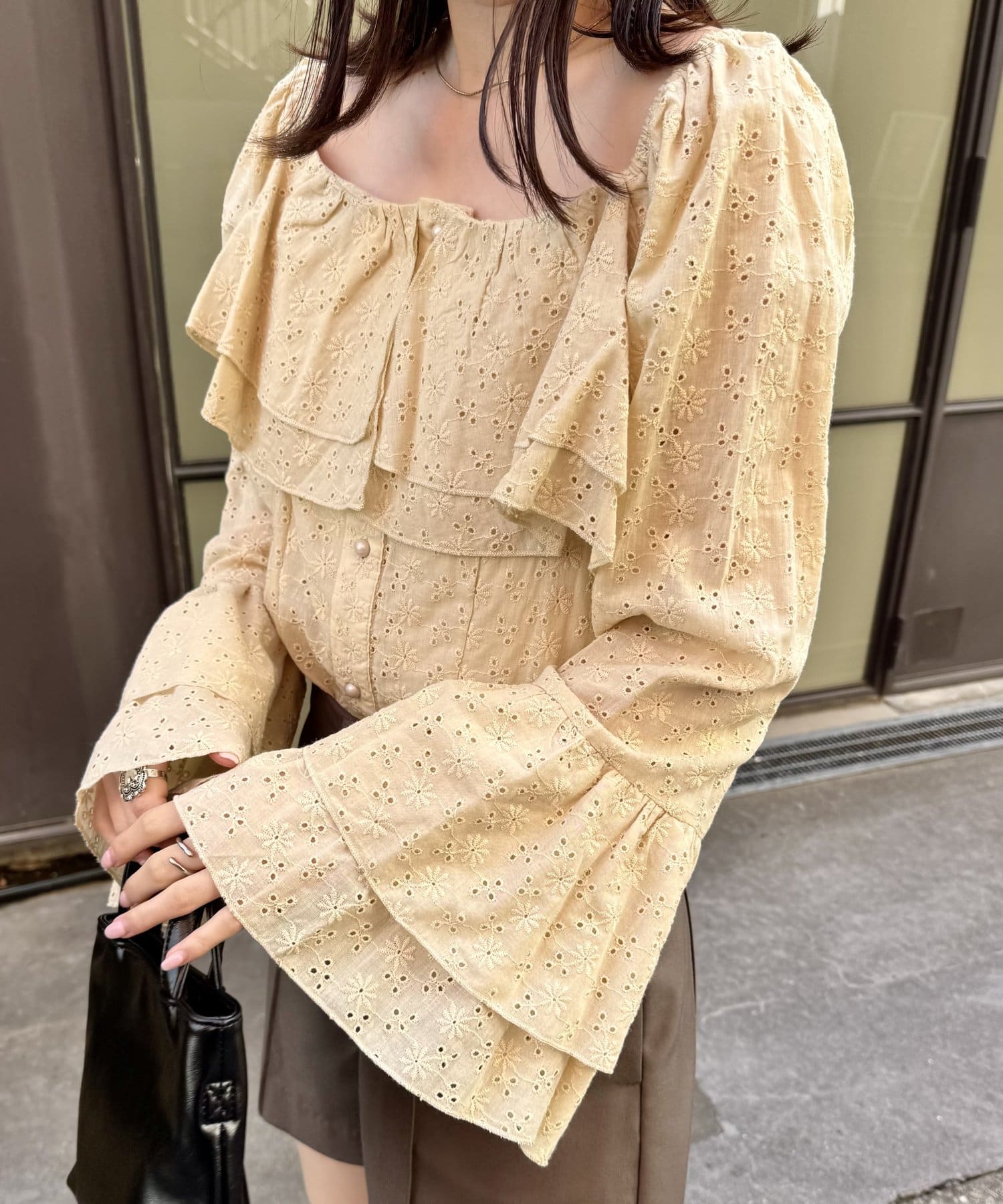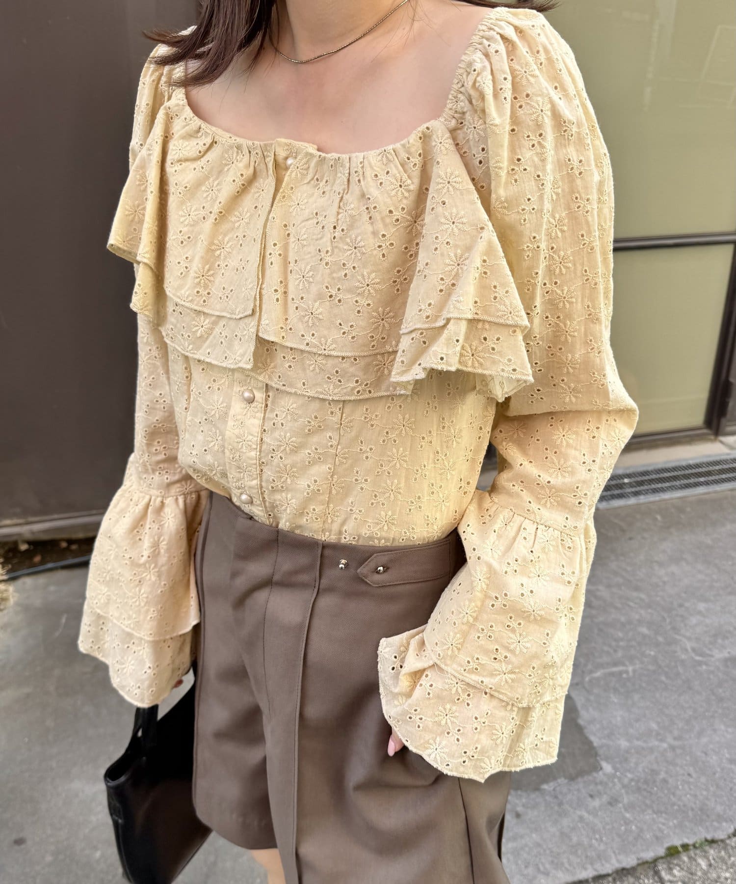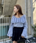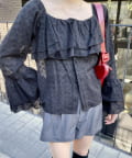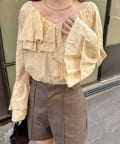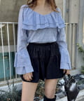 ・大き目の襟フリルと、袖先のフリルがポイントのアイテム。