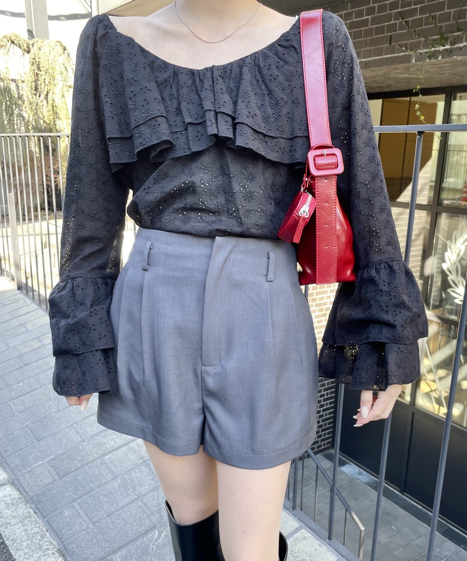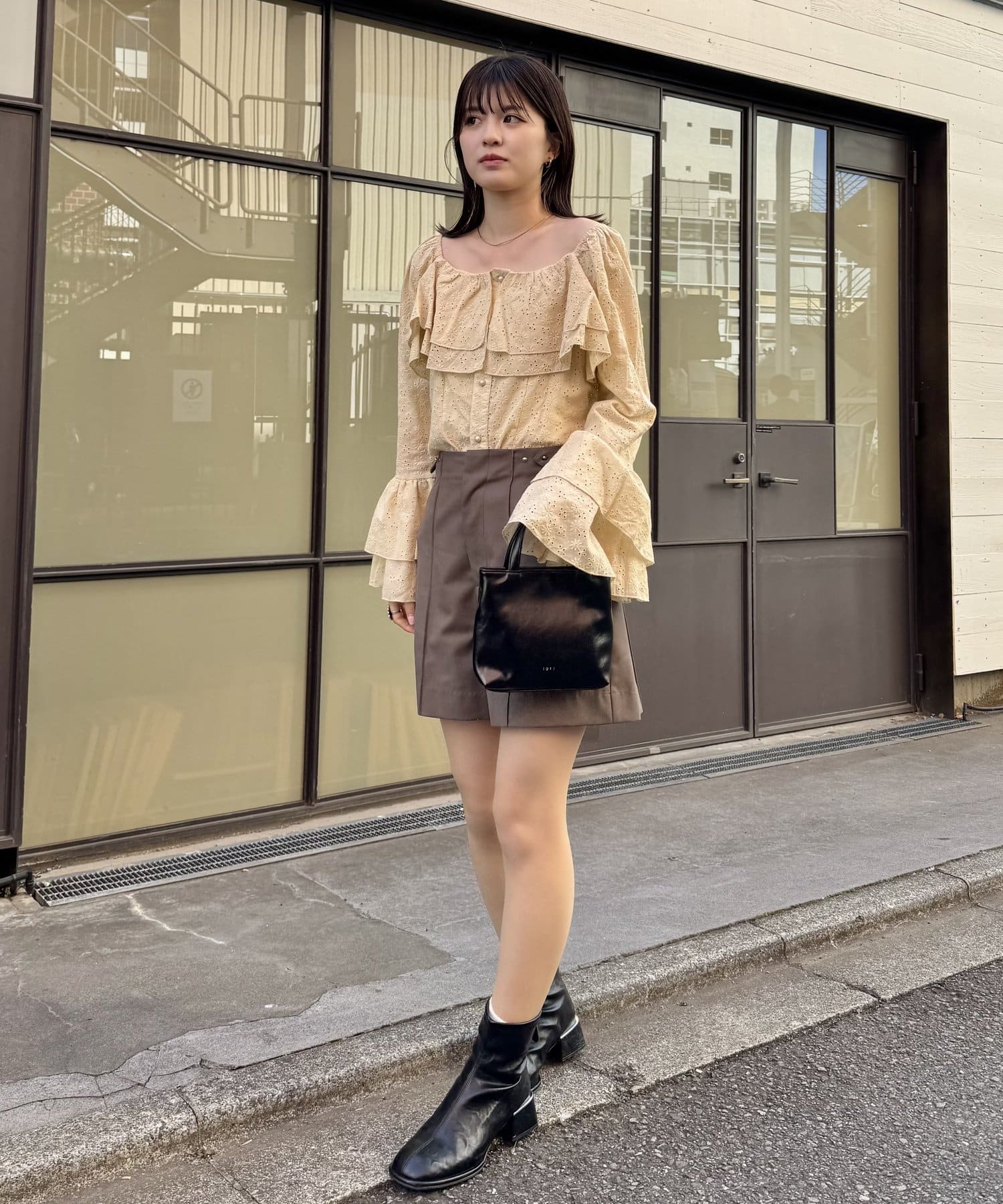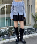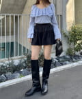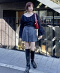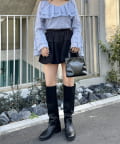 ・ミニ丈ボトムスとロングブーツ合わせでトレンドな着こなしに◎