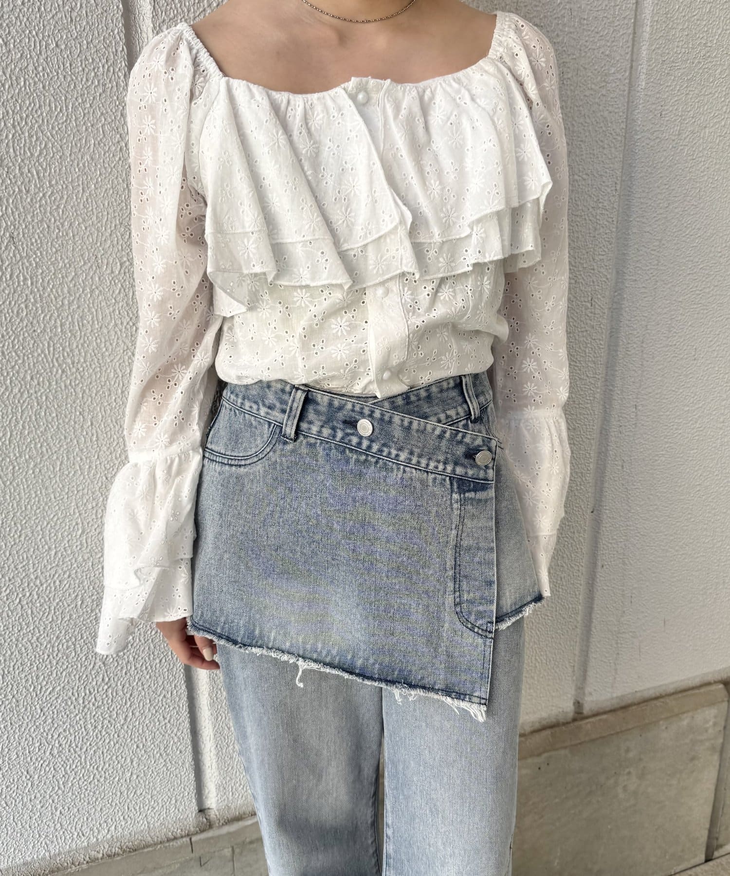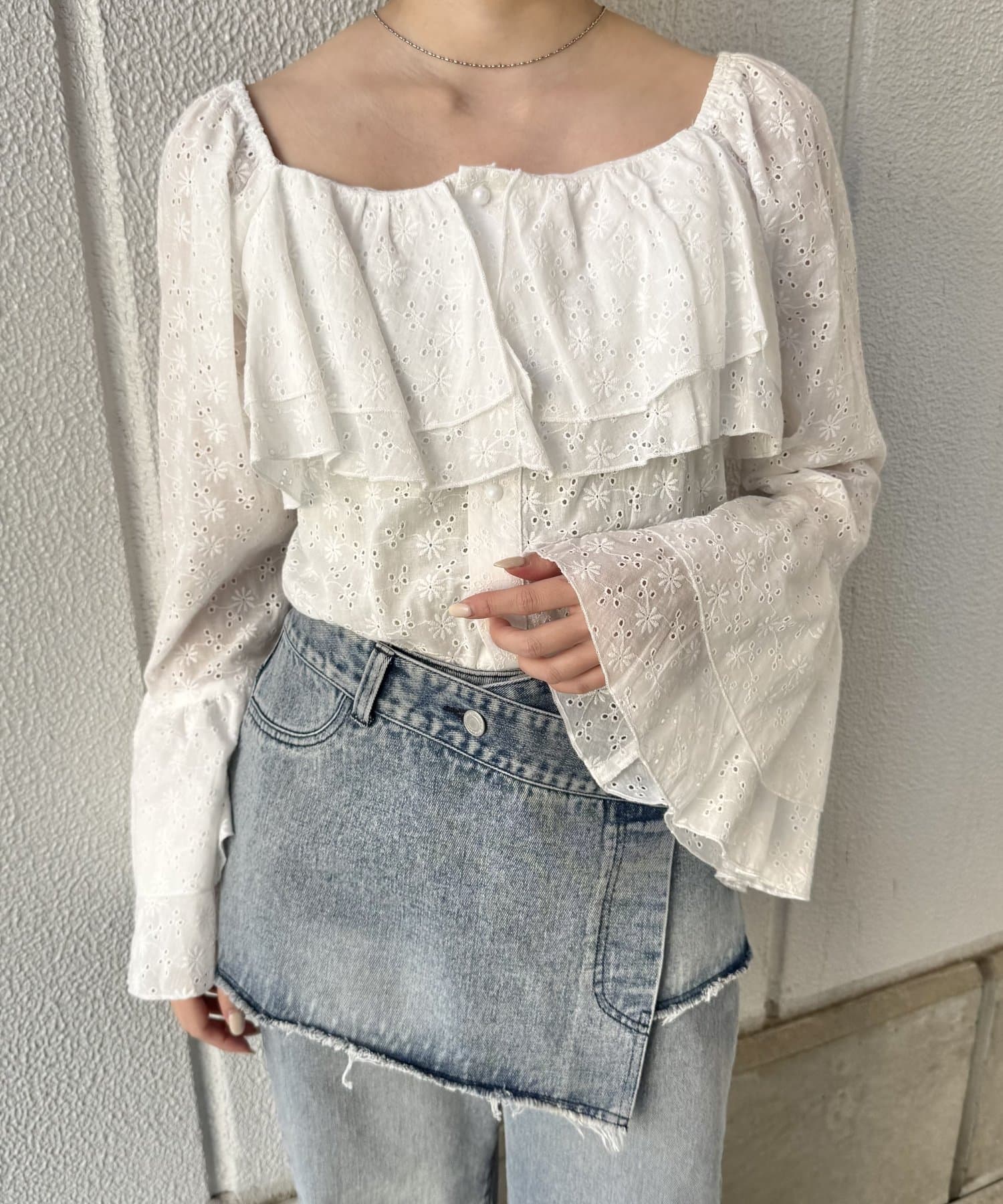 [mline]コットンレースフリルブラウス