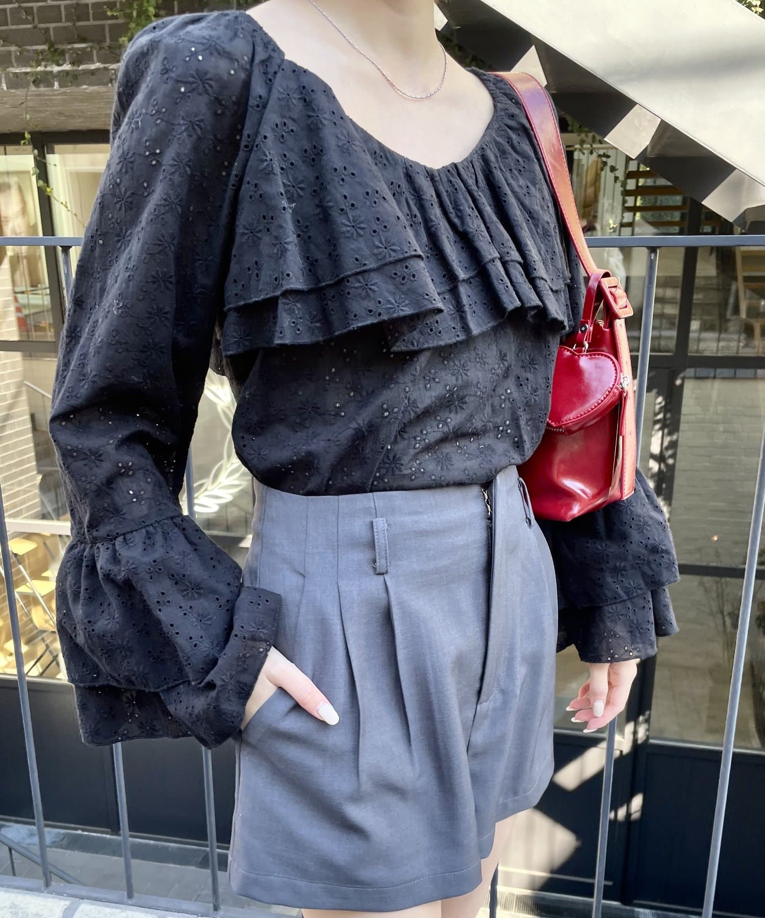 ・デザイン性のあるトップスなので、シンプルボトム合わせが◎