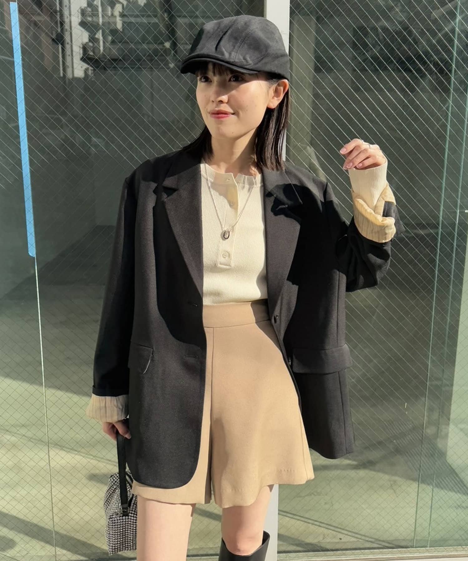 ・小ぶりなボタンを開けて着ることで、抜け感◎デコルテ周りも綺麗にみせてくれます!