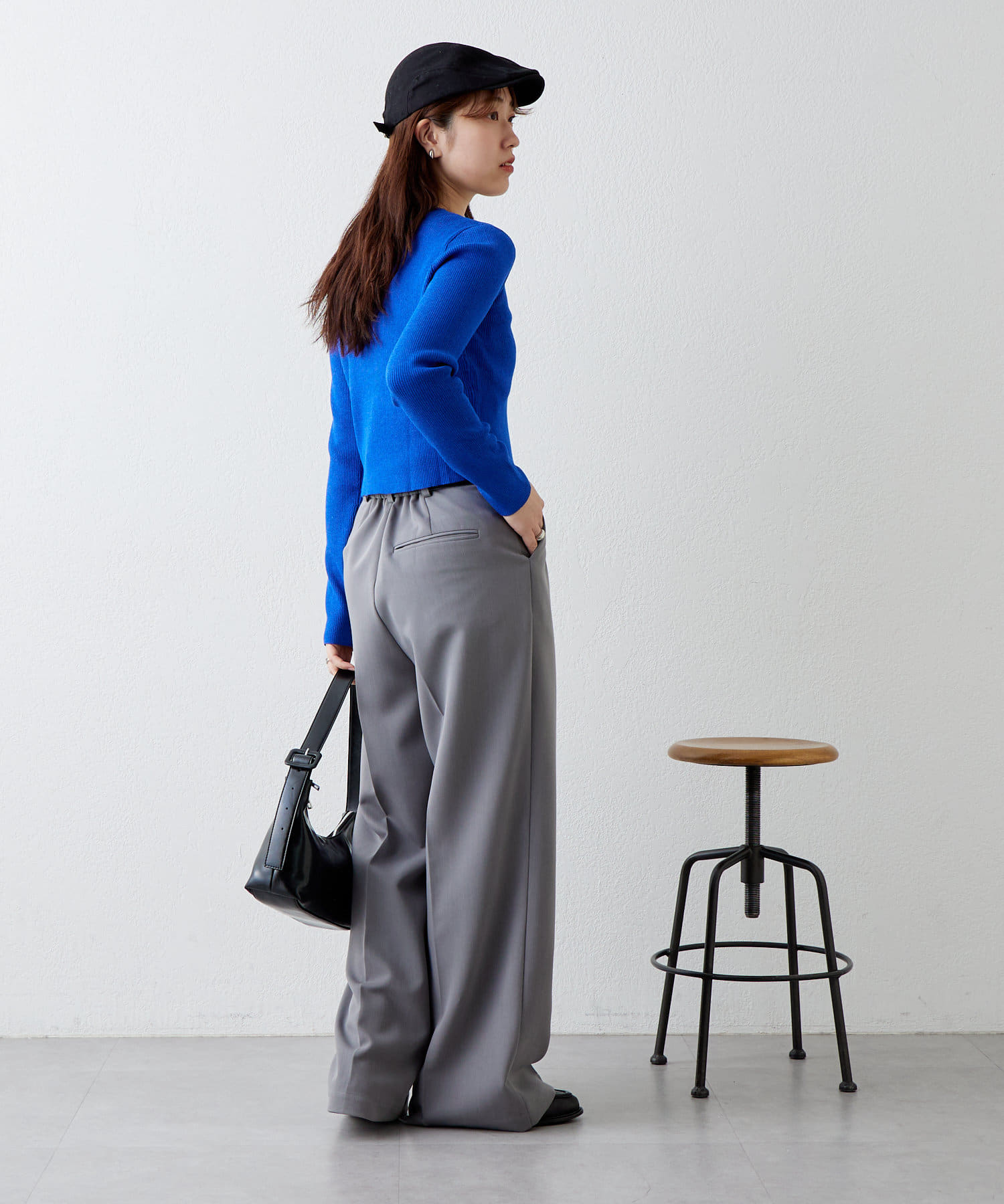 ・細めのリブでIラインが強調され、すっきりシルエットで着ていただけます!