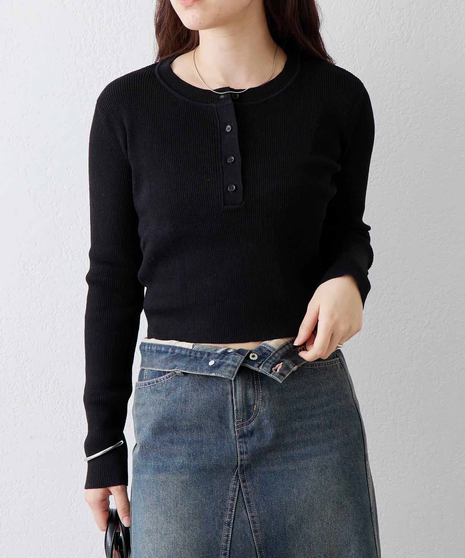 着回し力抜群◎トレンドライクなヘンリーネックのニットが登場!