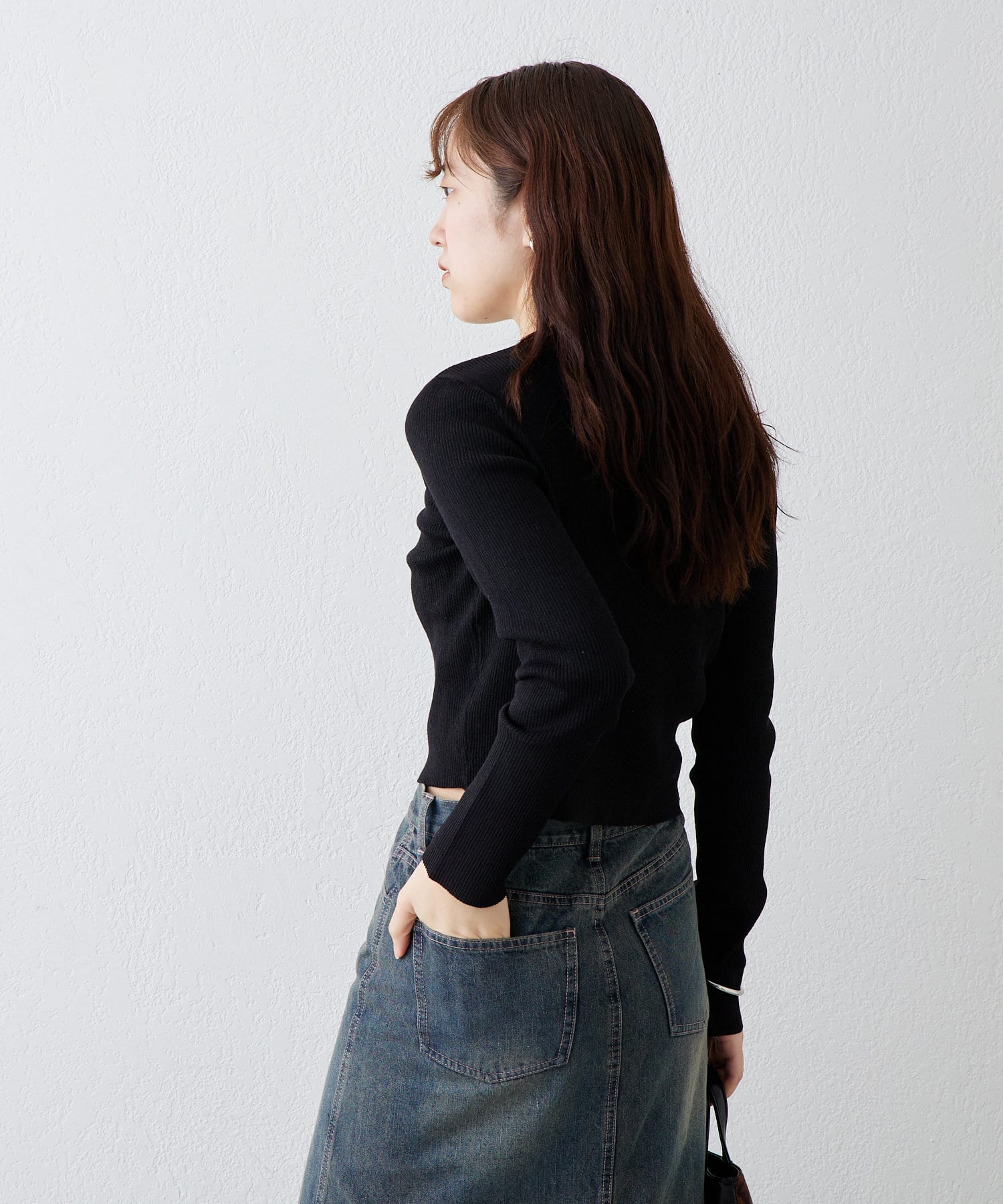 やわらかいリブニットで薄手なのでインナーや1枚でもと使い回しのきくアイテム