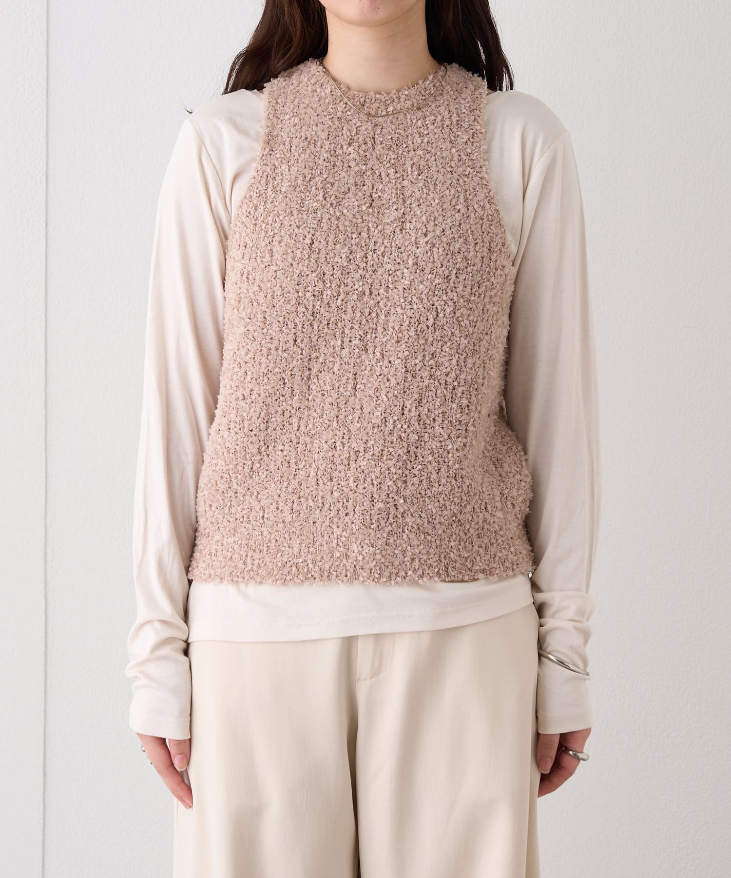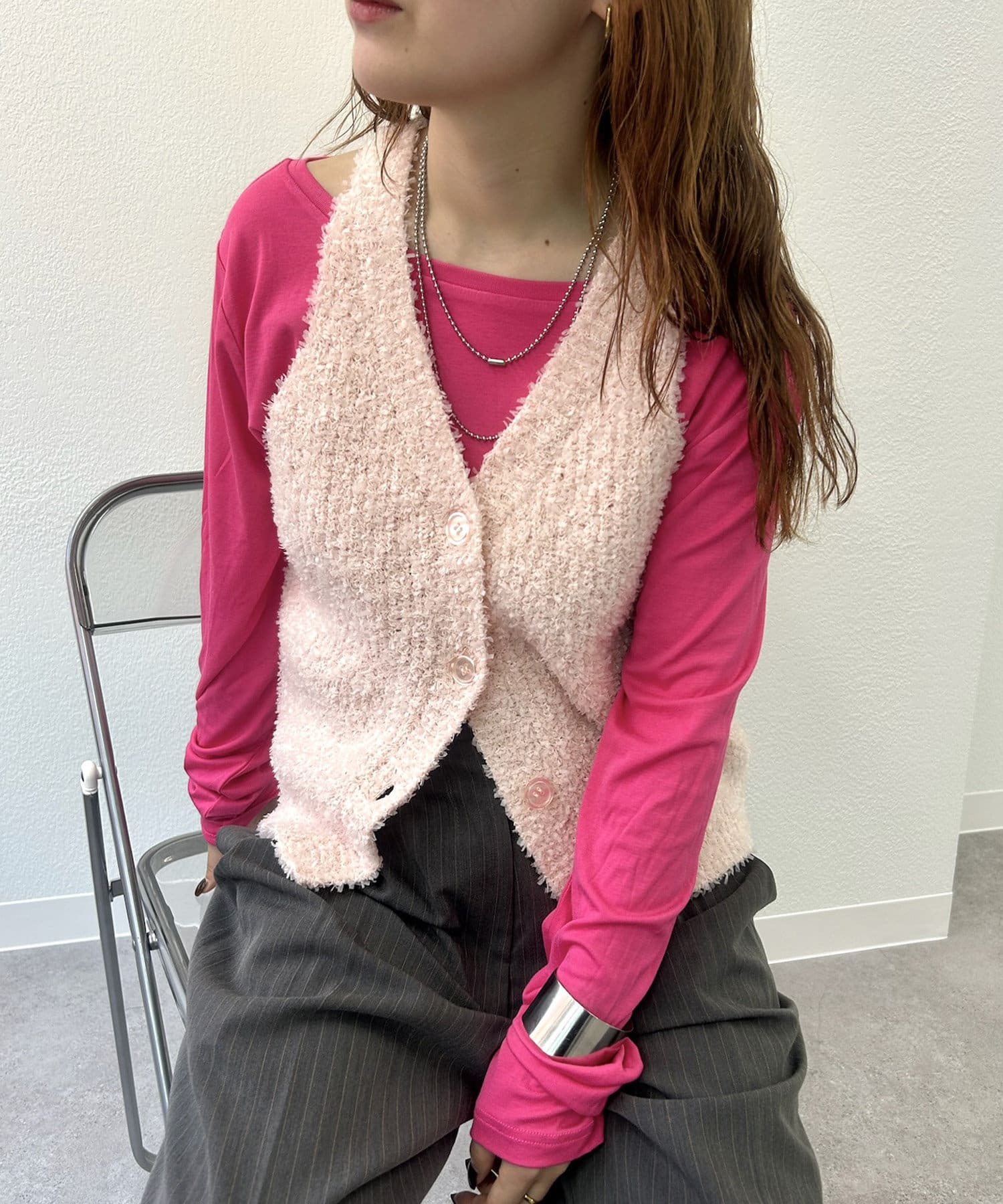 ・リボンヤーンベストはSETのロンTやカットソーにレイヤードするだけで旬のスタイリングが完成します◎