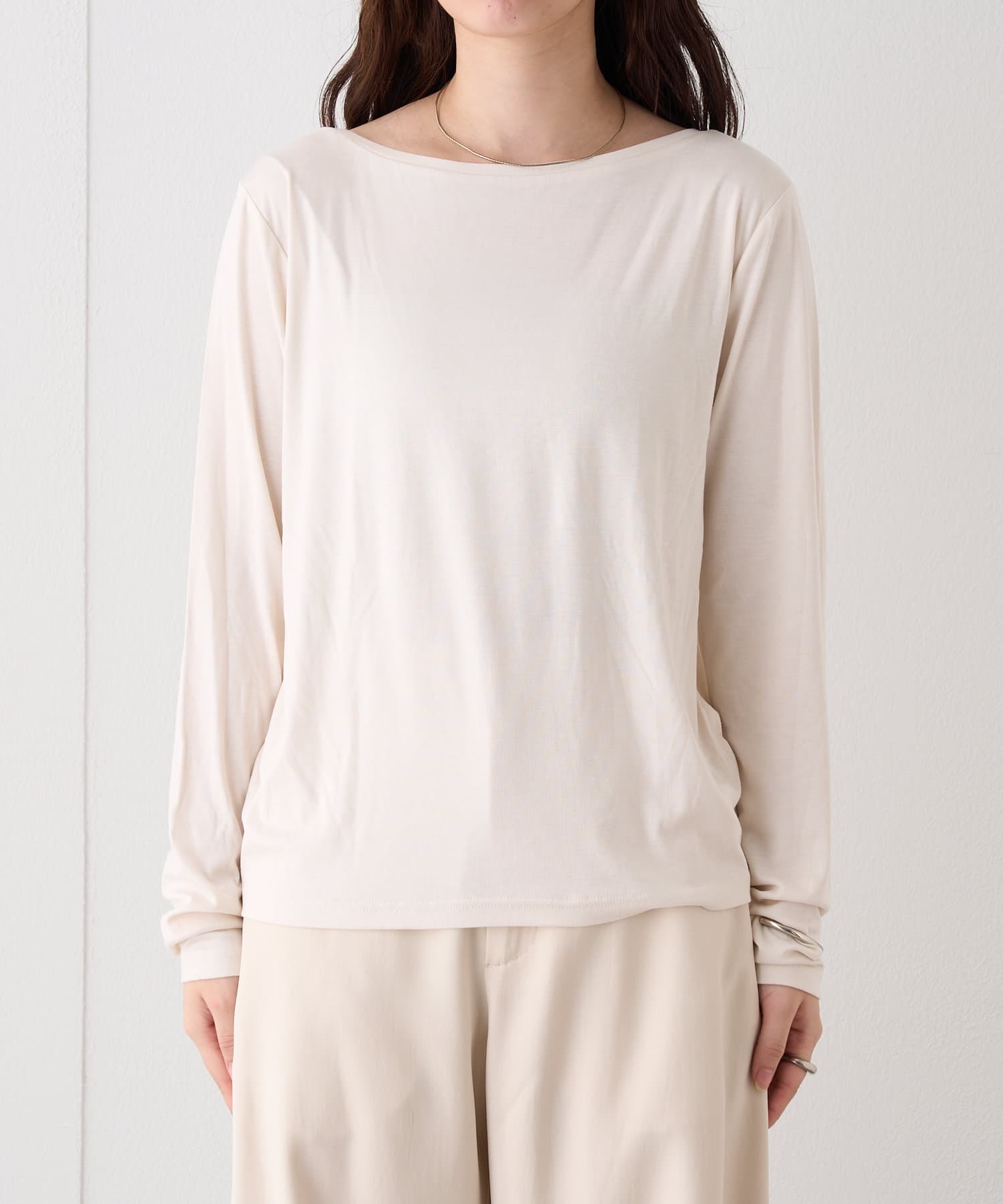 ・SETのロンTは伸縮性のある素材で、ゆったりシルエットが抜け感のある雰囲気に。