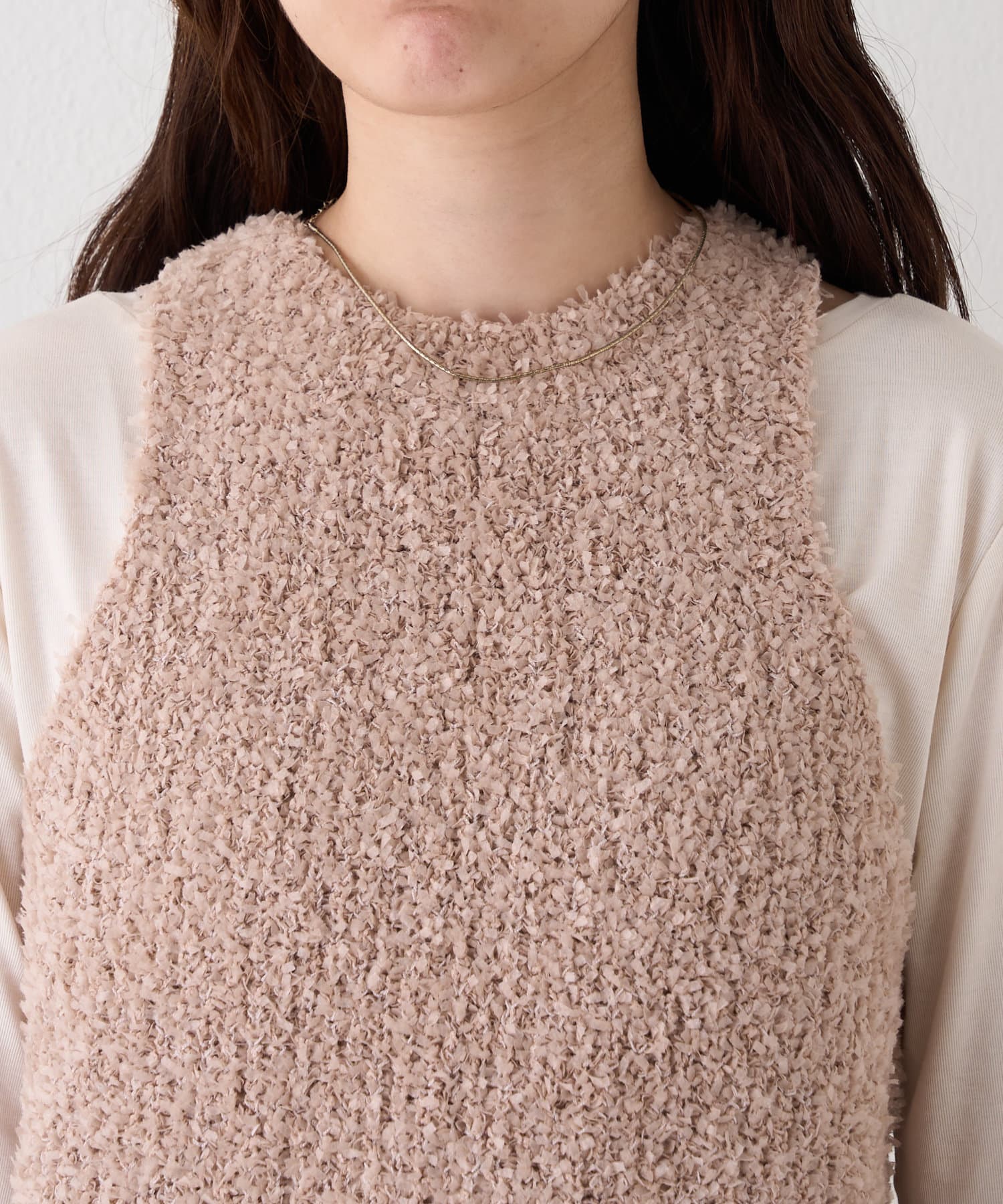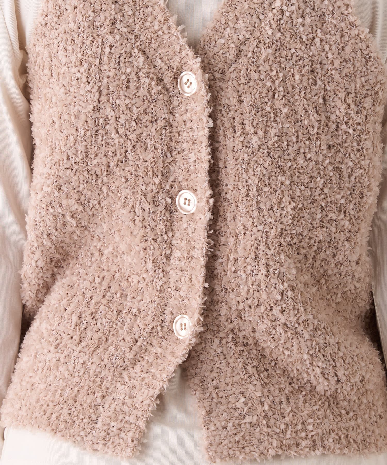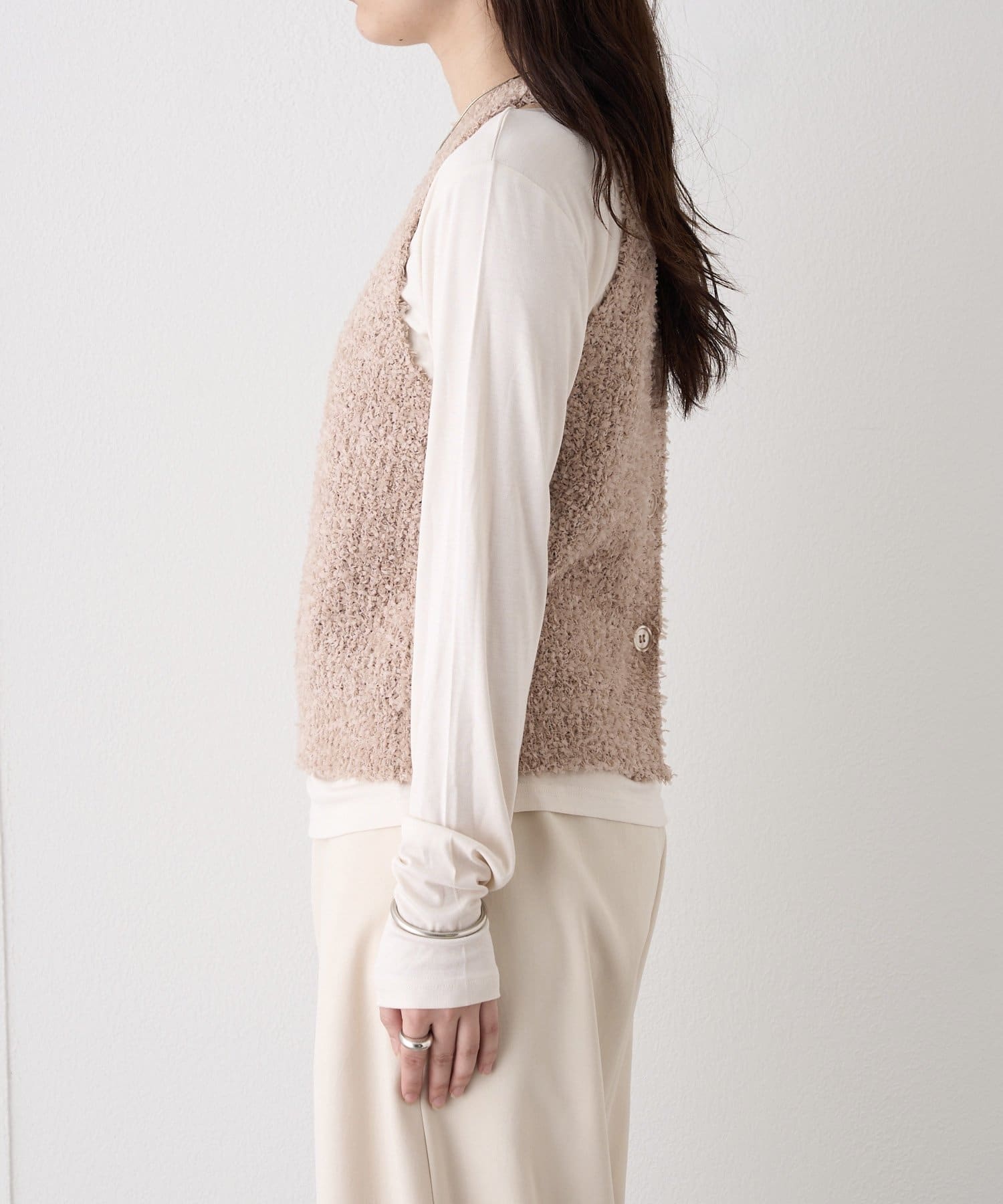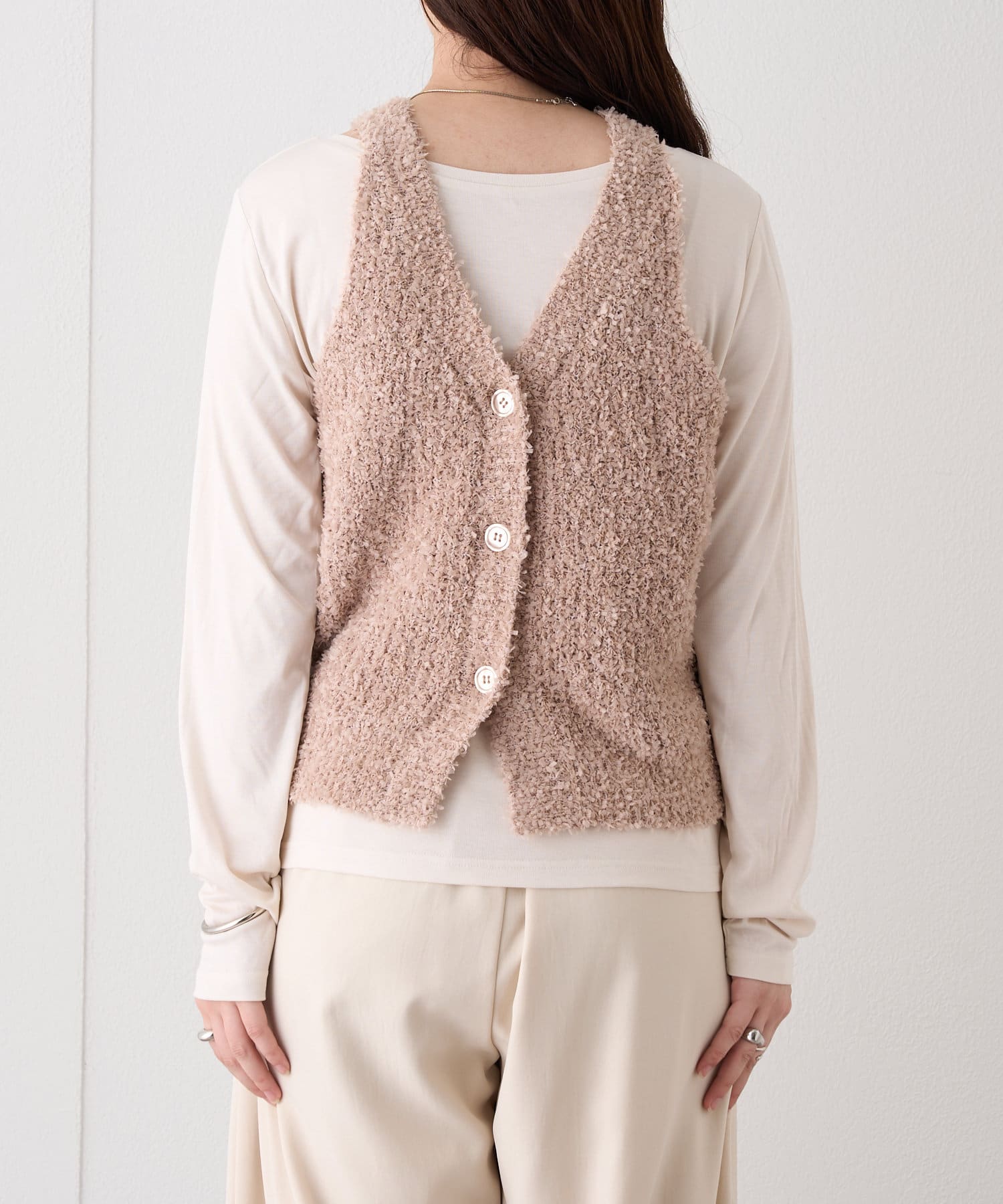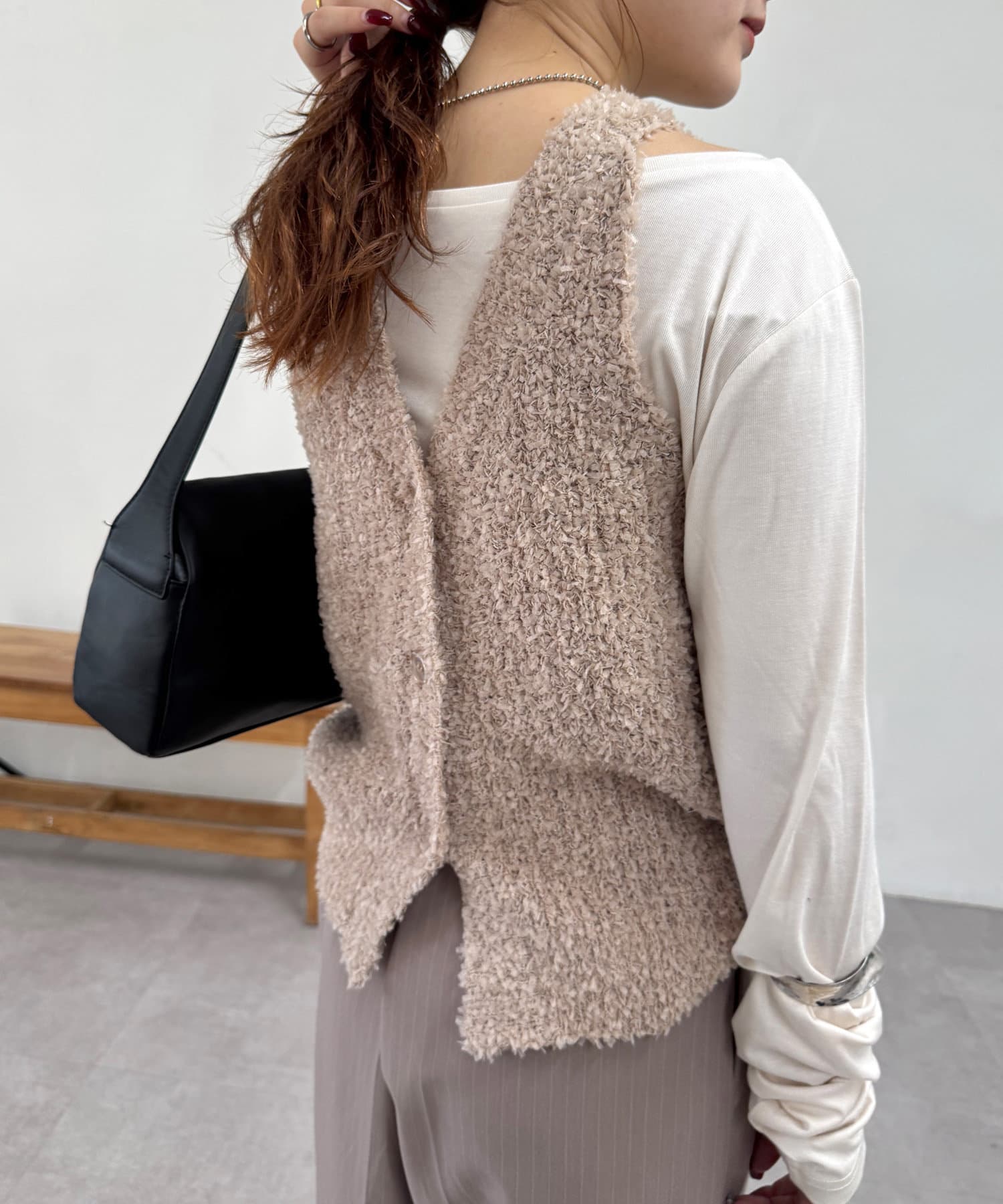 ・ベストは前後両前で着られる仕様で表面感のある素材が華やかさをプラスしてくれます♡
