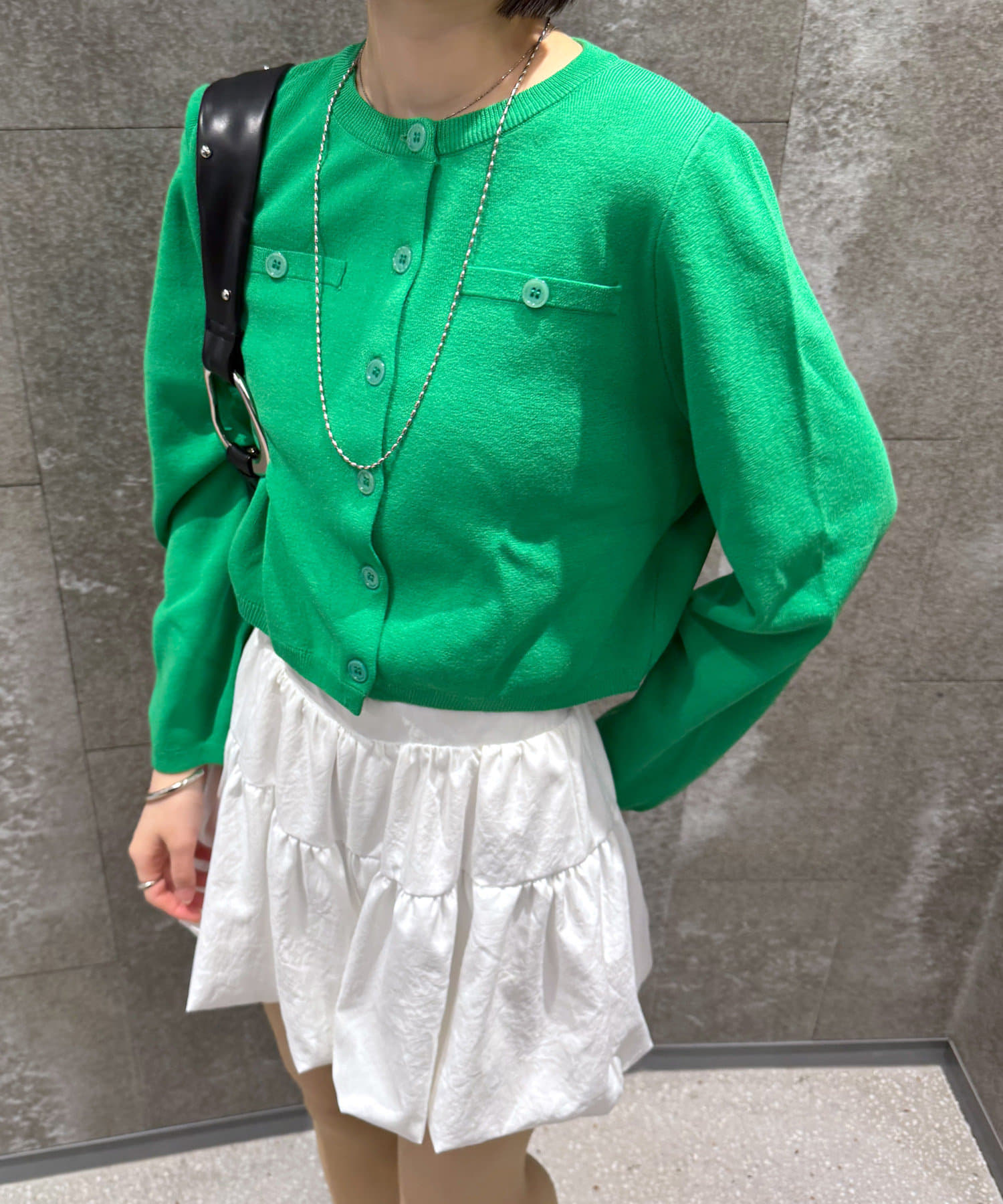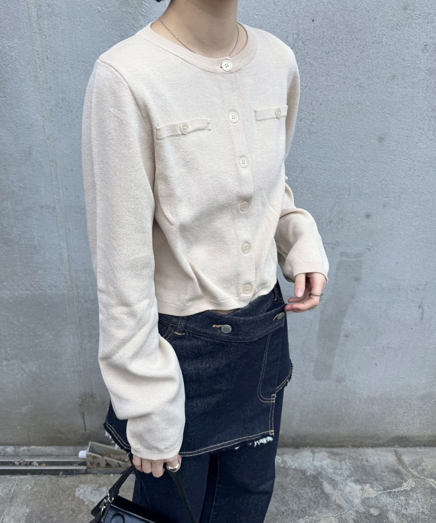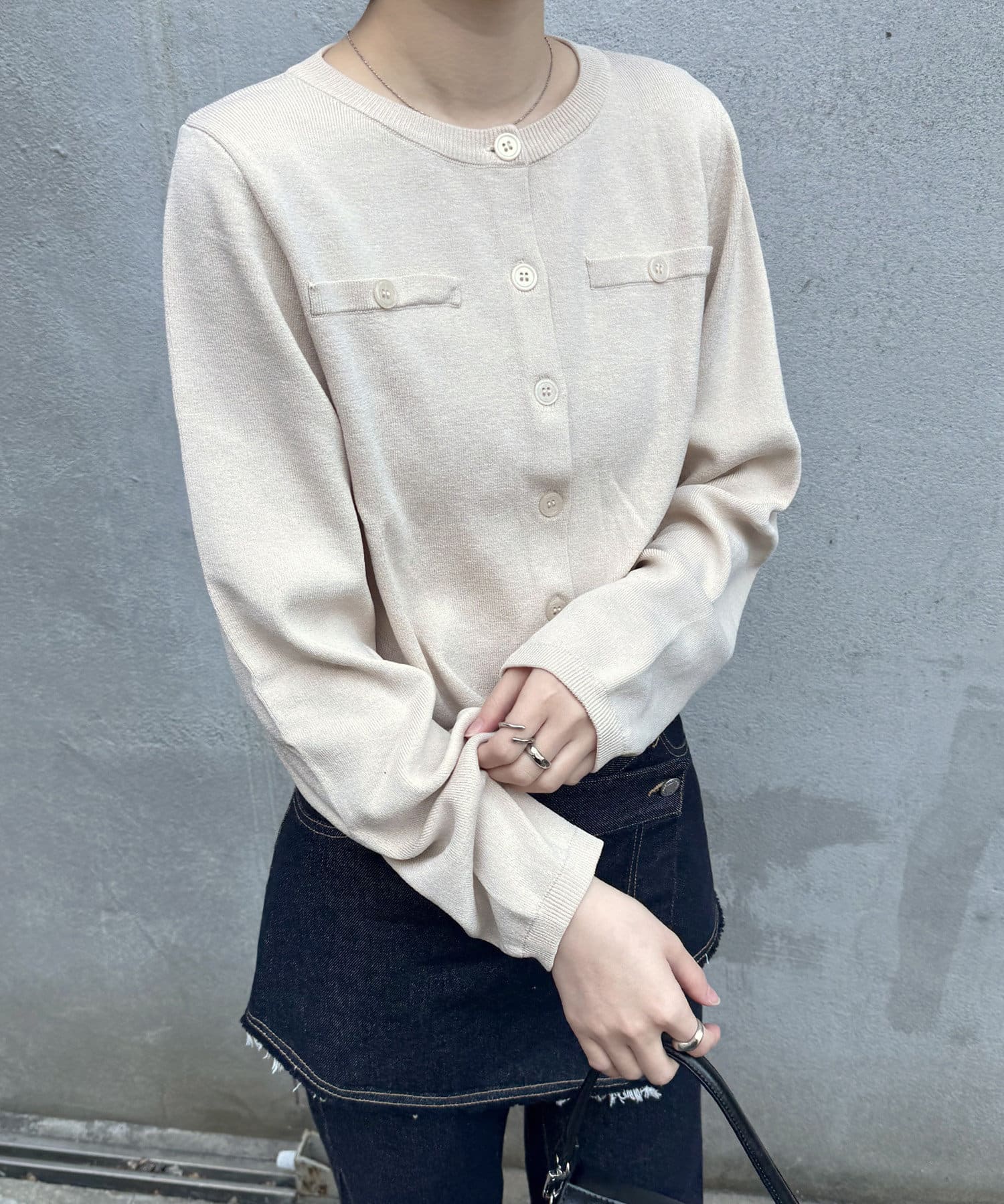 ・ミニポケットがシンプルなカーディガンのワンポイントに。