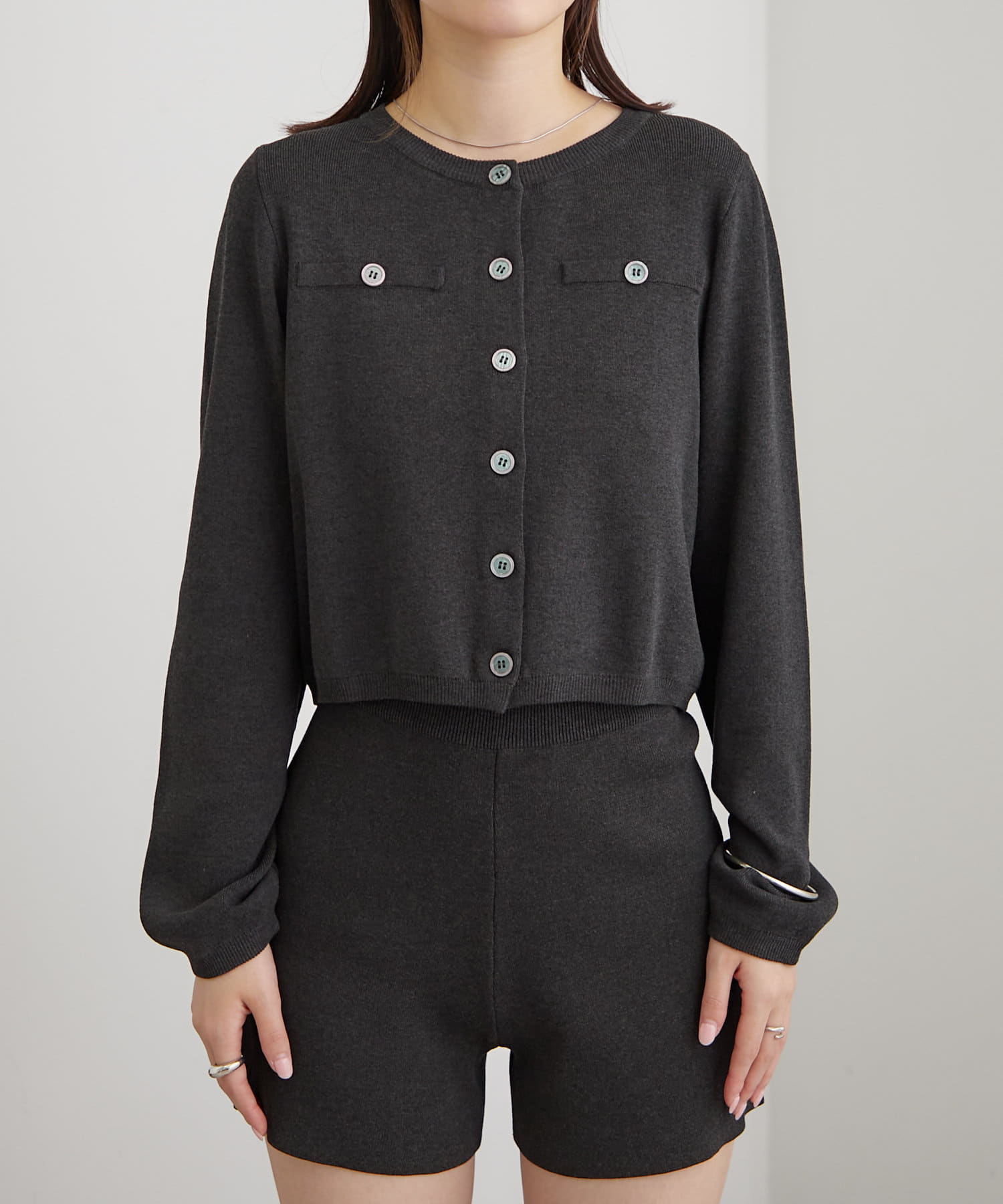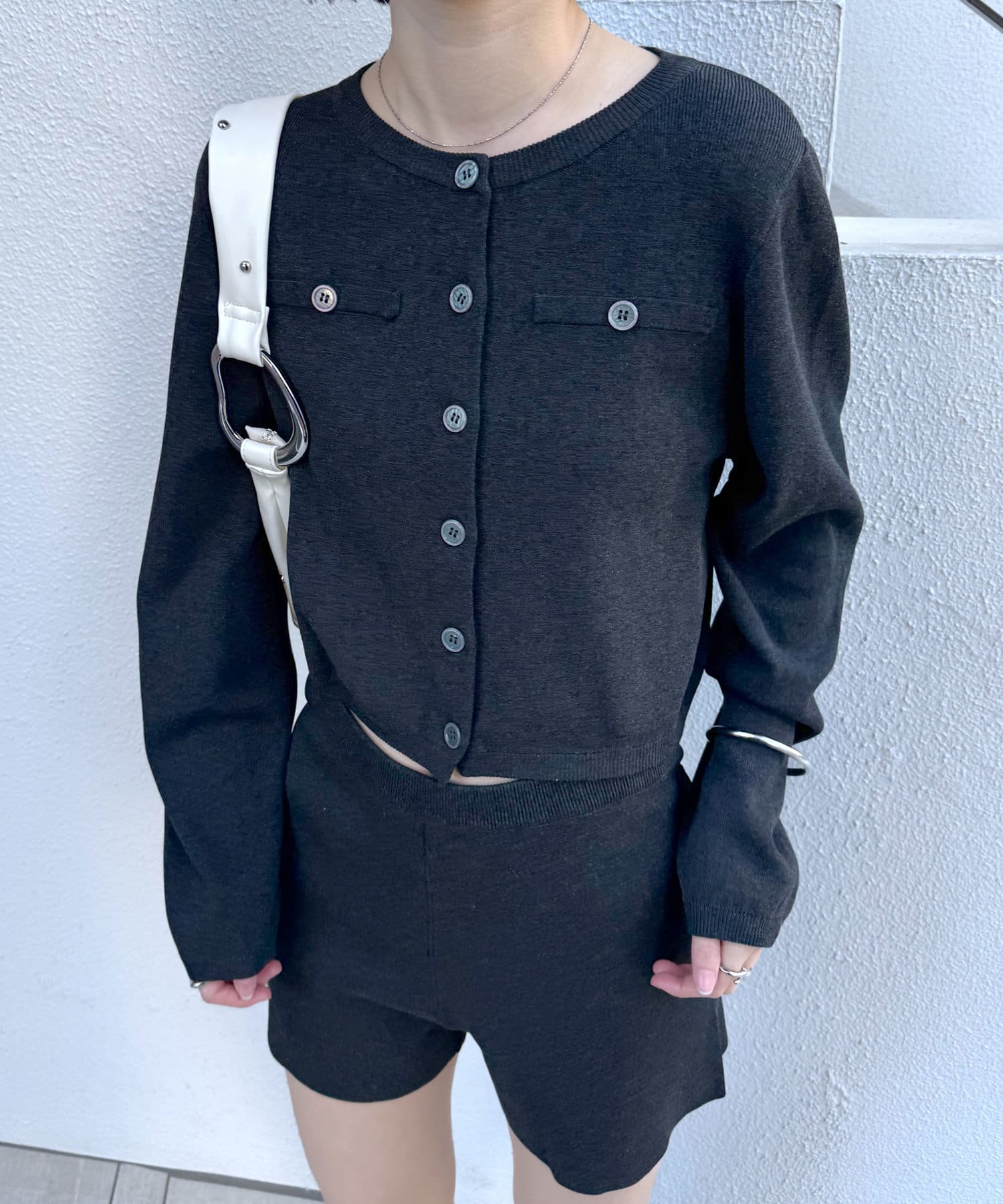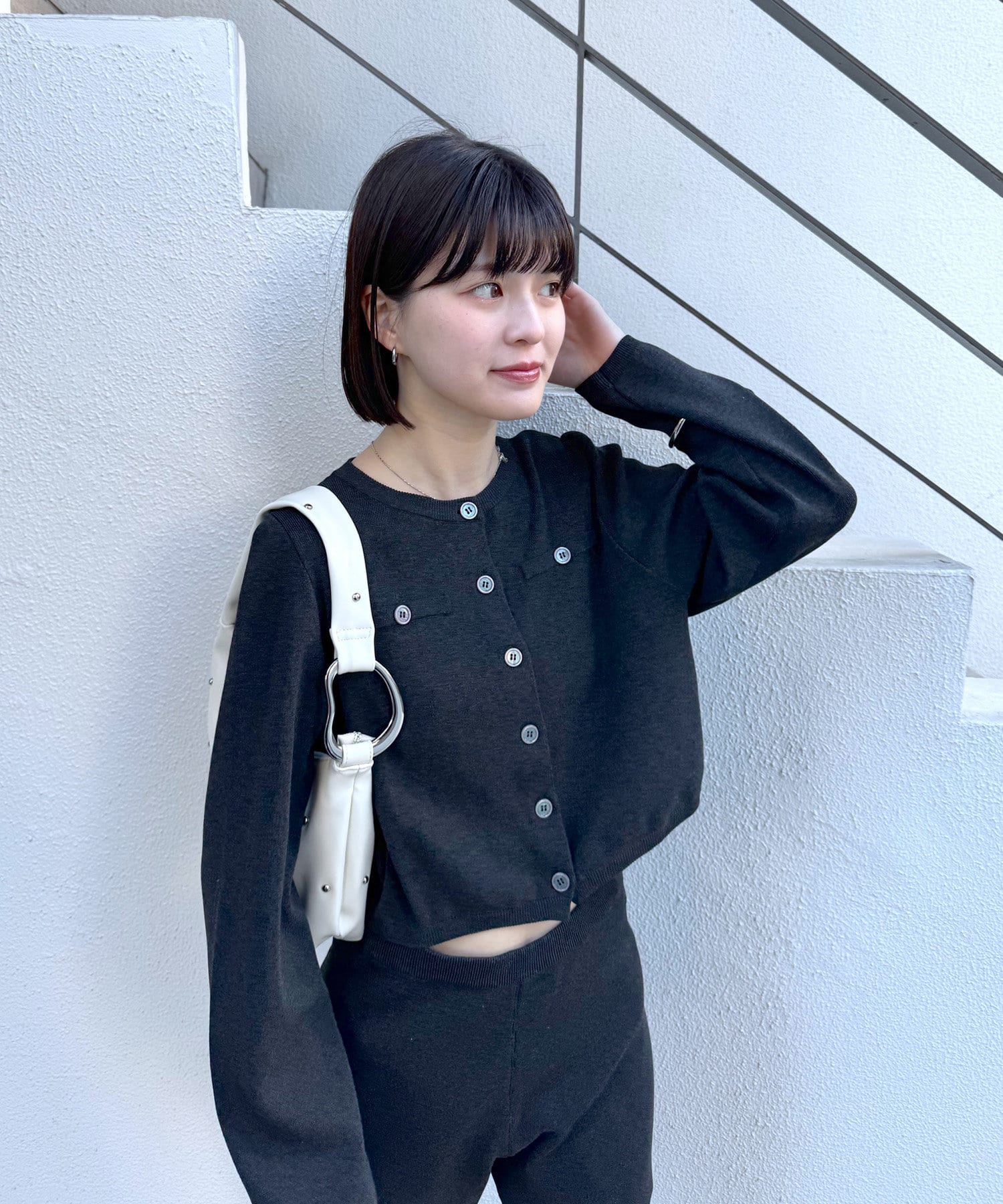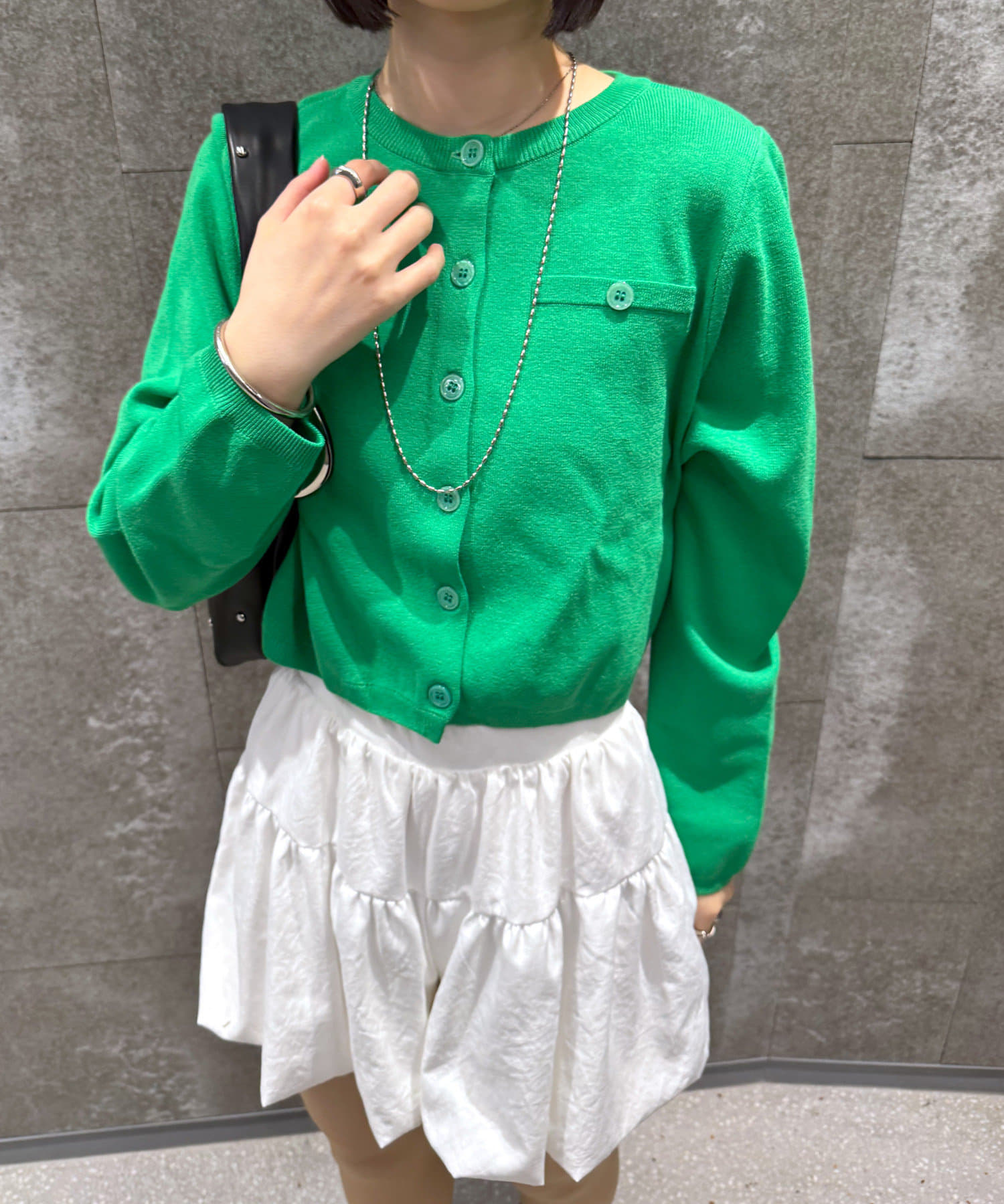 ・ミニポケットがシンプルなカーディガンのワンポイントに。