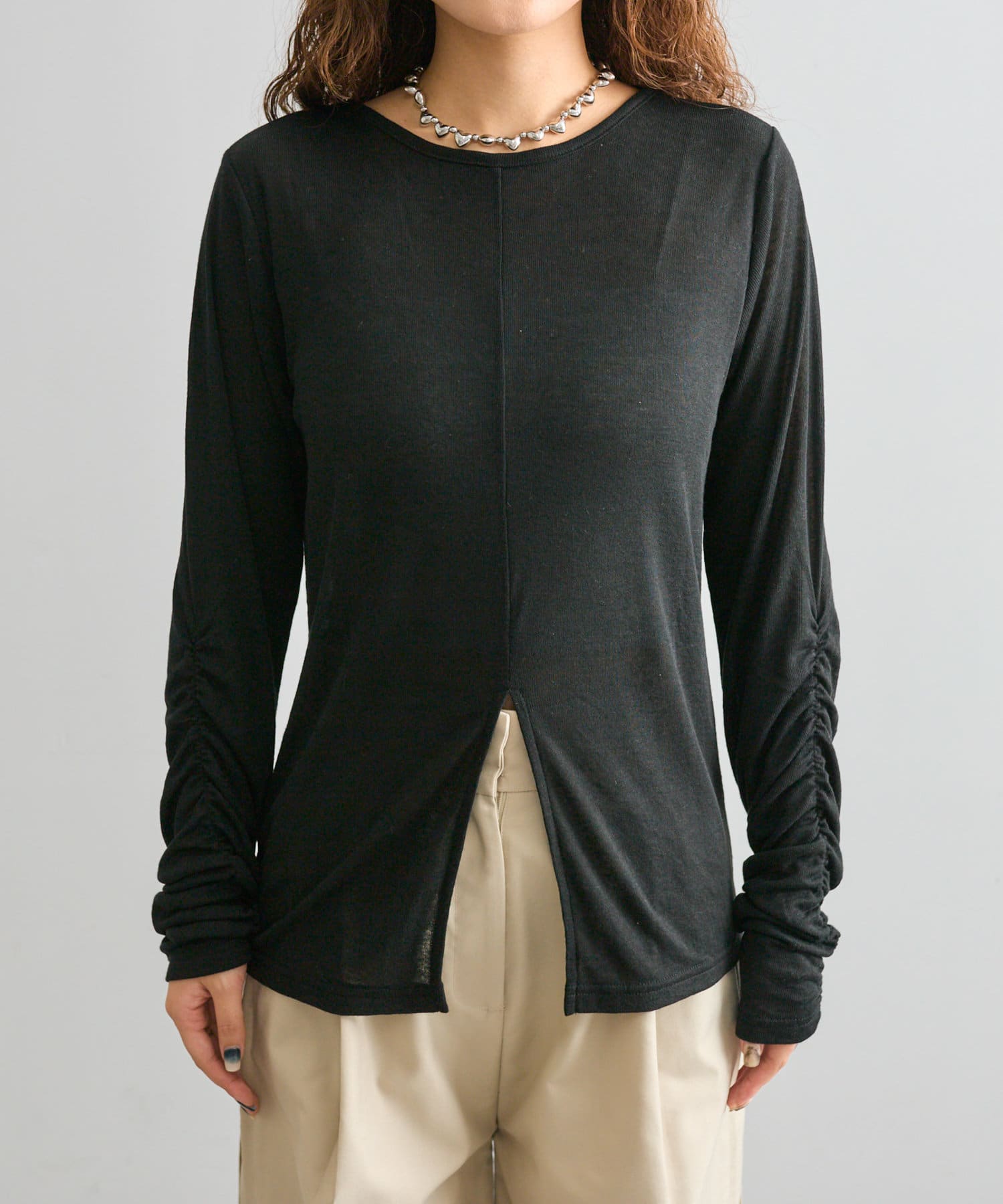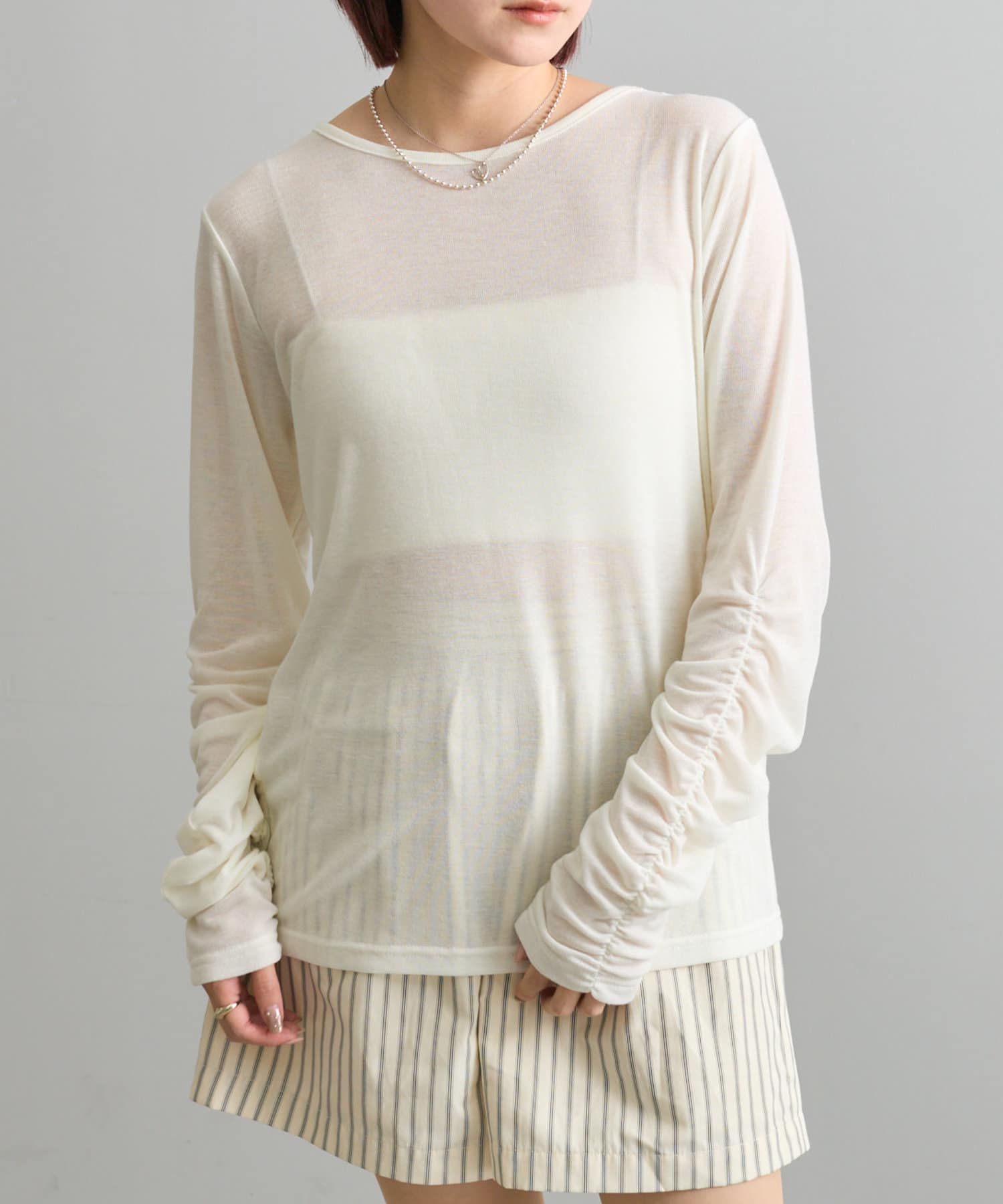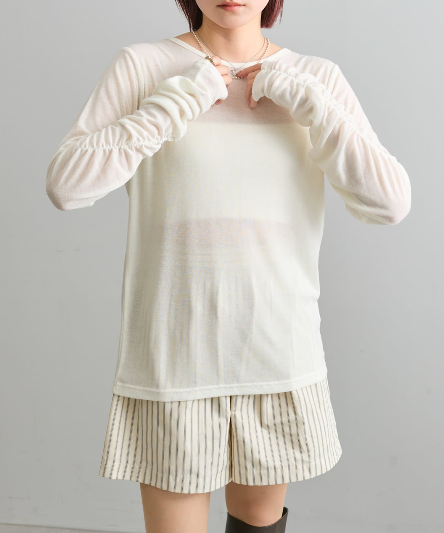 【mystic】袖ギャザーシアーカットソー