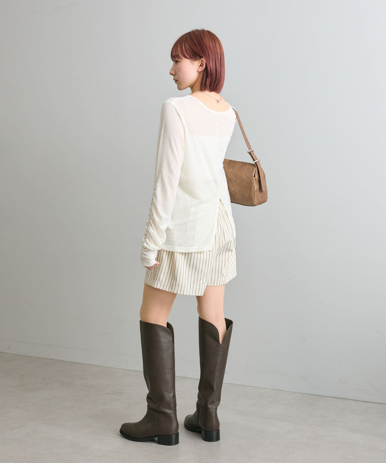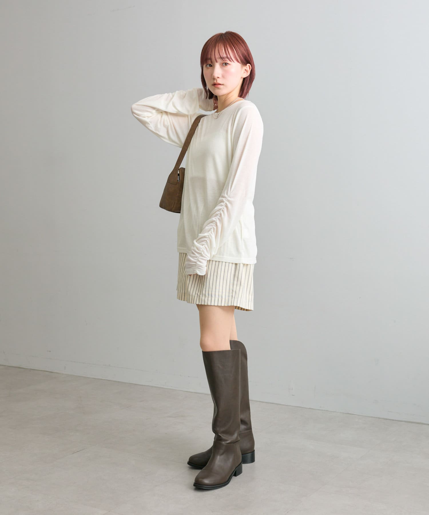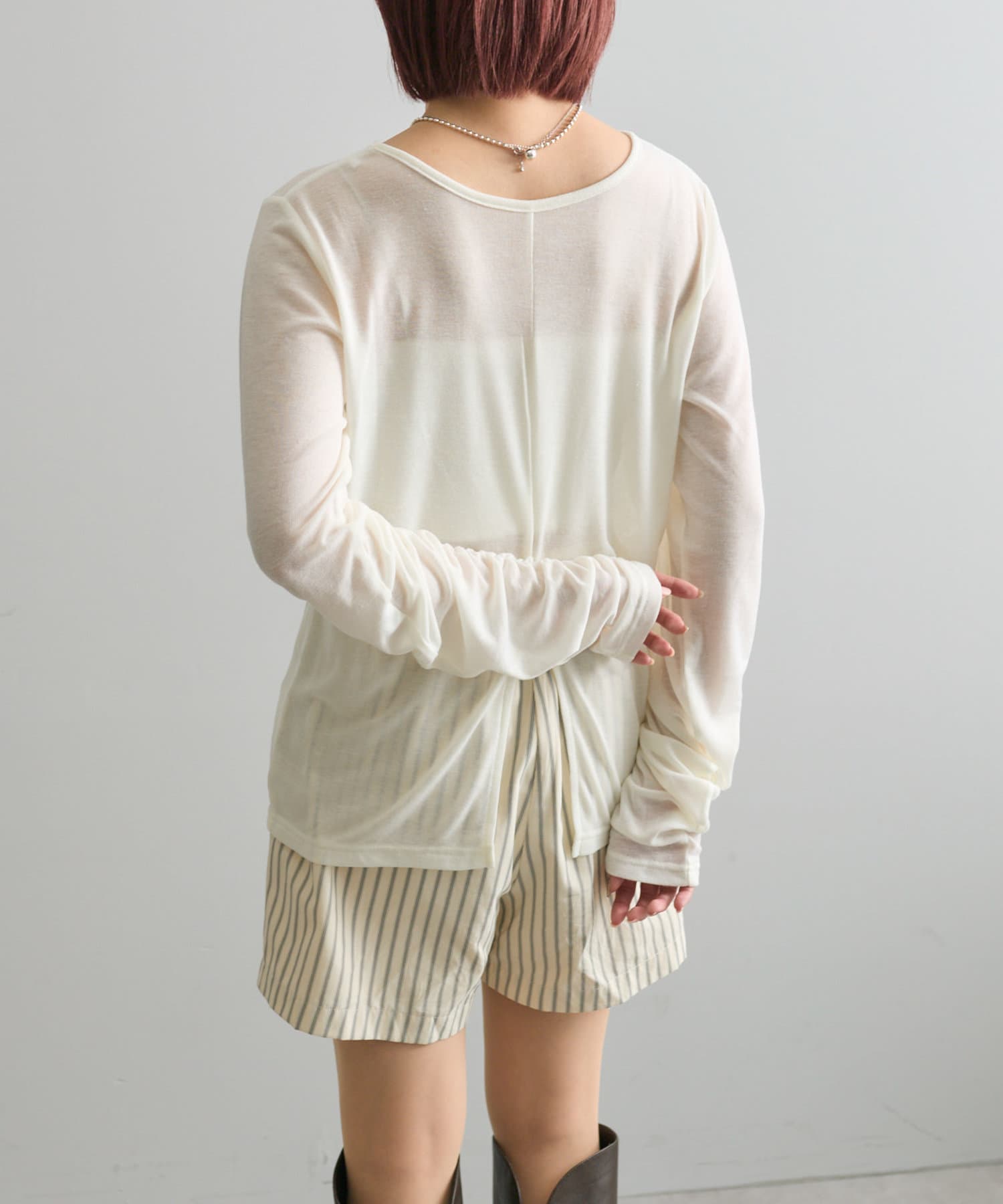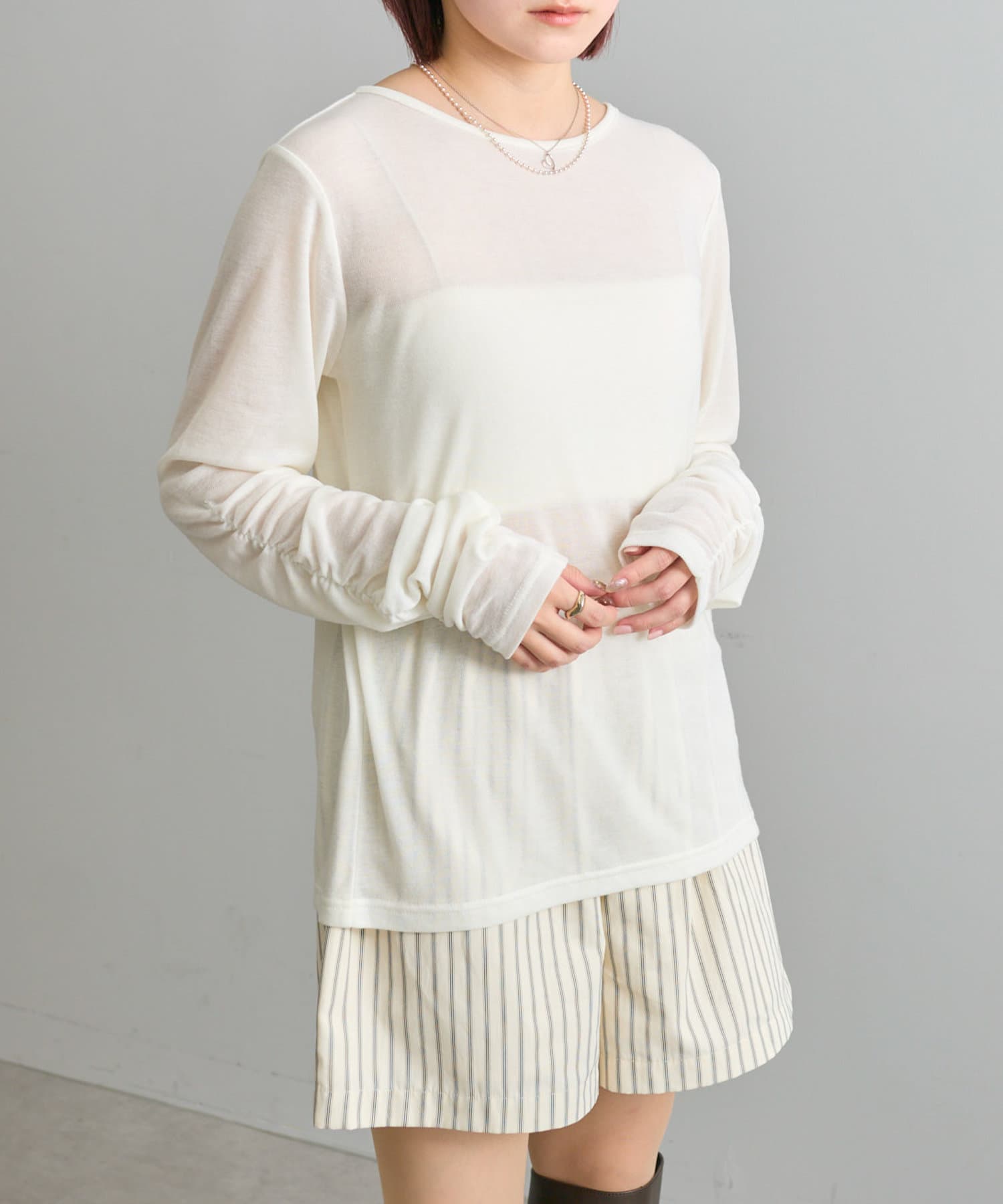 【mystic】袖ギャザーシアーカットソー