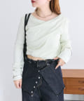購入場所:パルクローゼット白みがあるグリーンなので色物苦手な人でも挑戦しやすいかなと思いました。カットソー素材ですが、元々シワがあるデザインなので後々シワができても気になりずらそう