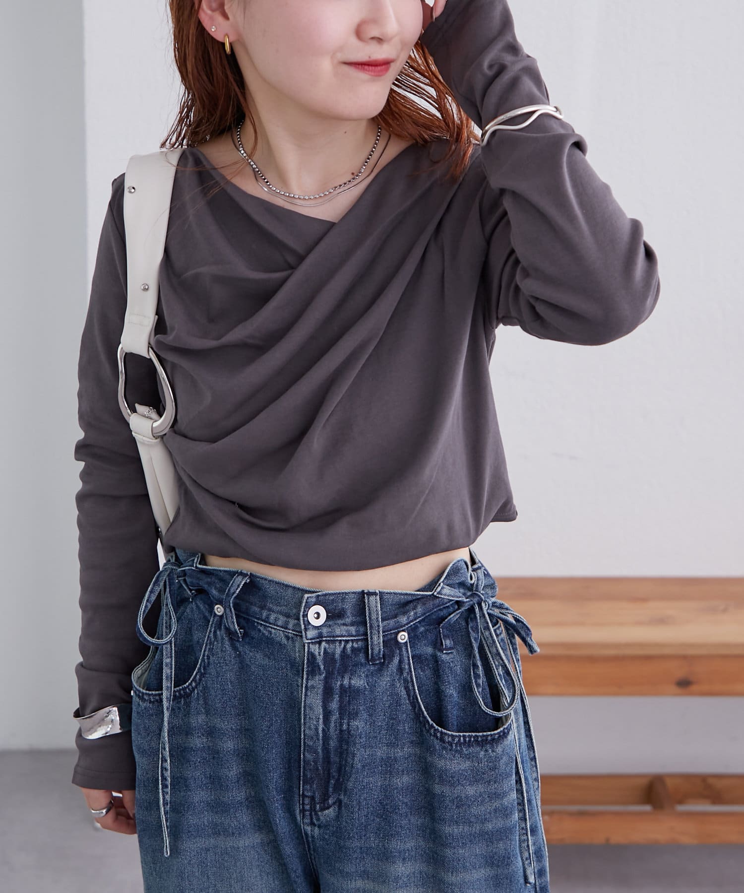 オフショルデザインが可愛い♡1枚で抜け感が出せるロングTシャツ