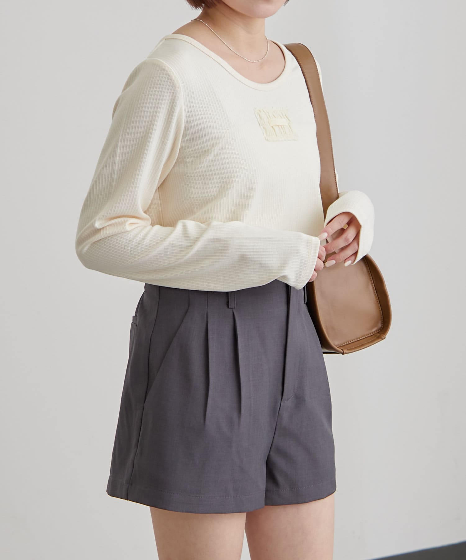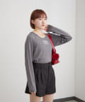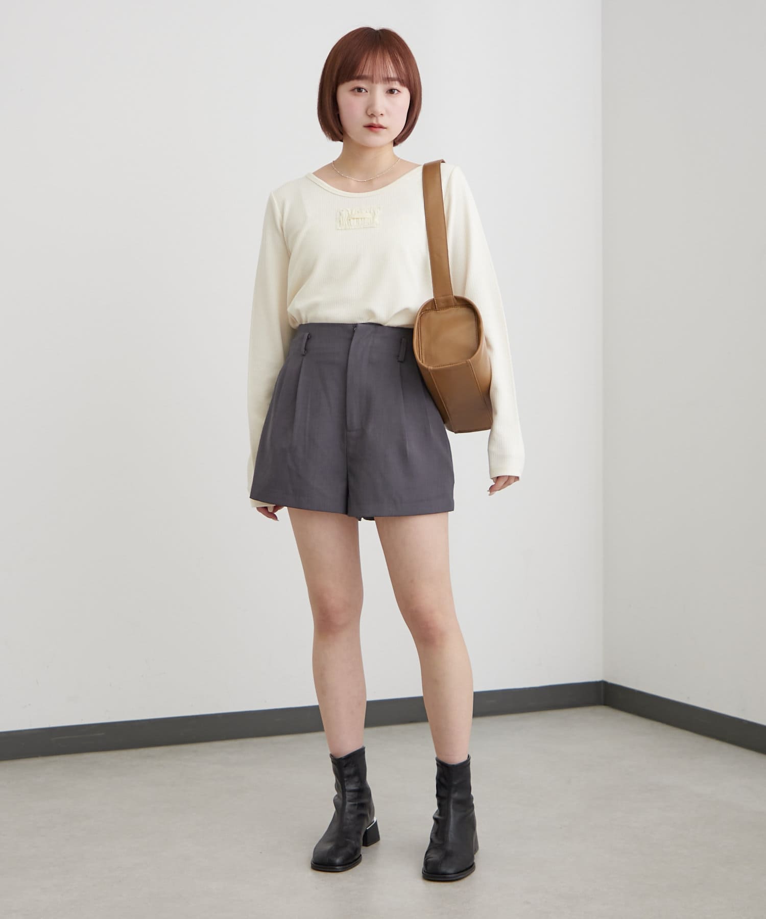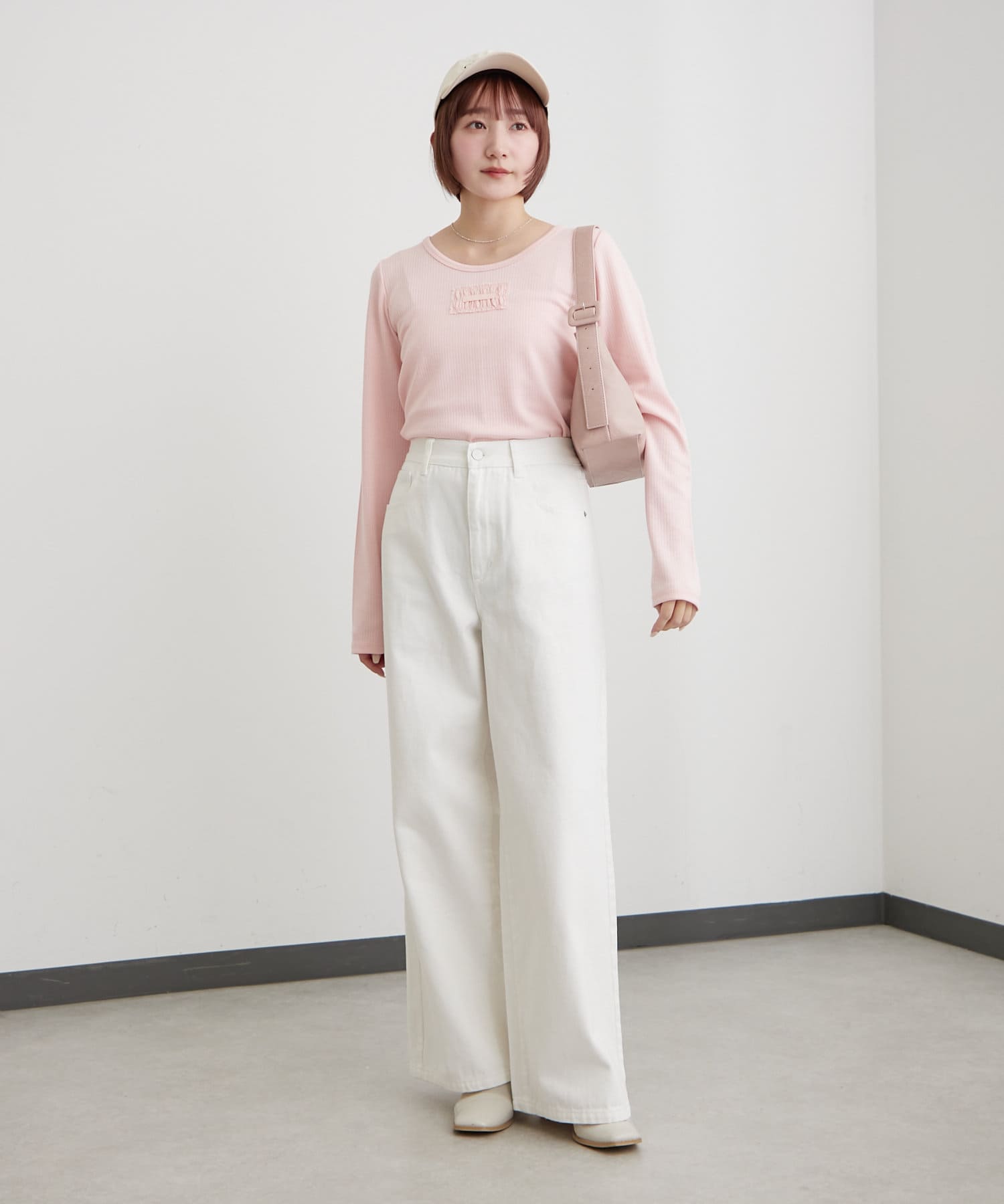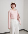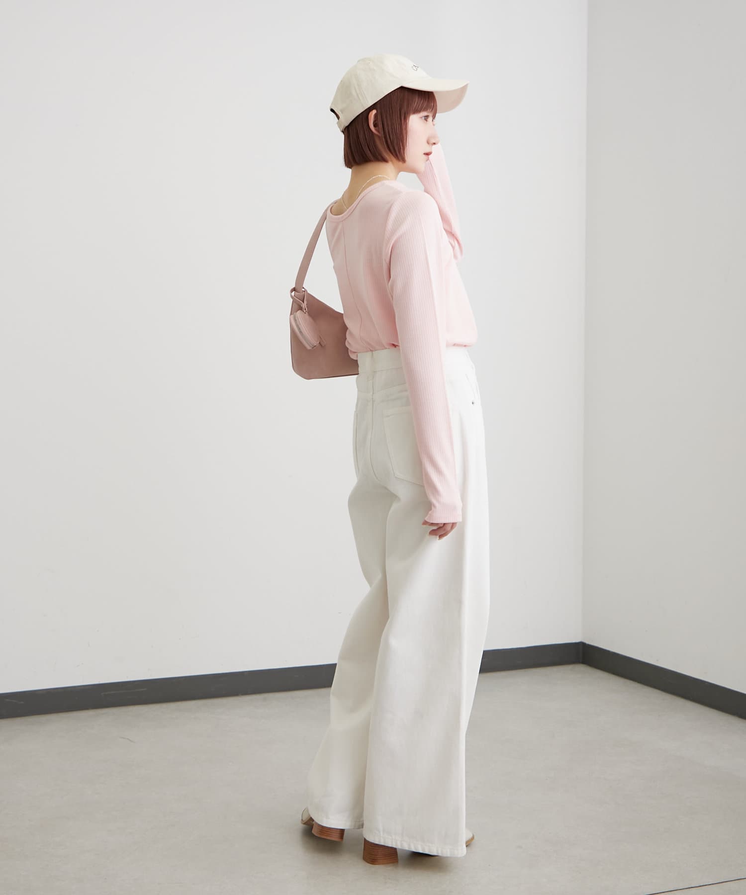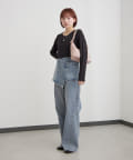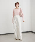 ・コンパクトなトップスなので、ワイドシルエットのボトムス合わせでトレンド感あるスタイリングに!