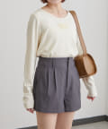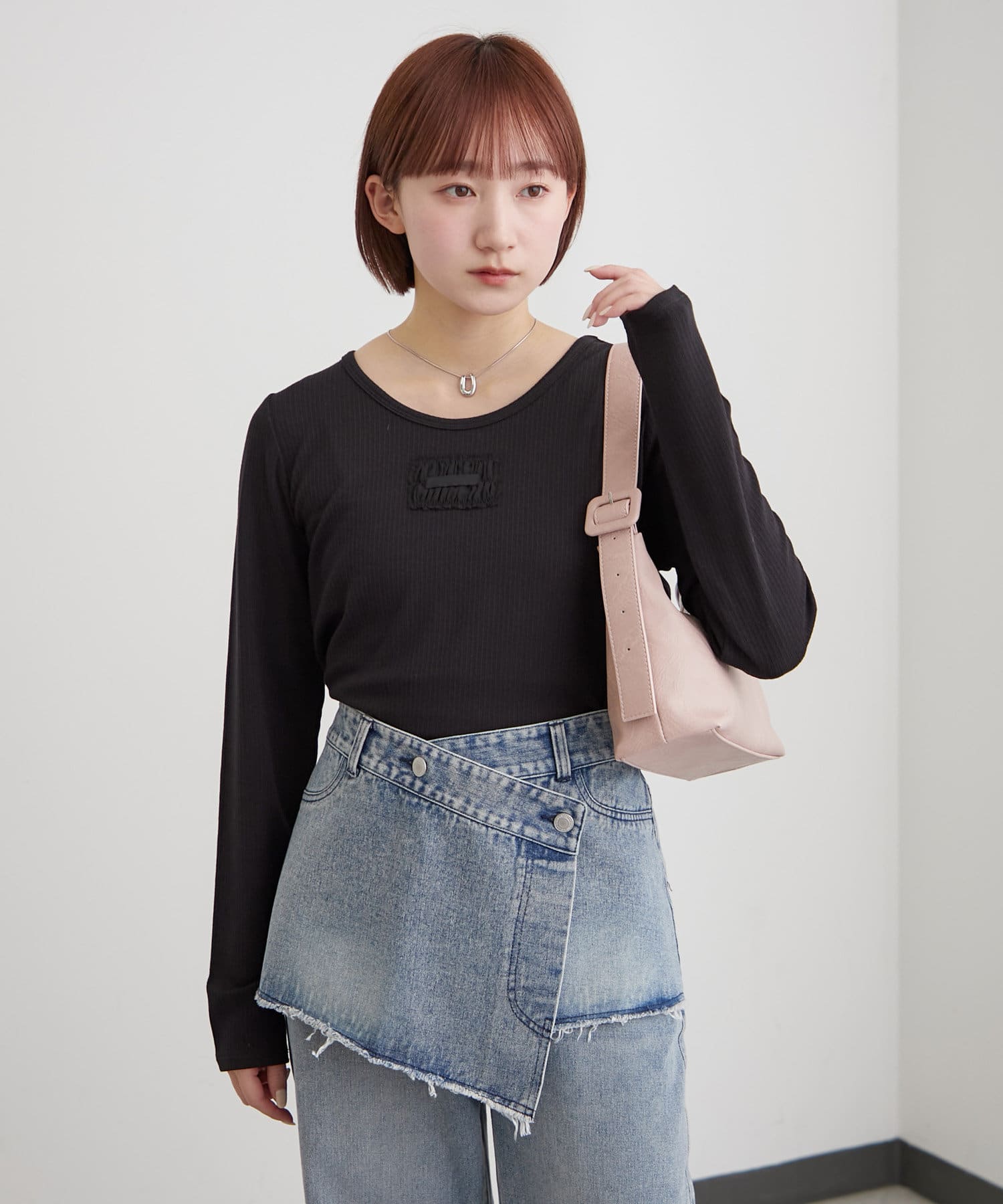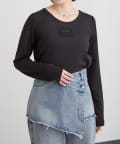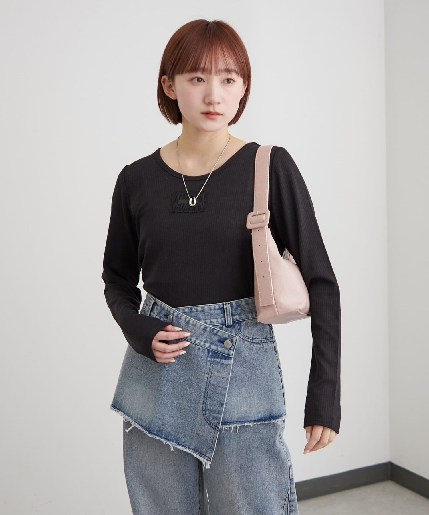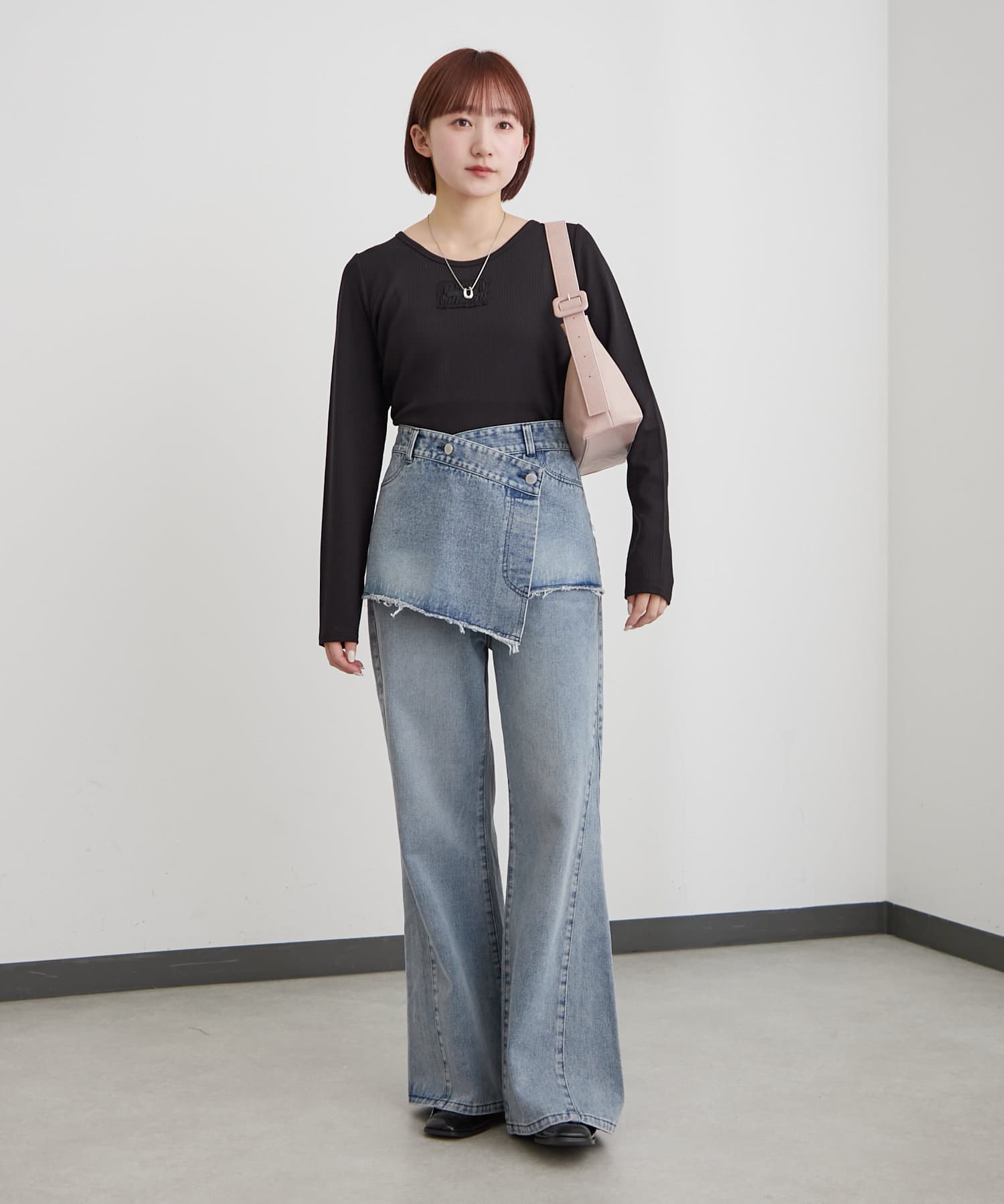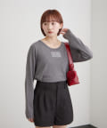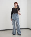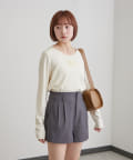 ・コンパクトなトップスなので、ワイドシルエットのボトムス合わせでトレンド感あるスタイリングに!