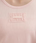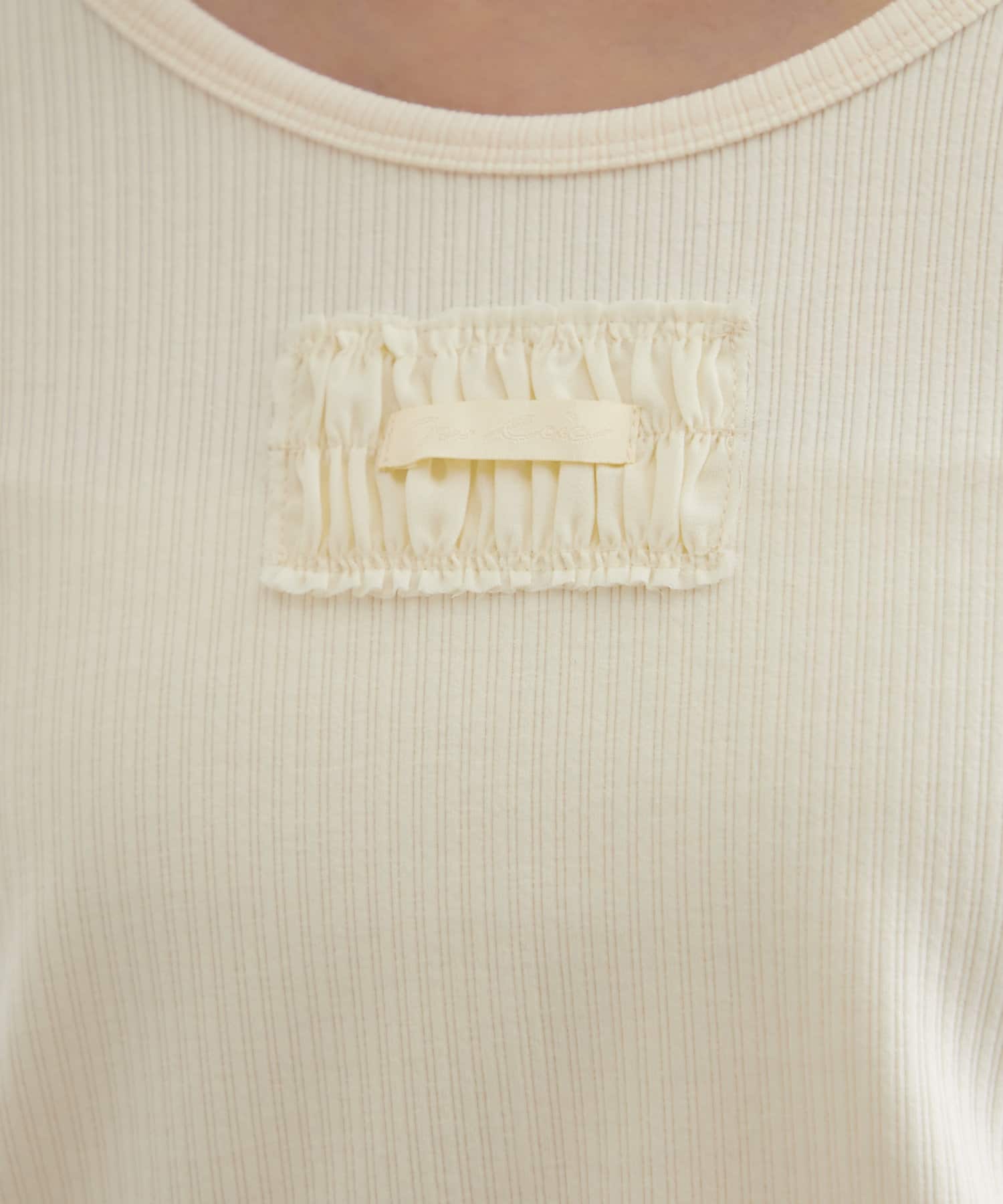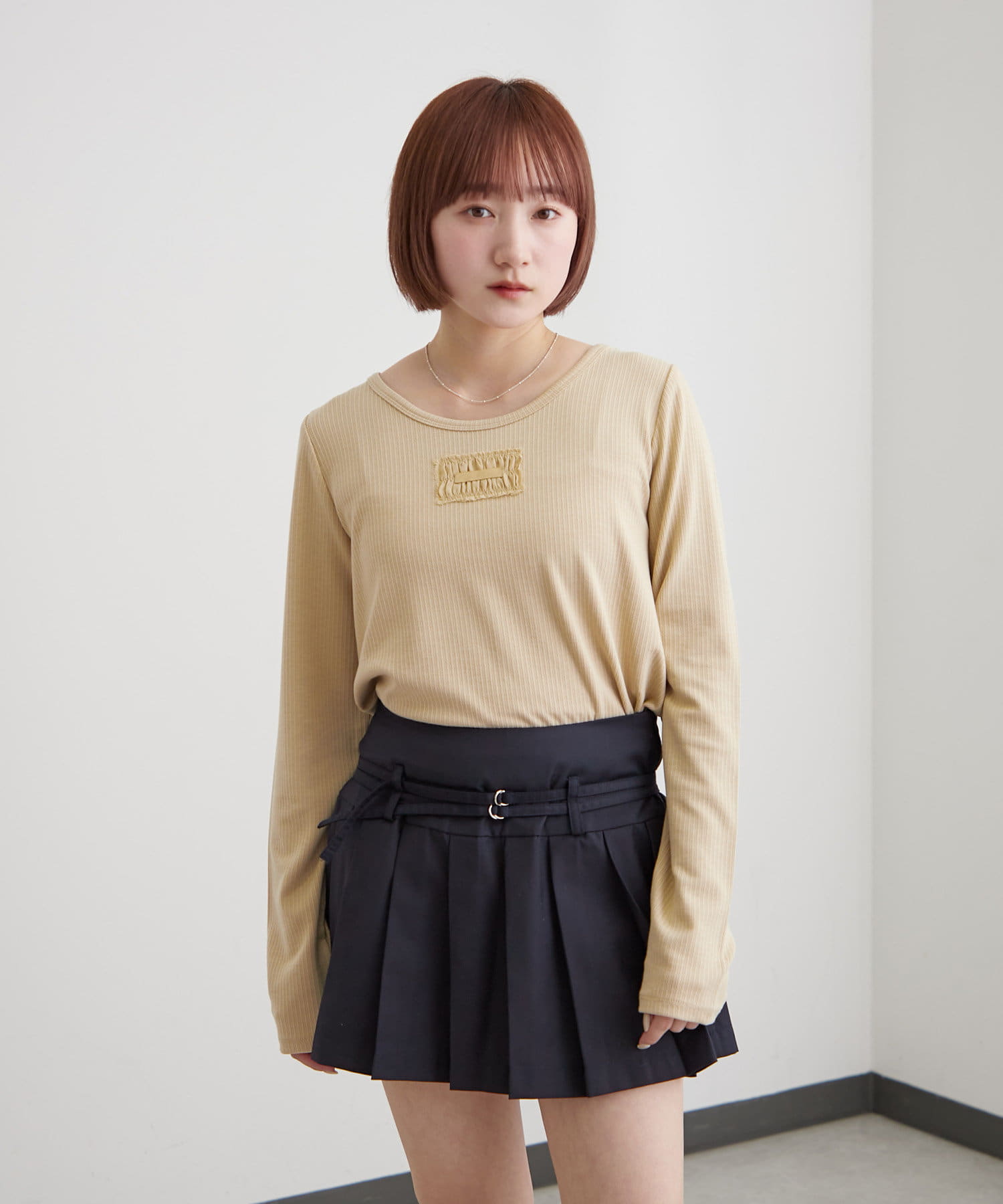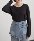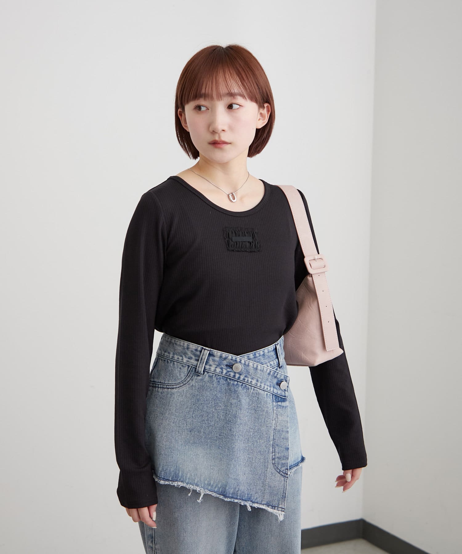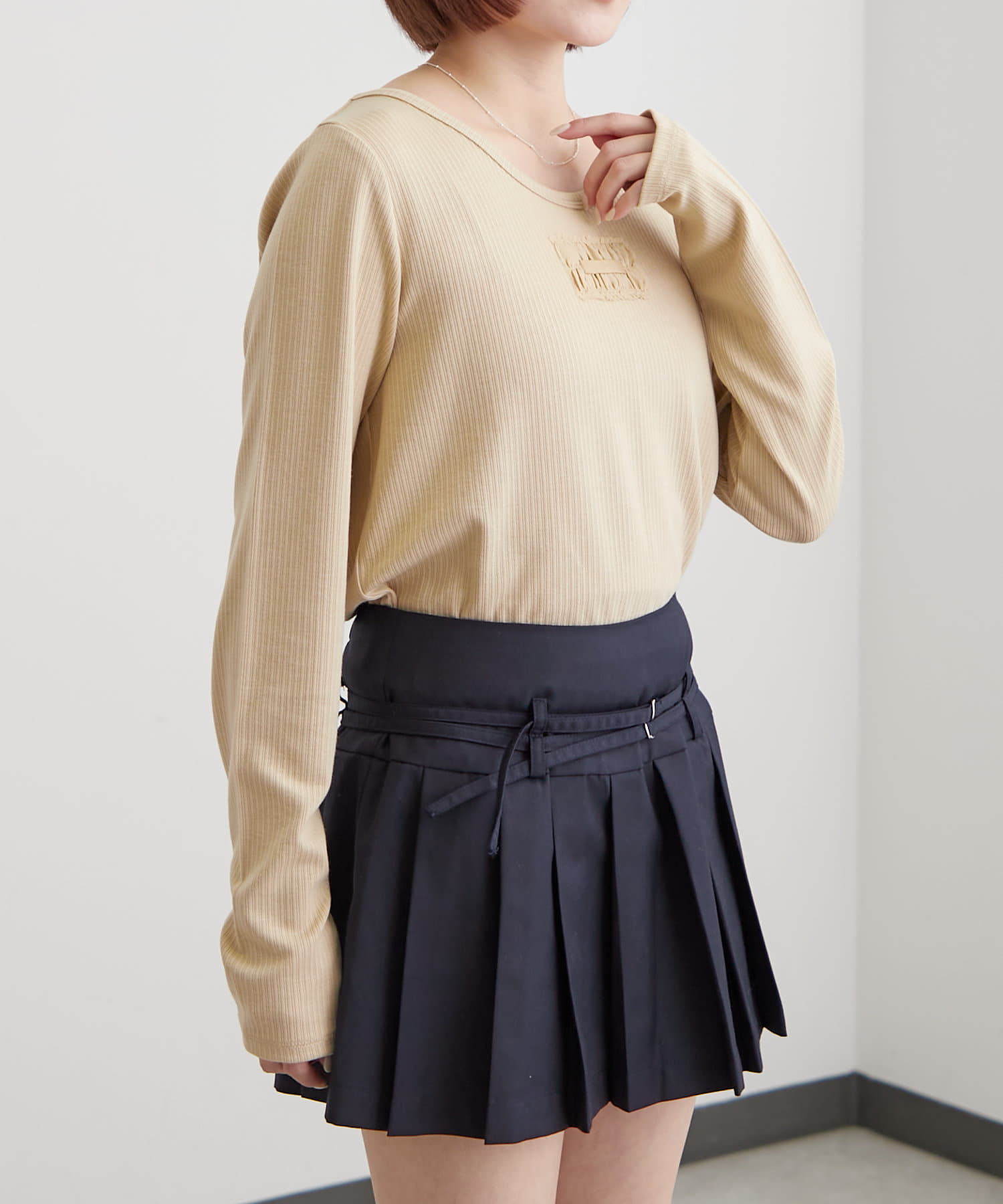 ・コンパクトなトップスなので、ワイドシルエットのボトムス合わせでトレンド感あるスタイリングに!
