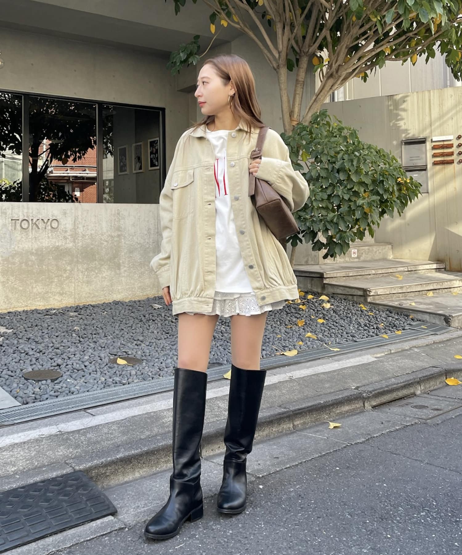 ・ミニ丈ボトムス×ロングブーツ合わせがおすすめ◎